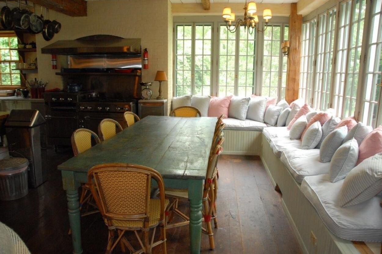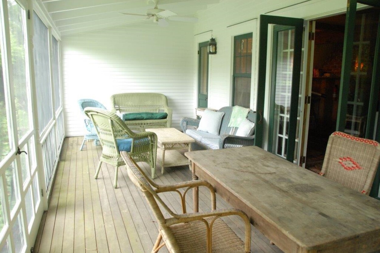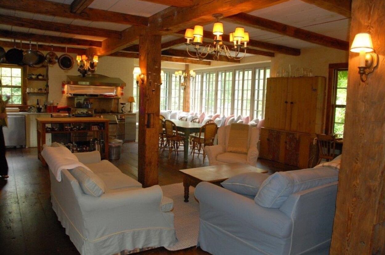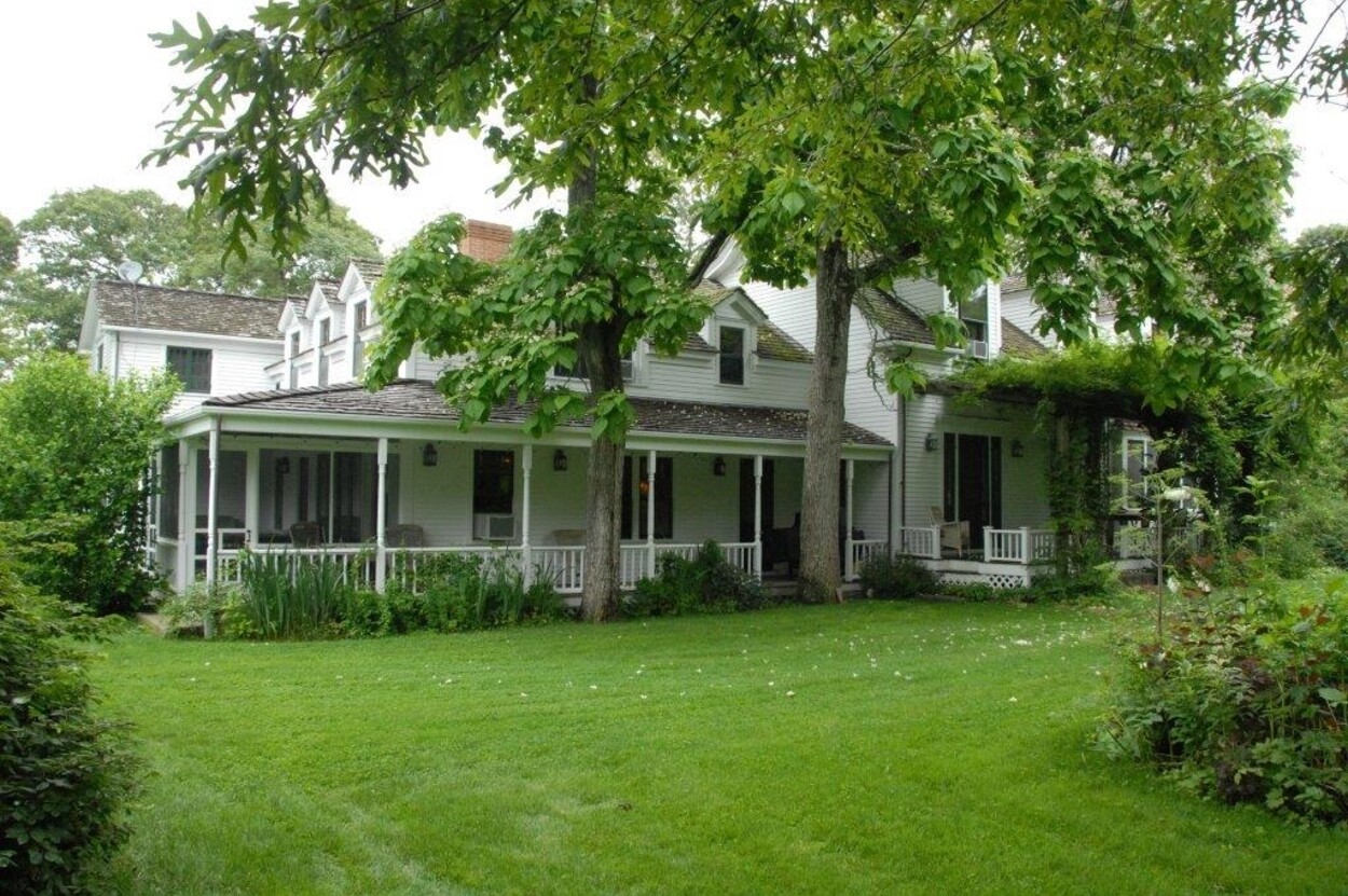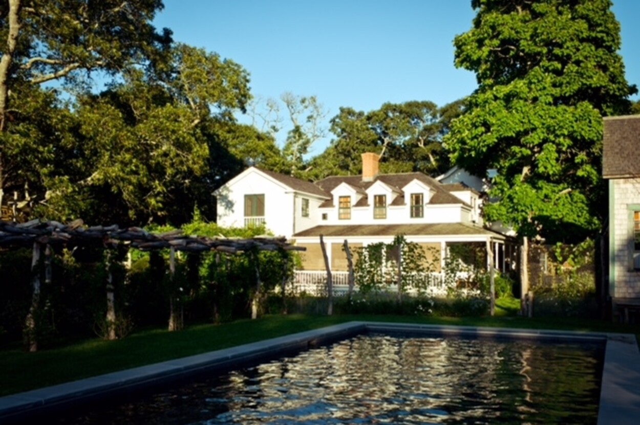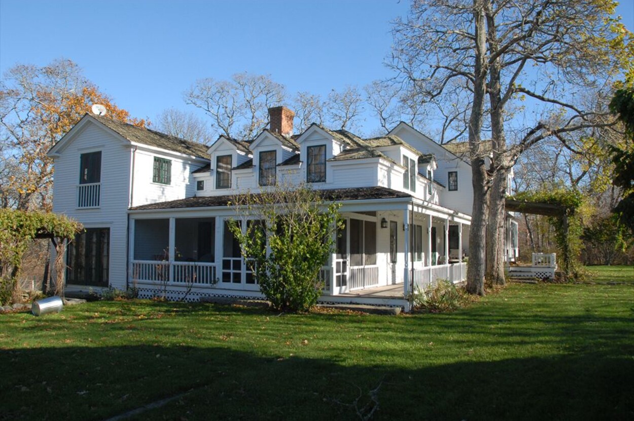 Located in one of the most treasured areas up-island, this rambling farmhouse is tucked away in the woods among gardens and outbuildings and is just a short walk to a spectacular private south shore beach. Just off the whitewashed covered front porch, walk into a wide open first floor with chefs kitchen, dining and lounging all together in an expansive comfortable space with an adjacent sitting/TV room. The high-end rustic charm of this house gives it unique character - from the wide and bright screened porch with wicker rockers to barn-board covered rooms with built-in bed, to the detached guest shack suite nestled in next to the vegetable garden. This property offers a special Vineyard experience.