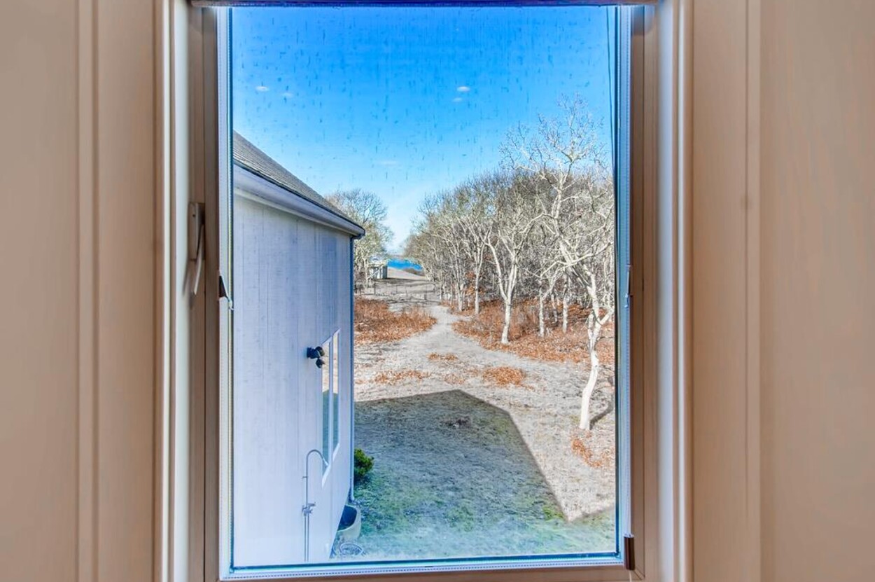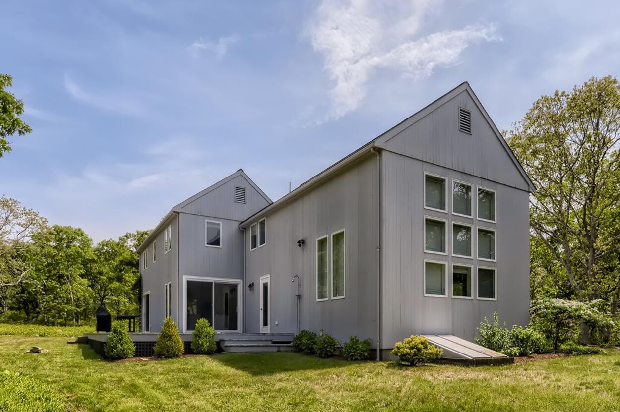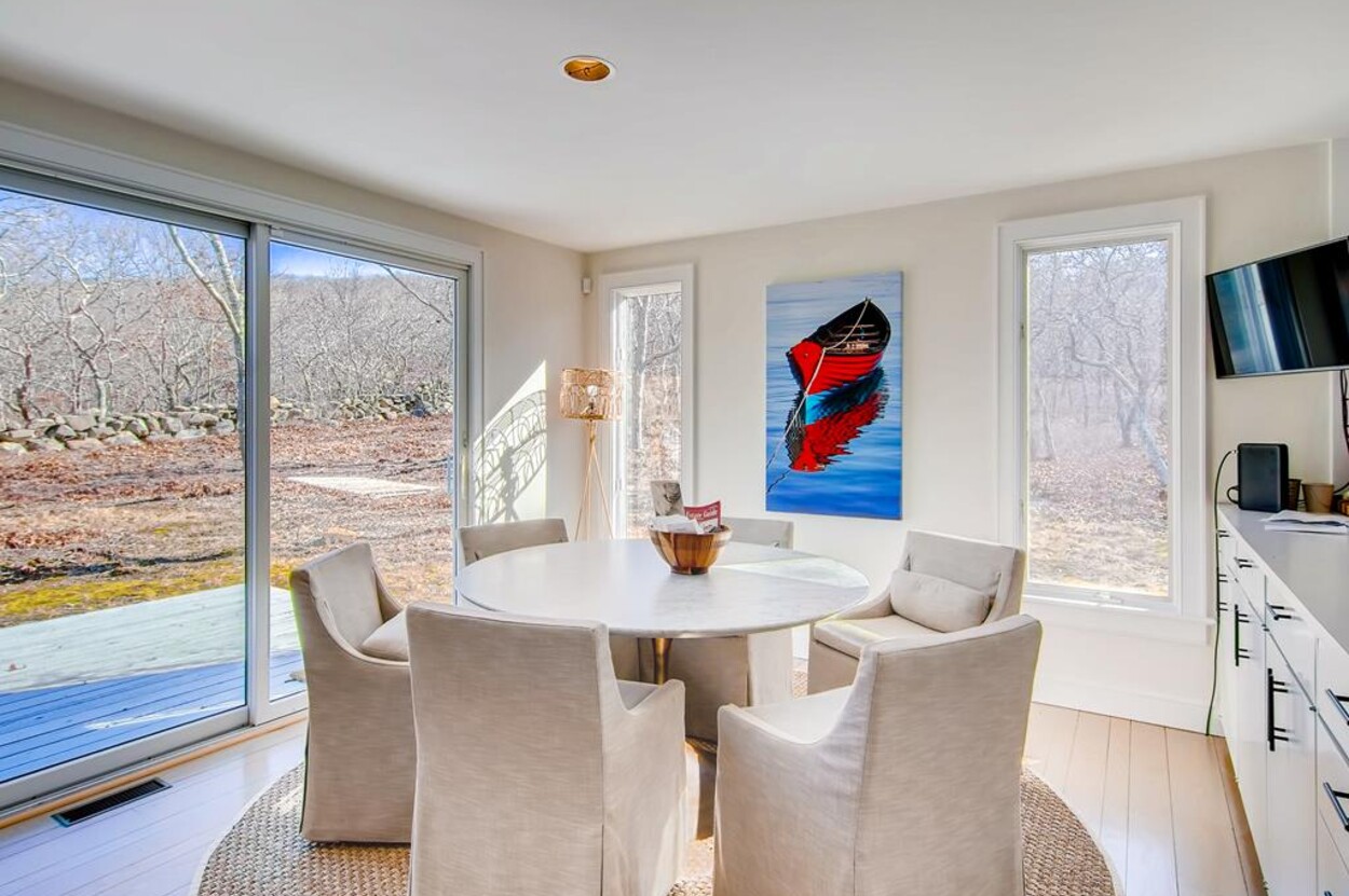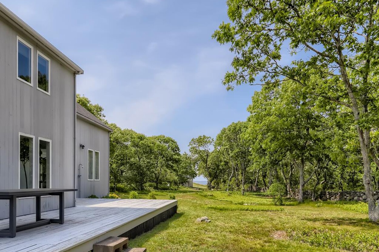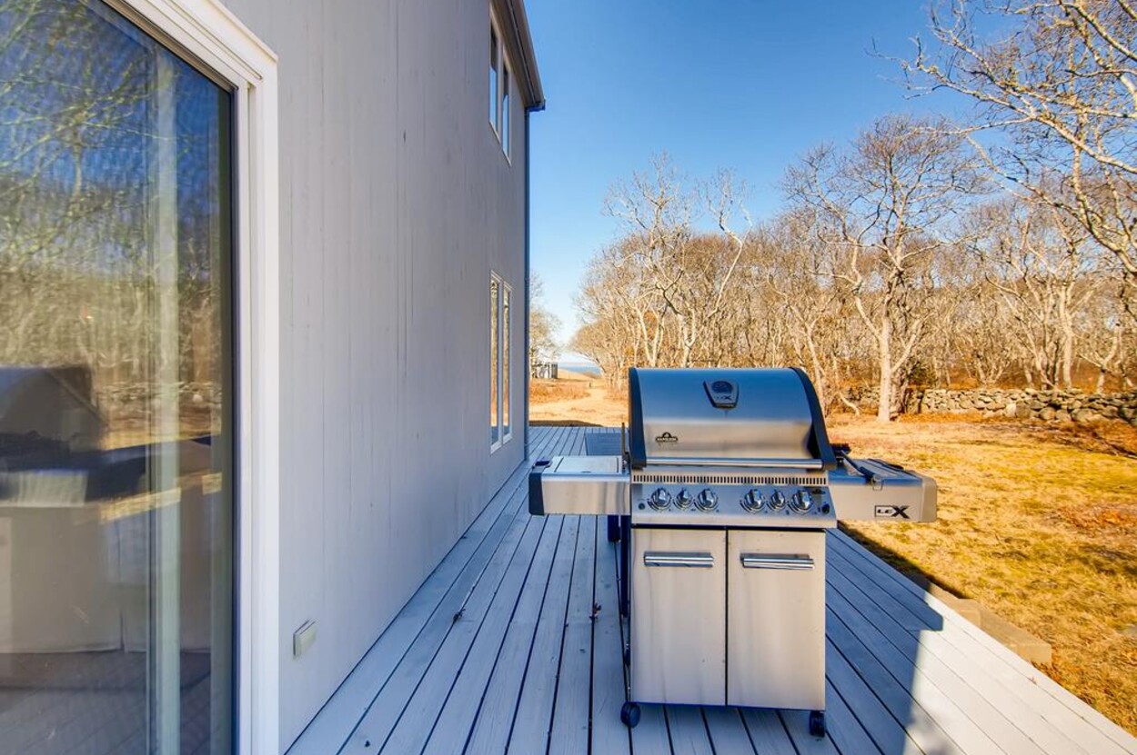 Spring Point Chilmark - Fabulous contemporary beach house. Renovated for 2019 with 4 bedrooms - 2 primary suites with private baths and glass enclosed showers and two more bedrooms share a bath. Open concept living/kitchen/dining and lovely large deck with outdoor furniture, grill and outdoor shower and peek at the water . Just a few minutes walk to a private association north shore beach. Stand on the shore and watch the sun set over the Elizabeth Islands. Plus Lucy Vincent and Squibncocket beach access. Association tennis court. Dog friendly (with prior agreement), AC. There is a distant narrow water view from the deck and primary bedroom..... it s small but you can see the sea!