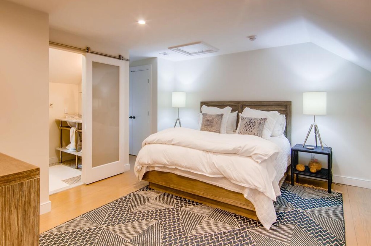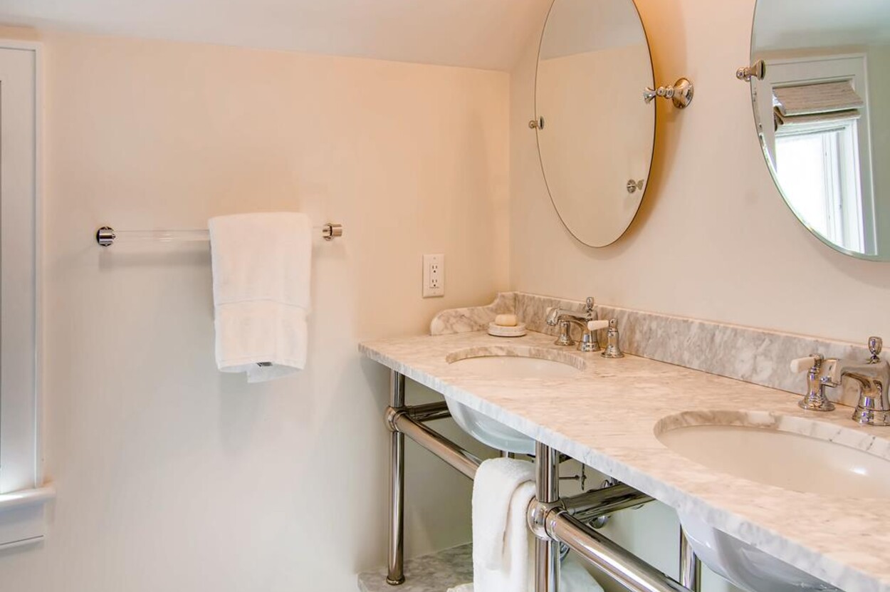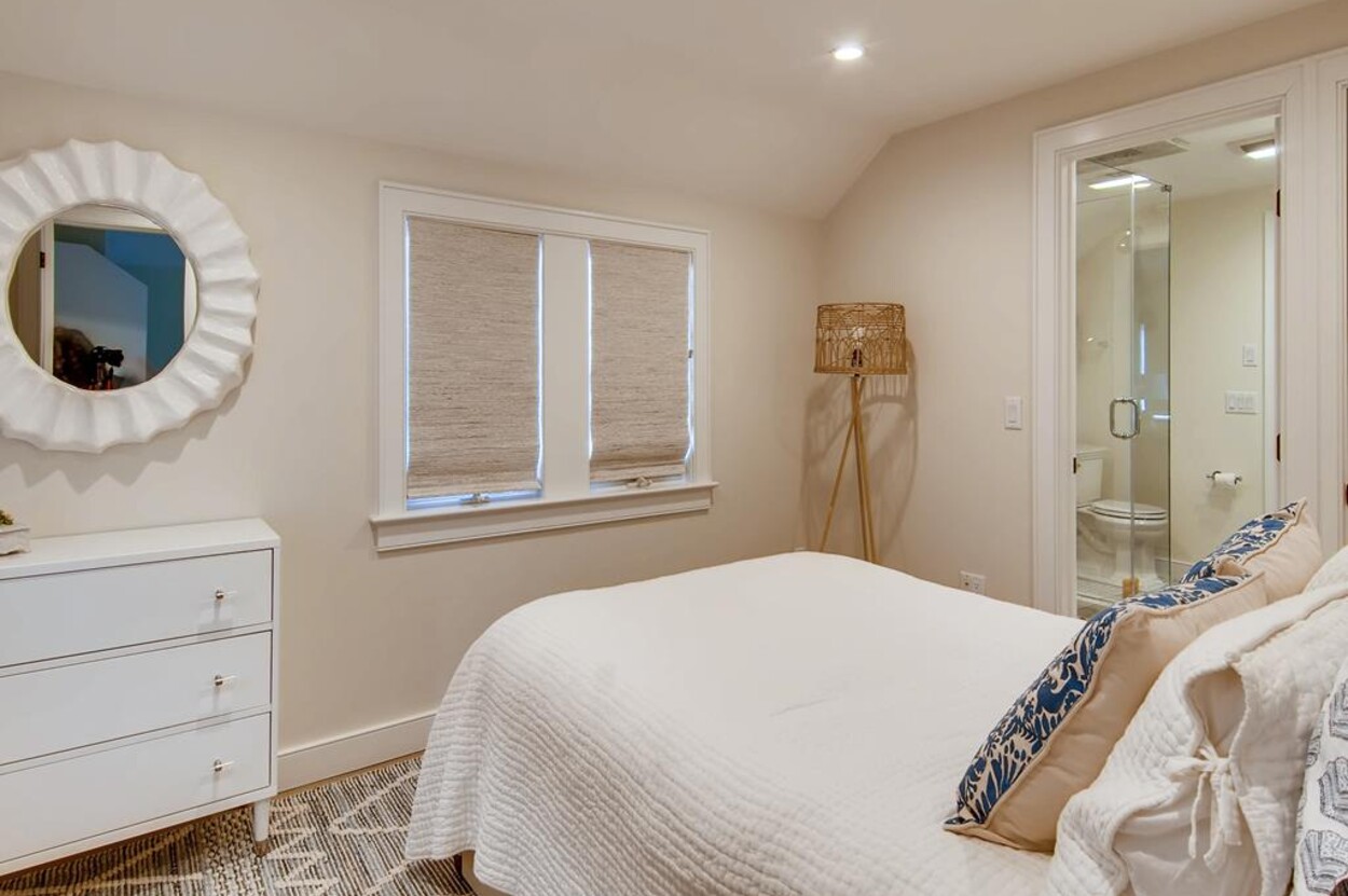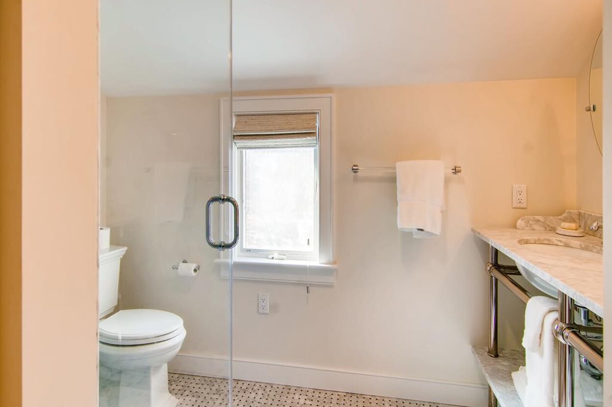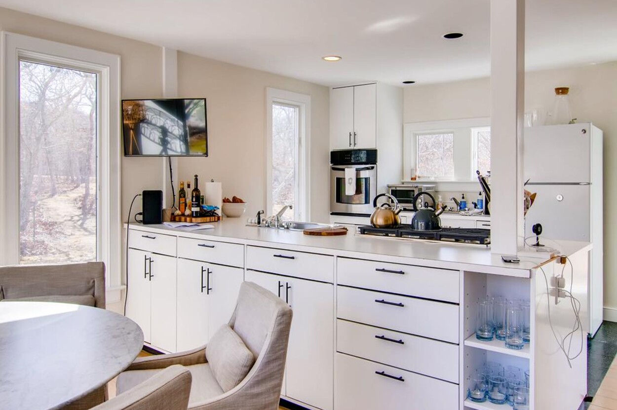 Spring Point Chilmark - Fabulous contemporary beach house. Renovated for 2019 with 4 bedrooms - 2 primary suites with private baths and glass enclosed showers and two more bedrooms share a bath. Open concept living/kitchen/dining and lovely large deck with outdoor furniture, grill and outdoor shower and peek at the water . Just a few minutes walk to a private association north shore beach. Stand on the shore and watch the sun set over the Elizabeth Islands. Plus Lucy Vincent and Squibncocket beach access. Association tennis court. Dog friendly (with prior agreement), AC. There is a distant narrow water view from the deck and primary bedroom..... it s small but you can see the sea!