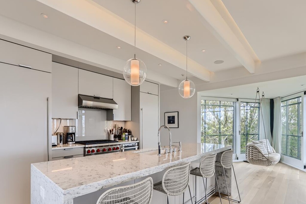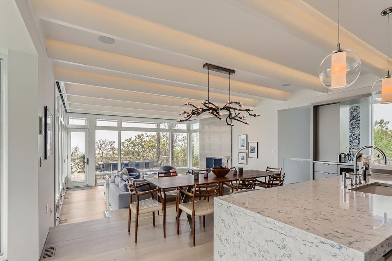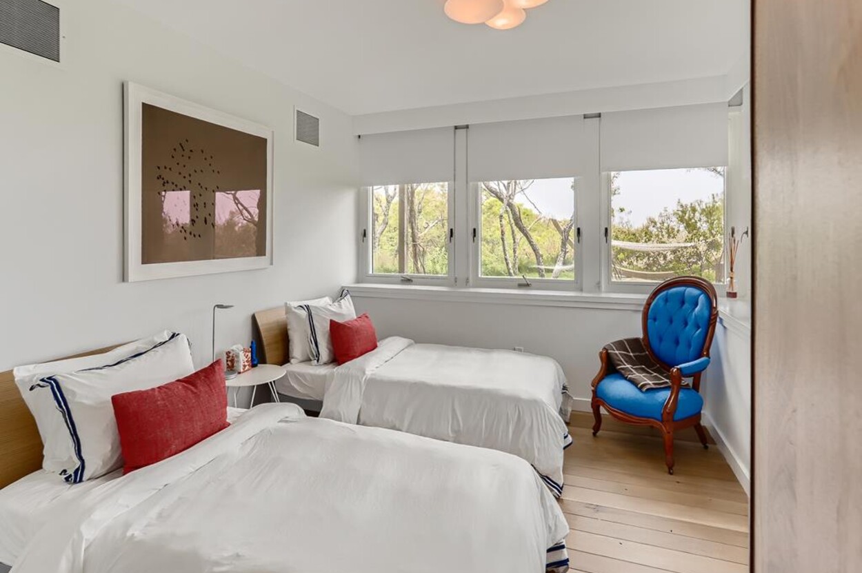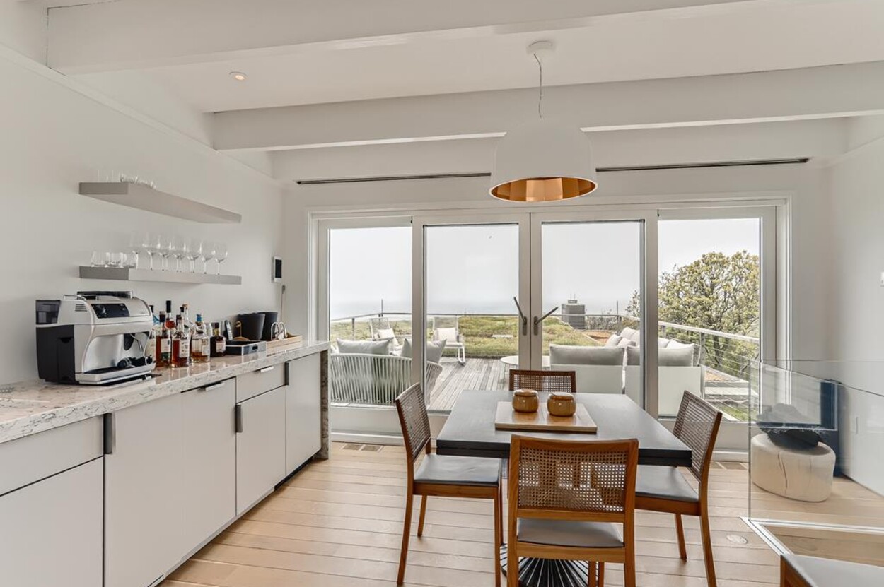 Breathtaking water views from this new four bedroom three bath home overlooking the Vineyard Sound out to the Elizabeth Islands. This walk to beach, architecturally designed home has state of the art decor and interior furnishings. Enjoy an evening cocktail or a private dinner on the generous deck located off of the main living area while taking in some of the best views on the island. This house is perfect for entertaining or for enjoying for yourself with your family or special someone. A leisurely walk down a short sandy path through abutting conservation property ends at your own private sandy beach where you can enjoy a spectacular summer sunset and relax in the gentle water of the Vineyard Sound. A great fishing spot and perfect beach for families with younger children. An outdoor shower, jacuzzi and sauna complete this perfect Vineyard get away. This beautiful modern home is the perfect spot to create your own Marthas Vineyard vacation memories.