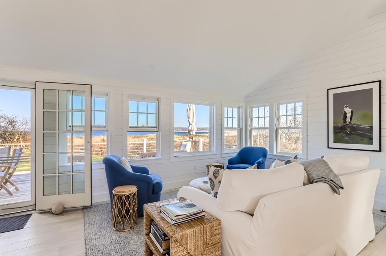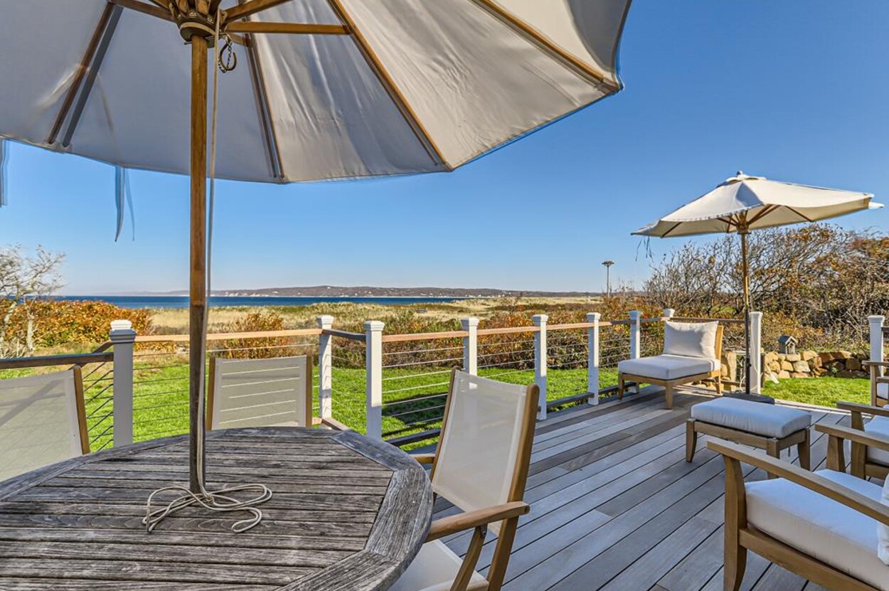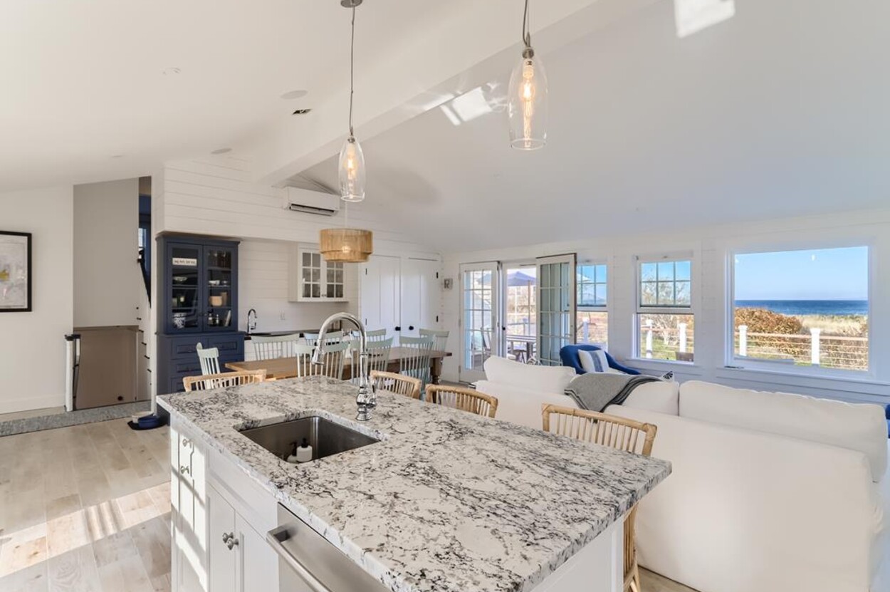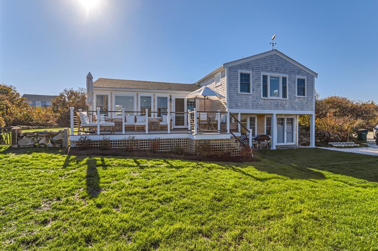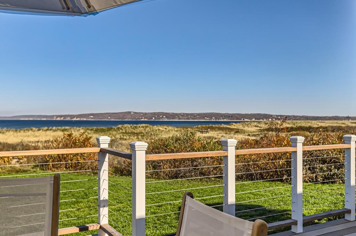 Enjoy glorious sunsets and water views from this newly renovated three bedroom, three bathroom waterfront home just steps away from swimming, sun bathing and fishing on Lobsterville Beach in Aquinnah. Open concept living, dining and gourmet kitchen with amazing water views, that stretch from Aquinnah to Menemsha, and a lovely large lawn with fenced vegetable garden completes a casual comfortable vibe for easy living and entertaining. The upper level primary bedroom also offers expansive water views. Enjoy the Vineyard sunset from the deck as you watch the birds and the boats go by - this is a very special spot.