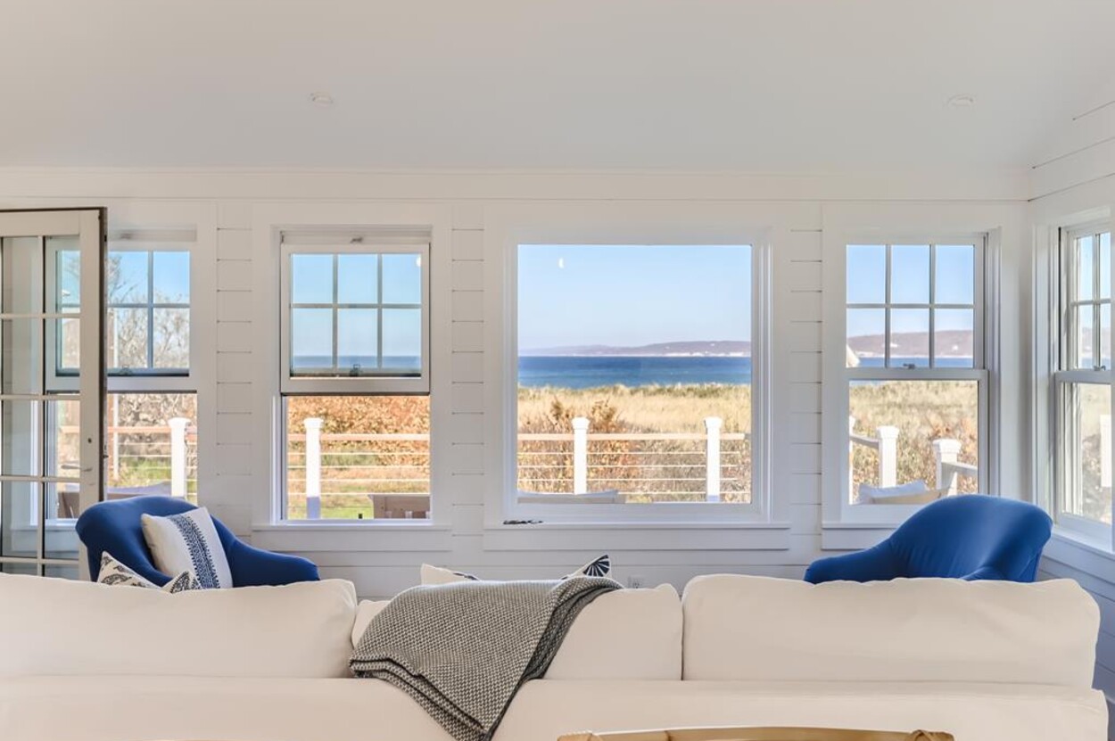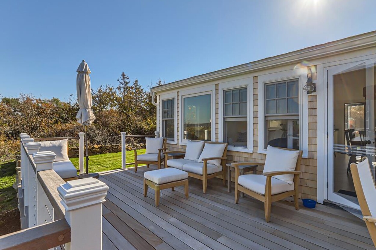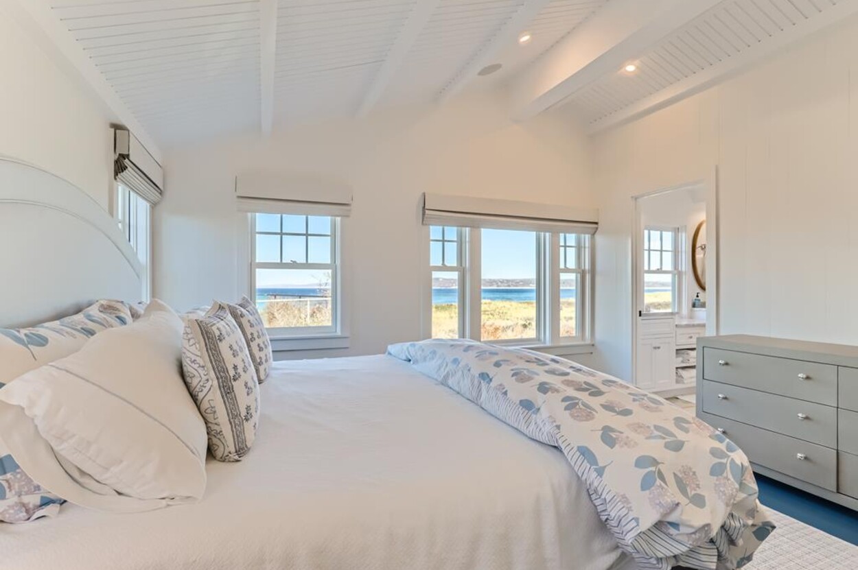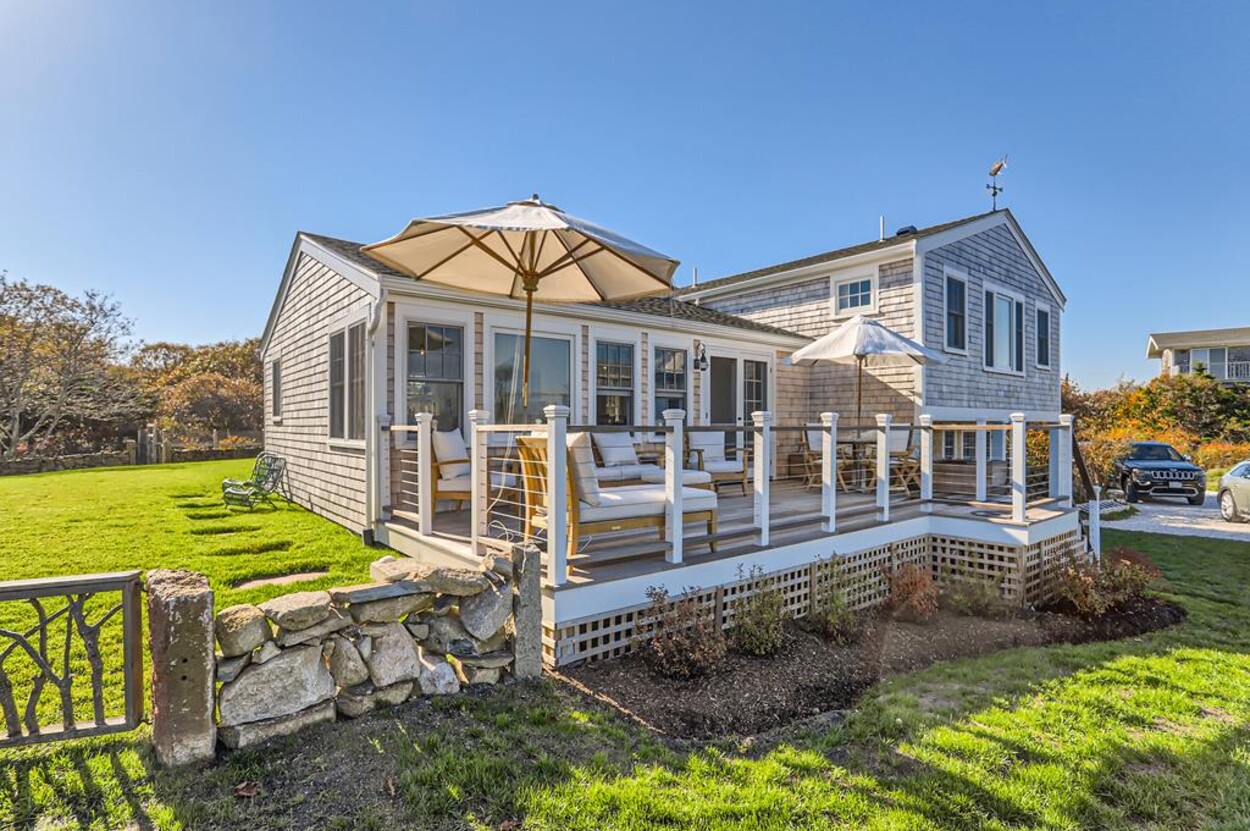 Enjoy glorious sunsets and water views from this newly renovated three bedroom, three bathroom waterfront home just steps away from swimming, sun bathing and fishing on Lobsterville Beach in Aquinnah. Open concept living, dining and gourmet kitchen with amazing water views, that stretch from Aquinnah to Menemsha, and a lovely large lawn with fenced vegetable garden completes a casual comfortable vibe for easy living and entertaining. The upper level primary bedroom also offers expansive water views. Enjoy the Vineyard sunset from the deck as you watch the birds and the boats go by - this is a very special spot.