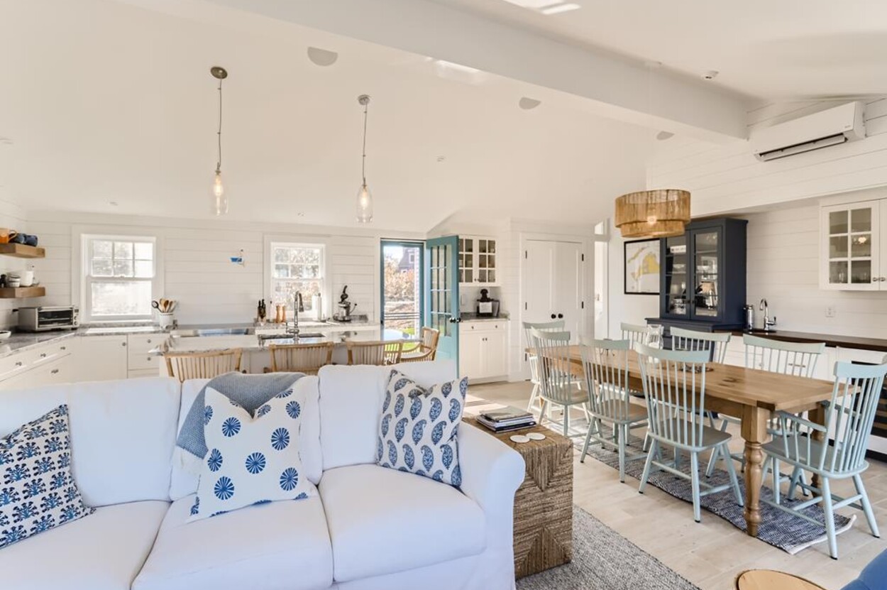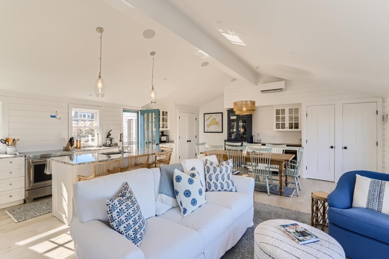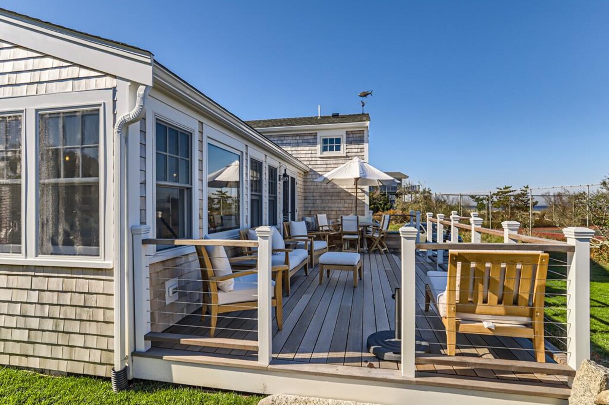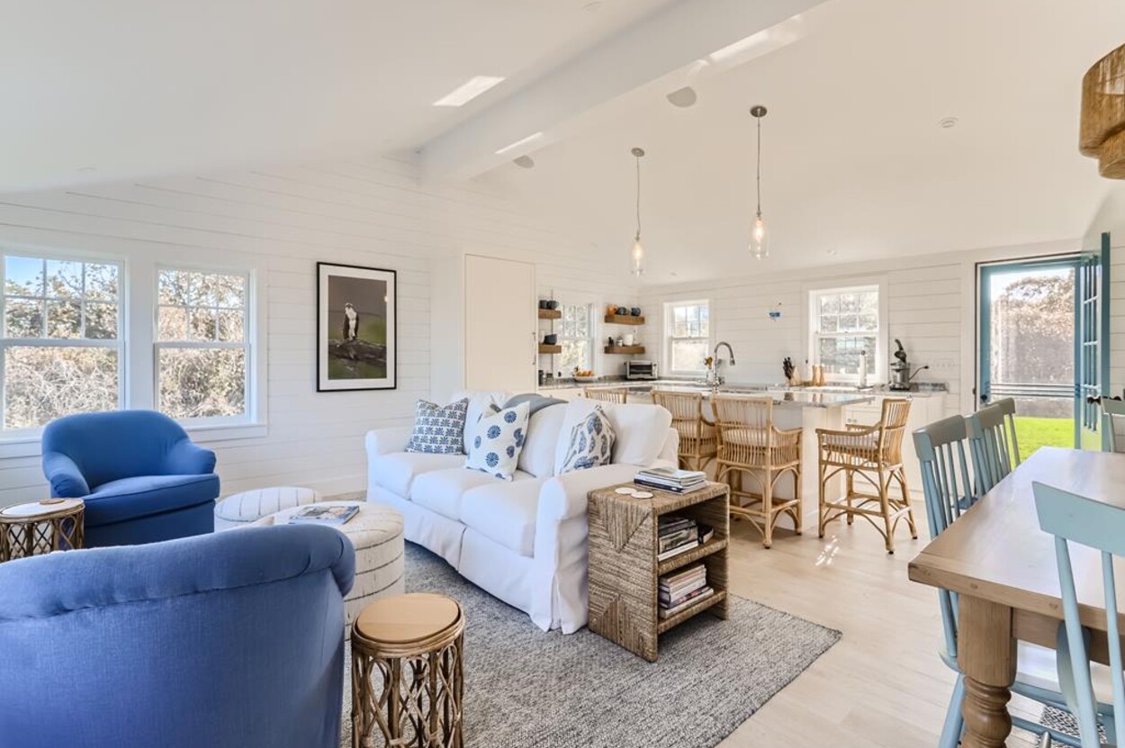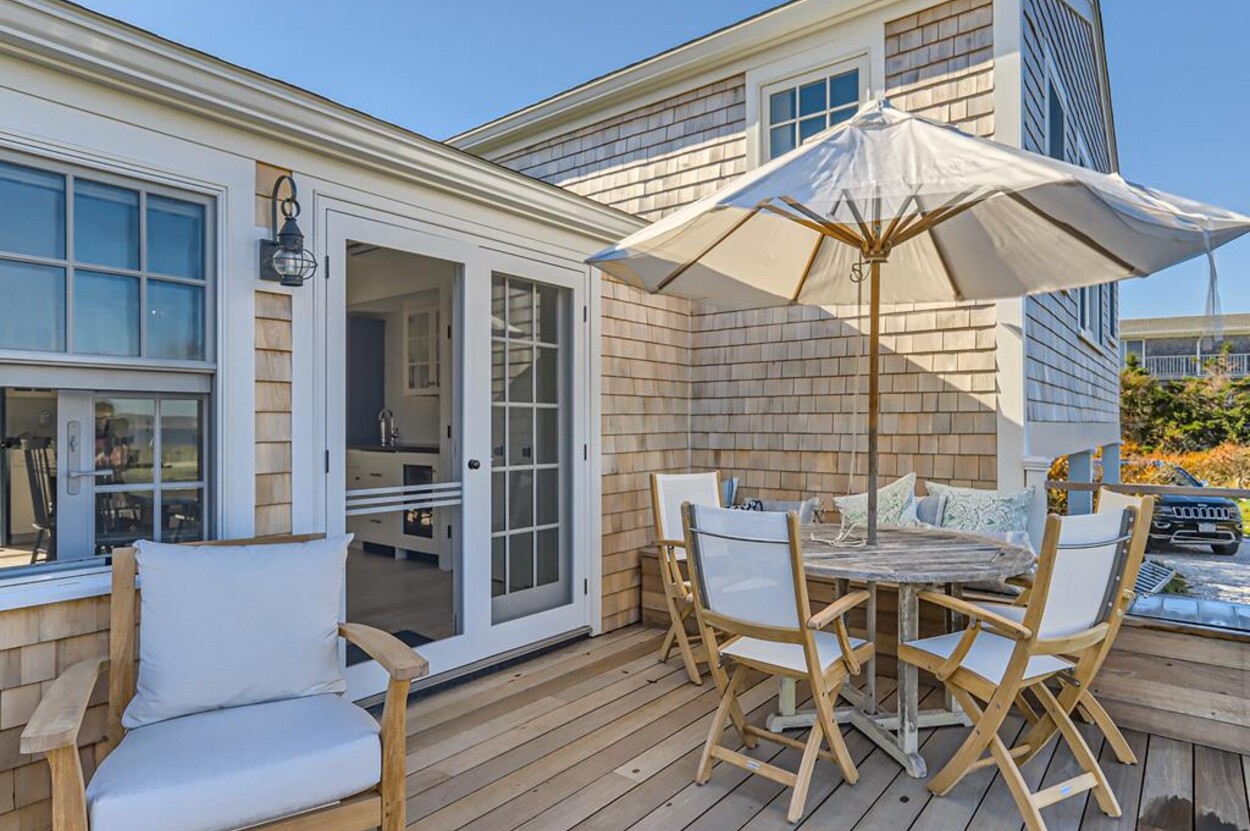 Enjoy glorious sunsets and water views from this newly renovated three bedroom, three bathroom waterfront home just steps away from swimming, sun bathing and fishing on Lobsterville Beach in Aquinnah. Open concept living, dining and gourmet kitchen with amazing water views, that stretch from Aquinnah to Menemsha, and a lovely large lawn with fenced vegetable garden completes a casual comfortable vibe for easy living and entertaining. The upper level primary bedroom also offers expansive water views. Enjoy the Vineyard sunset from the deck as you watch the birds and the boats go by - this is a very special spot.