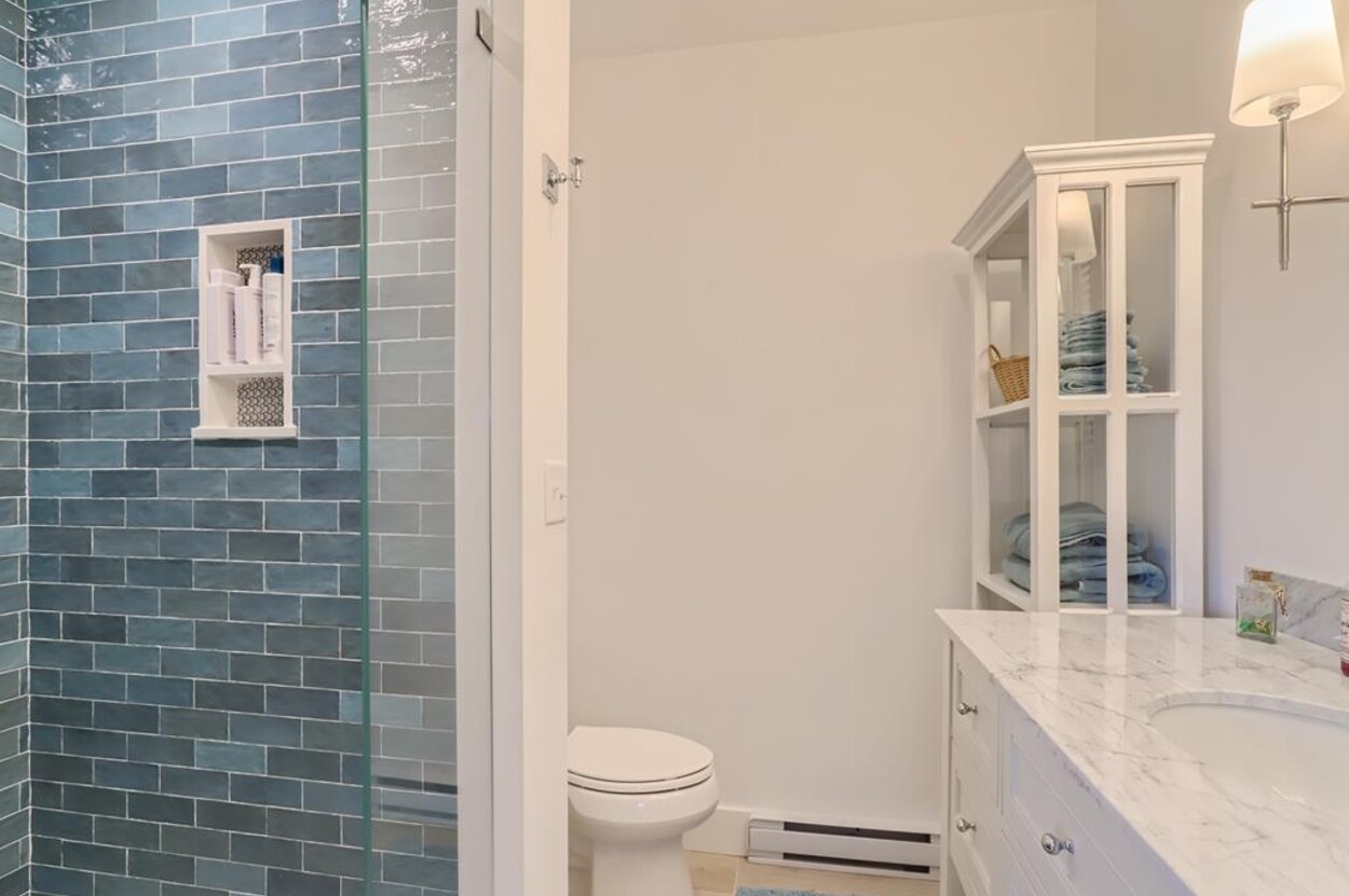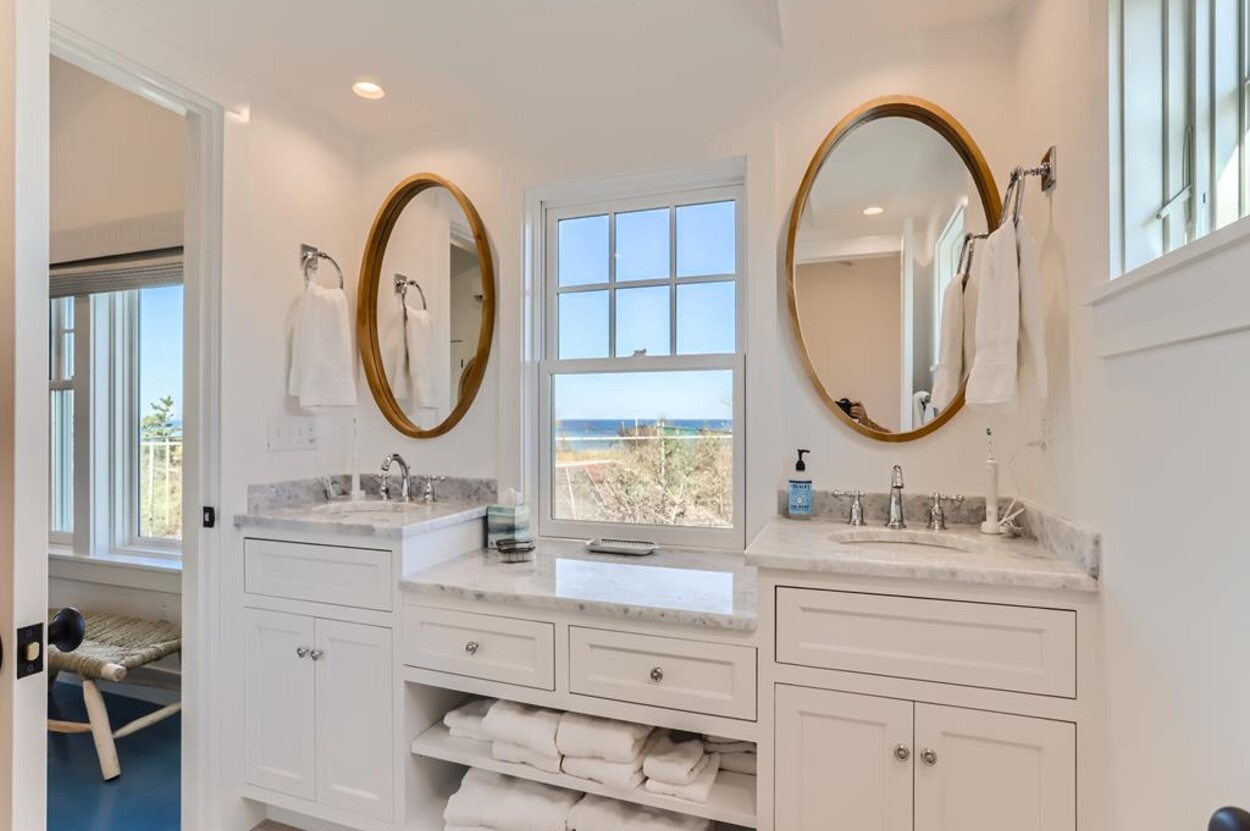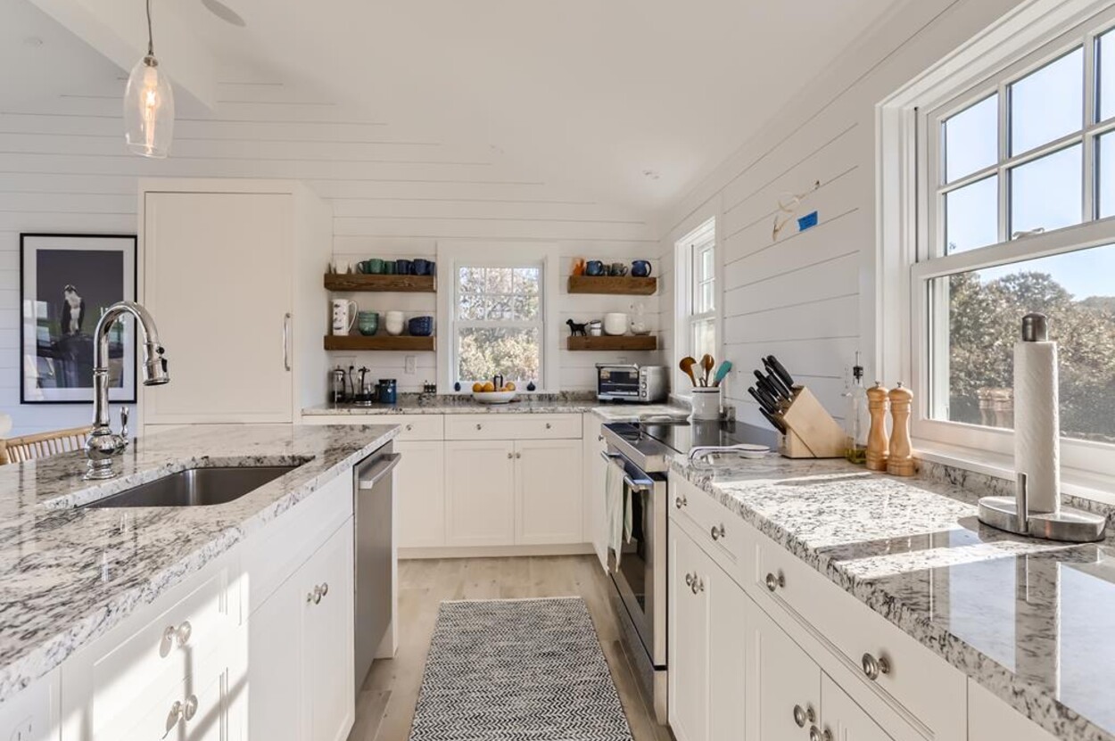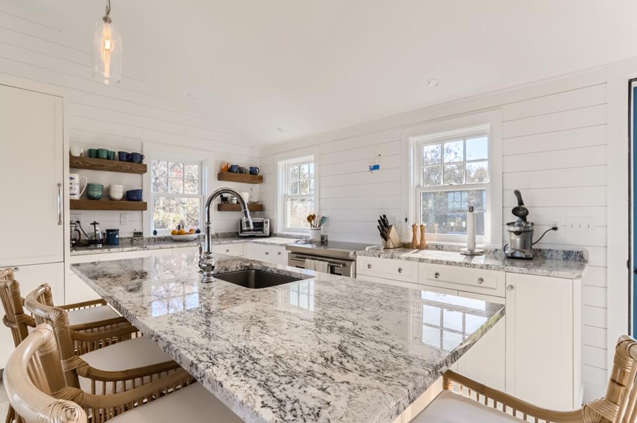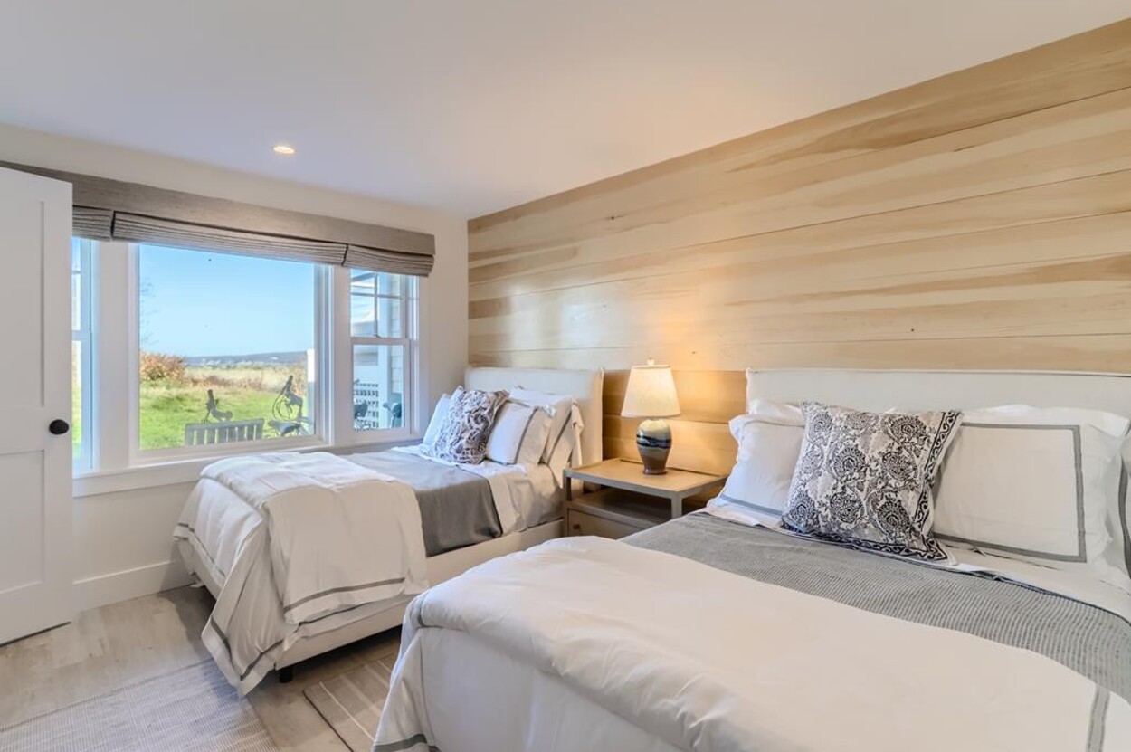 Enjoy glorious sunsets and water views from this newly renovated three bedroom, three bathroom waterfront home just steps away from swimming, sun bathing and fishing on Lobsterville Beach in Aquinnah. Open concept living, dining and gourmet kitchen with amazing water views, that stretch from Aquinnah to Menemsha, and a lovely large lawn with fenced vegetable garden completes a casual comfortable vibe for easy living and entertaining. The upper level primary bedroom also offers expansive water views. Enjoy the Vineyard sunset from the deck as you watch the birds and the boats go by - this is a very special spot.