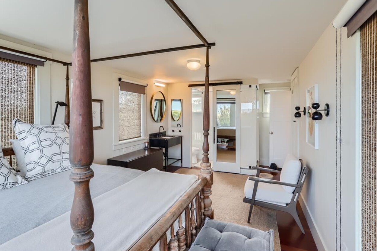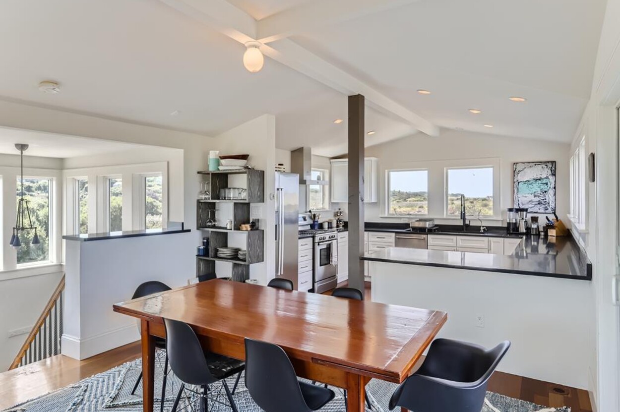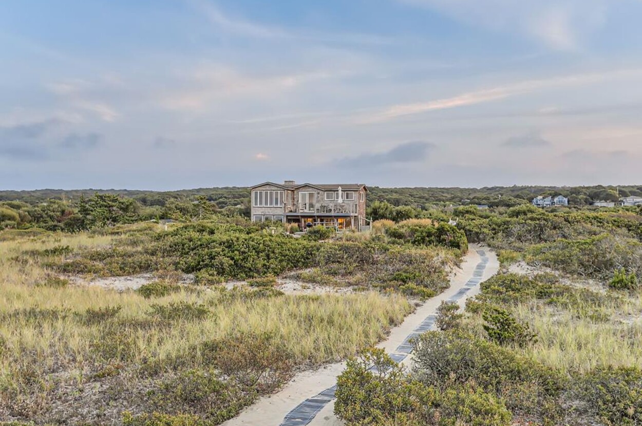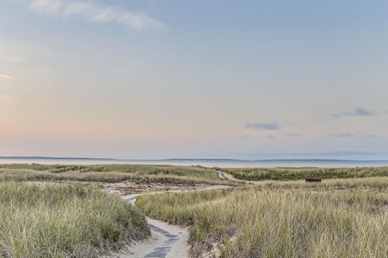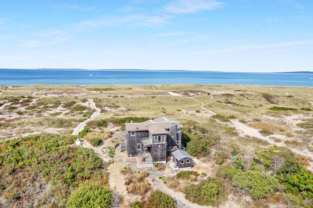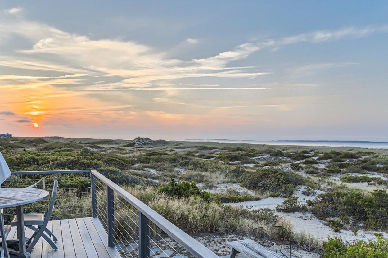 Privately situated waterfront beach house on Dogfish Bar in Aquinnah. This contemporary style beach house is set on rolling sand dunes and has panoramic views of the Aquinnah Lighthouse, Vineyard Sound, and the Elizabeth Islands. Private beach just steps in front of house. Gourmet kitchen, cherry floors, beautiful finishes and recently renovated bathrooms. Nice deck off the dining/kitchen area. Gorgeous sunsets! This is a magical spot on the Island.