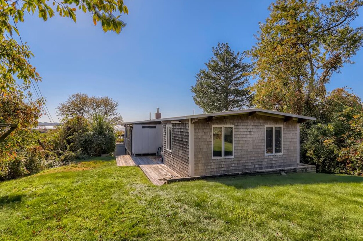 Classic Menemsha cottage off of Flanders Lane. Extraordinary views of Menemsha Pond with private access for swimming and boating. Easy open layout with kitchen, living room and dining room, all taking advantage of the views. The deck is substantial and extends the living space. Three comfortable bedrooms, two bathrooms, outdoor shower. Tenants to supply own sheets and towels. Short walk to town of Menemsha. This is the real thing!