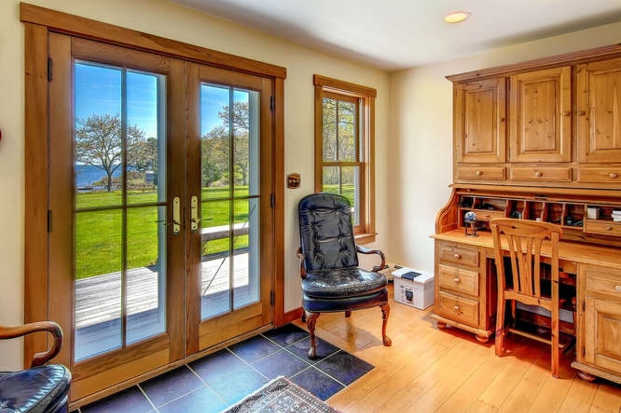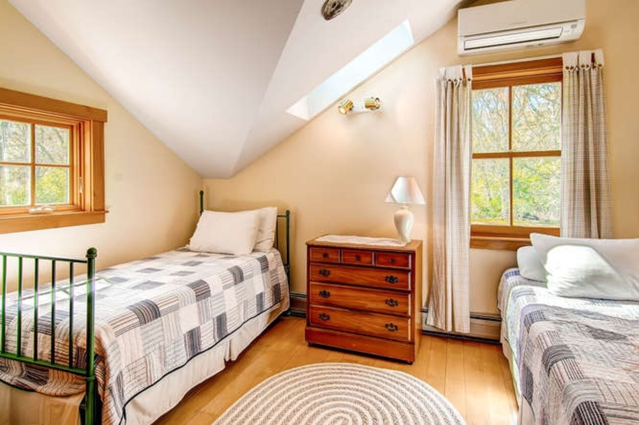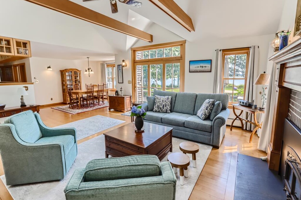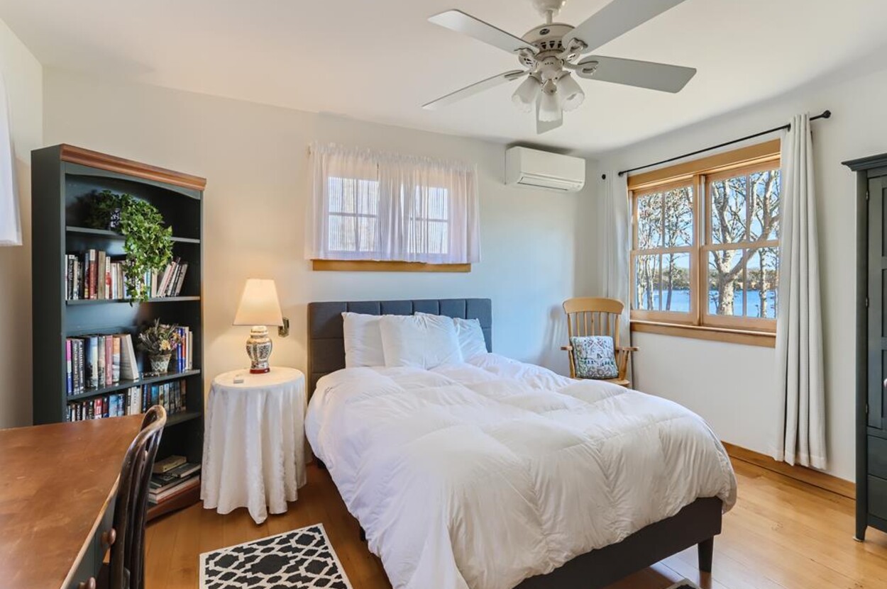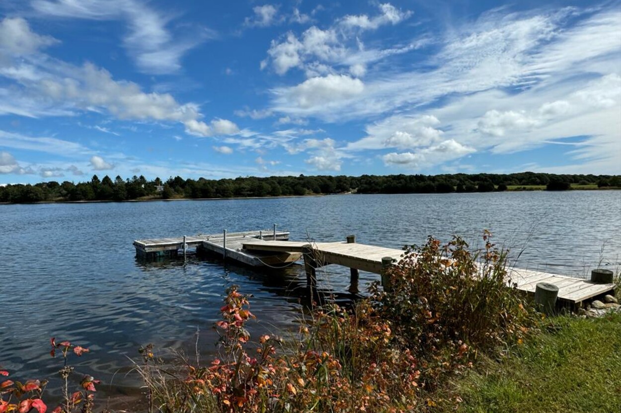 Lovely waterfront home on the West Tisbury Great Pond surrounded by nature and with special views over the pond towards the South Shore. There's a private dock on the property from which to kayak, fish or swim or rent a motor boat and explore the pond. The home has a nice open layout that's clean and bright. Living room, dining area and open kitchen, plus an office, ensuite bedroom and laundry on the first floor. 3 further bedrooms on the second floor - one ensuite and two that share a bath. Sunny water facing deck and screened porch off the living room. Mini split AC. outdoor shower. Centrally located just over the Chilmark line, so conveniently located close to Alleys General Store, The Yoga barn. Good pets considered!