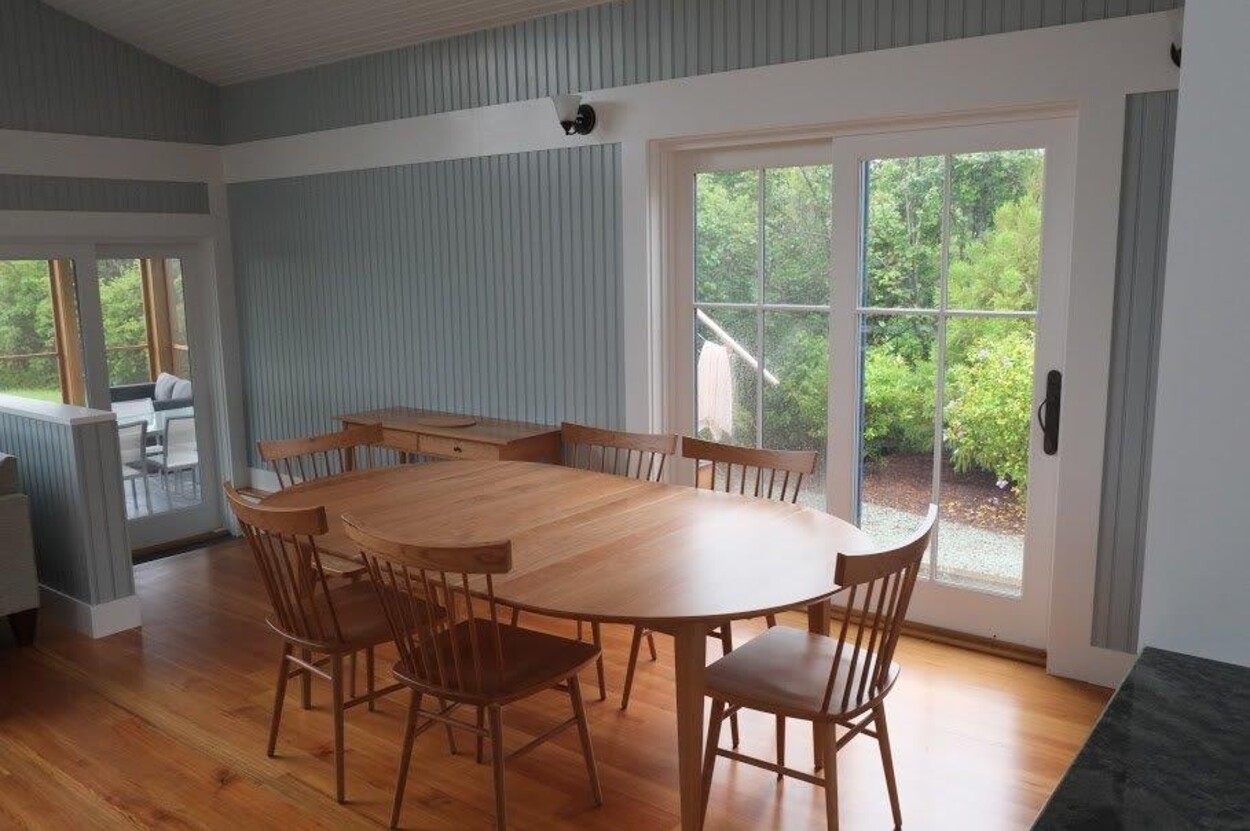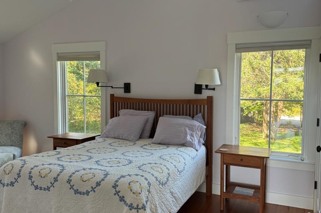 This luxury waterfront home on the western end of Chilmark Pond is located in the sought after Abels Hill association. Walk to a beautiful sandy ocean beach less than five minutes from your door, kayak in Chilmark Pond, play tennis on the association courts and enjoy spectacular shore and pond views from the upper deck. This custom home, designed by a leading architect, has a large open floor plan which features a living/dining area with cathedral ceiling and expansive windows. There is custom cabinetry and vintage antique flooring throughout. Primary bedroom suite with private bath and queen bed. Two additional bedrooms, one with queen bed and one with two twin beds share a second bath. Deluxe, fully outfitted gourmet kitchen with granite countertops, seating area and top of the line appliances. Large screened porch with additional seating and dining area to relax in this country setting. A wonderful home for a couple or a family to experience Martha s Vineyard at its best.