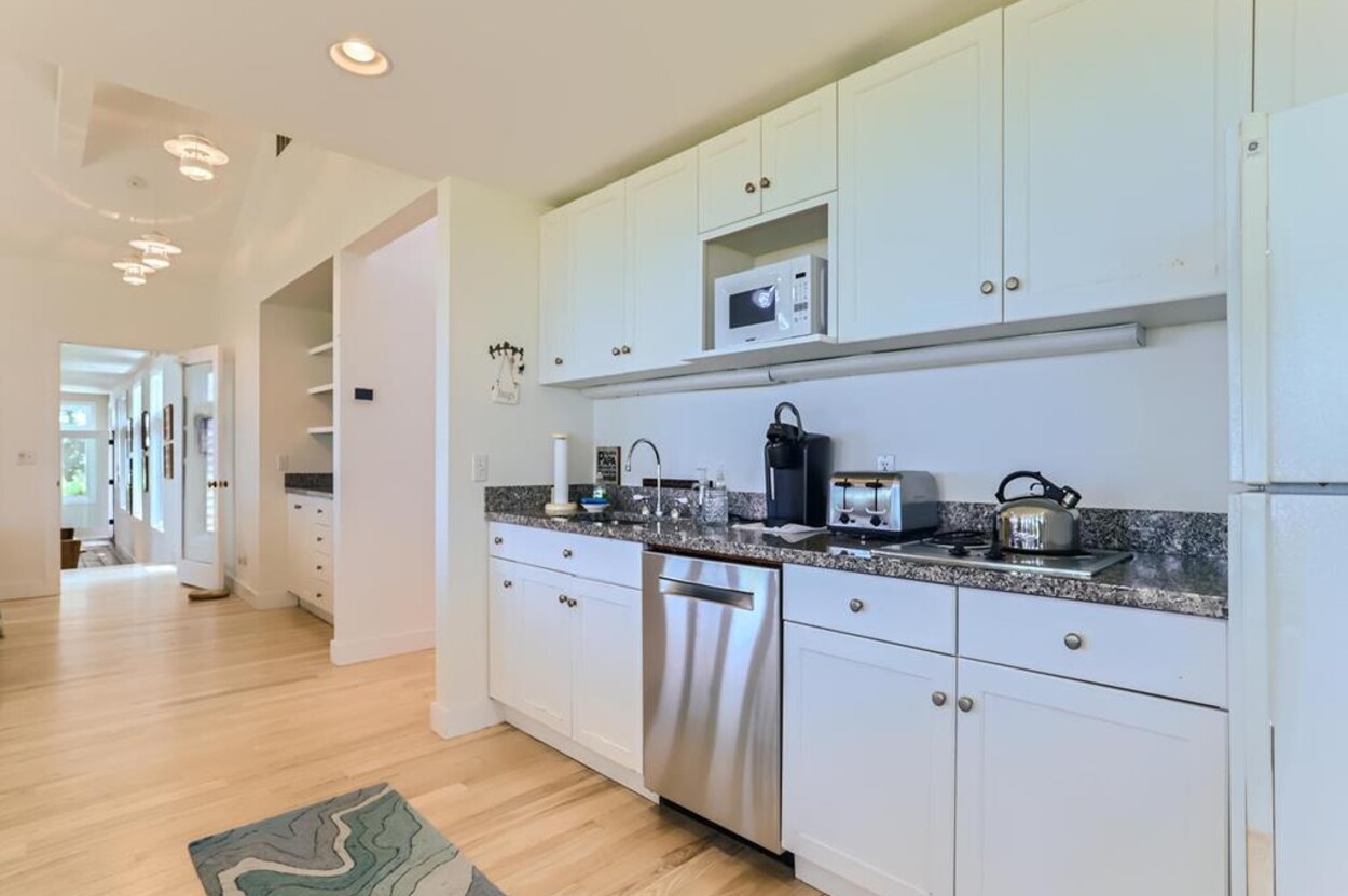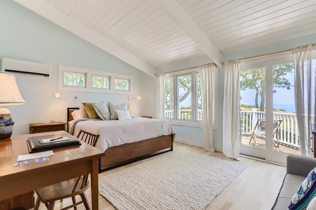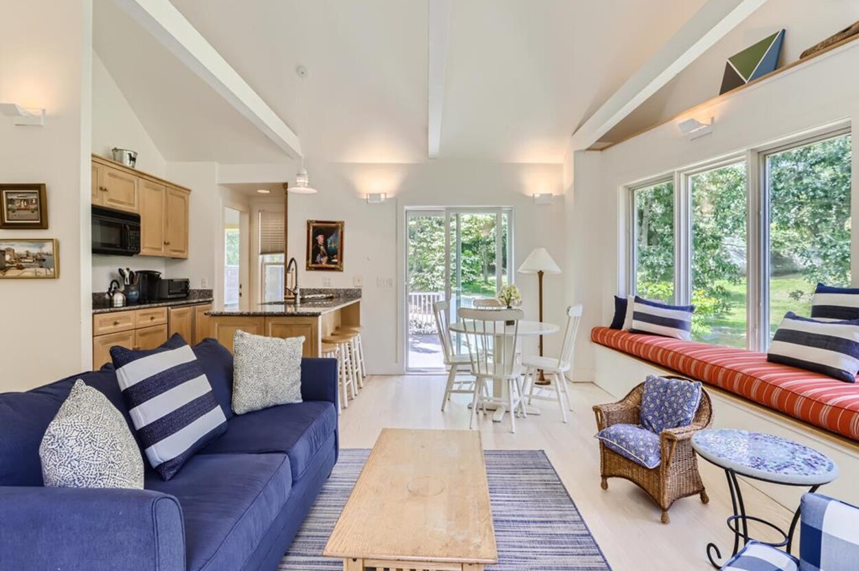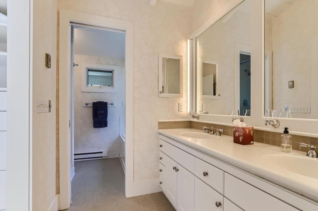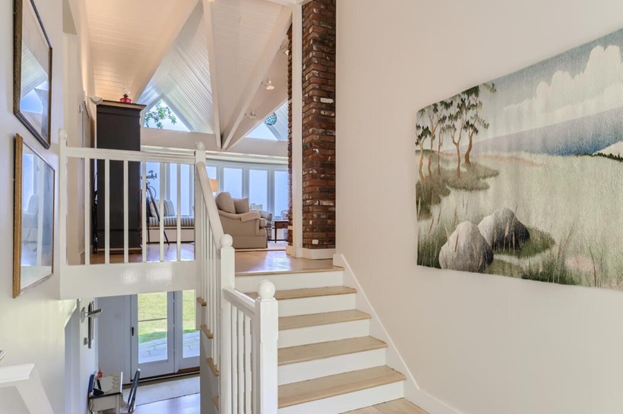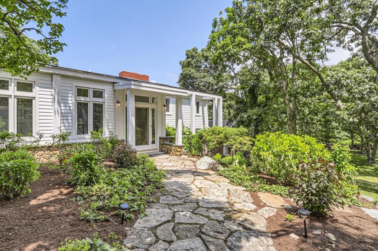 Stunning Chilmark north shore 4 acre waterfront paradise with wonderful sunsets and unique privacy nestled between a large wooded hill and a 200 acre private estate. The 6 bedroom 4 1/2 bath kitchen main house, (including primary suite and separate guest wing with additional living room and kitchenette), plus 2 bedroom, 2 bath guest house enjoy dramatic views of the Elizabeth Islands from the Gay Head Lighthouse to Woods Hole from every room. The property is beautifully landscaped with an enchanting contour stretching to the bluff overlooking a dreamy private cove and sandy beach. Four cleared acres are very rare on the heavily wooded north shore. Waterfront values on the rugged, elevated and protected Vineyard north shore are attracting more interest after Hurricane Sandy damaged the low elevation fragile south shore NY, NJ and New England coast line. The property is in the highly desirable 335 acre Spring Point community with 38 home sites with 135 acres of common land, 3/4 mile of private beach, 2 tennis courts and endless dirt roads and trails.