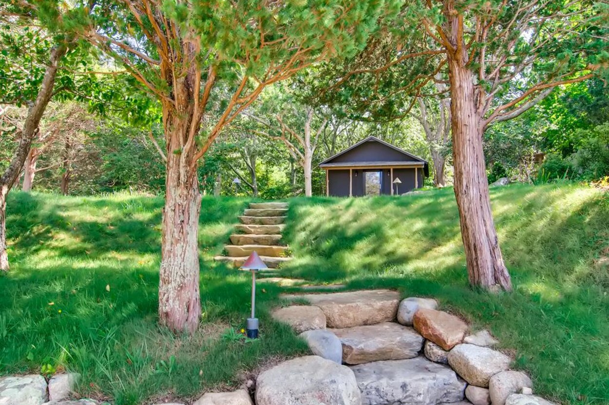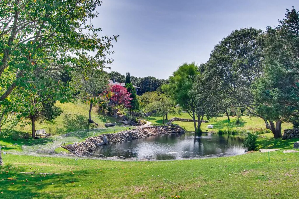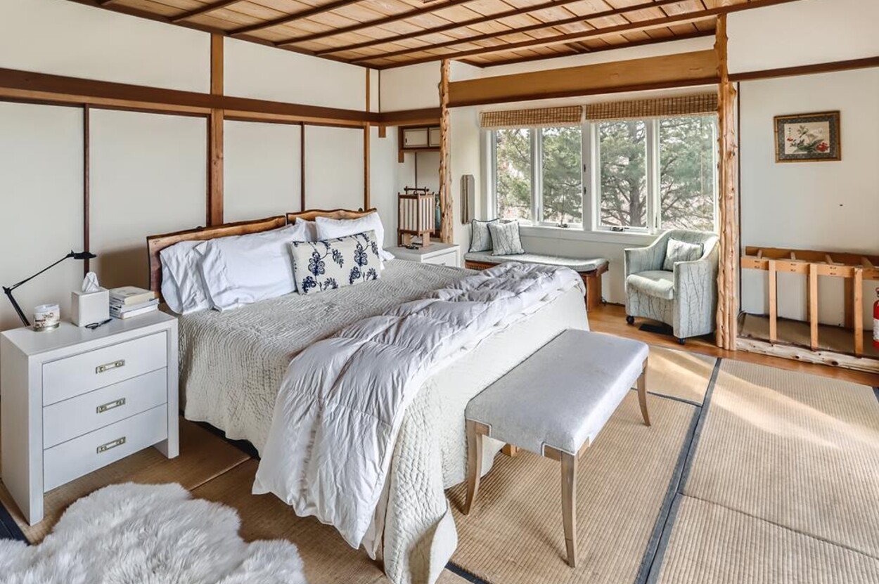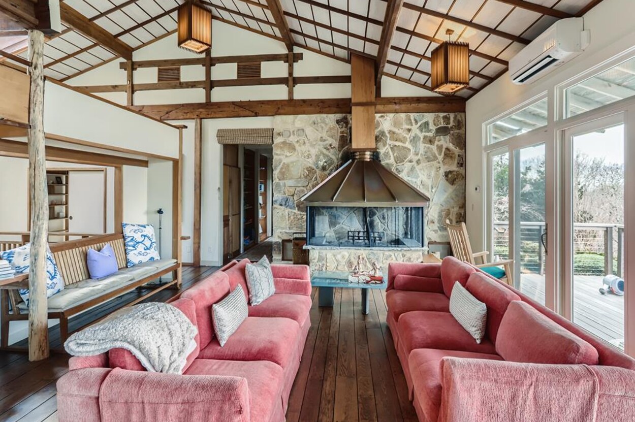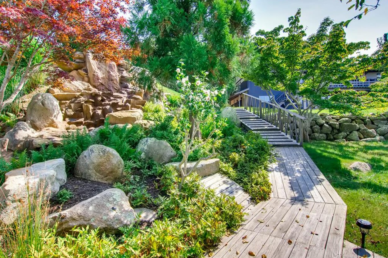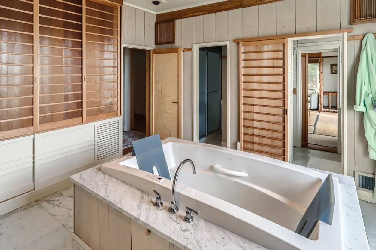 Zen Gates located in Seven Gates Farm is a stunningly beautiful tranquil setting within a 1600 acre association on Chilmarks North Shore. There are two and a half miles of private association beaches with two large docks for swimming and boating, two tennis courts and miles of natural trails. Path in front of the home leads to the quiet beach. The Japanese Farm House style home sits on 6 acres with exquisite landscaping. It has a gourmet fully equipped kitchen, 5 bedrooms and 5 baths with water views. The one bedroom, one bath guest house is fully equipped and newly built with water views. There is a newly built free standing and fully equipped gym as well. Property tour at https://vimeo.com/810958791/6155713aae