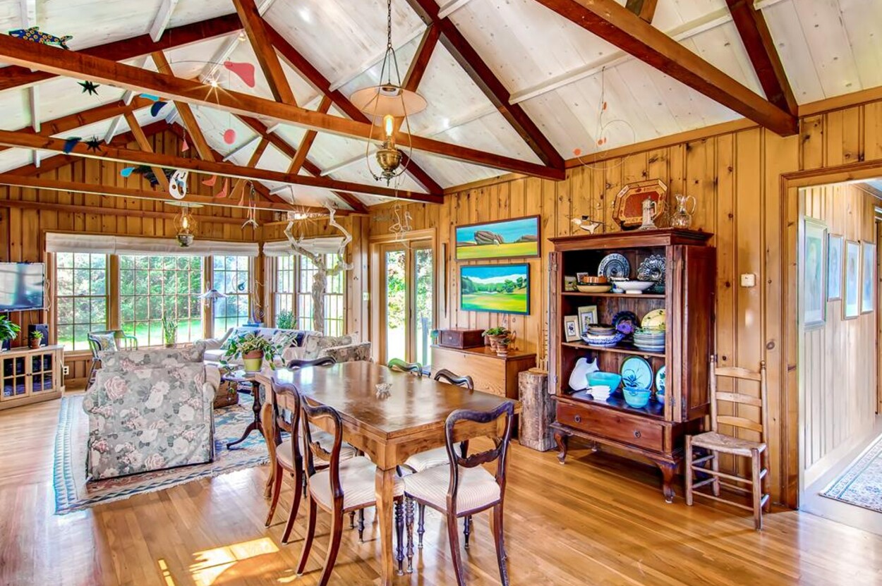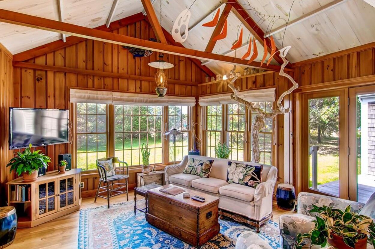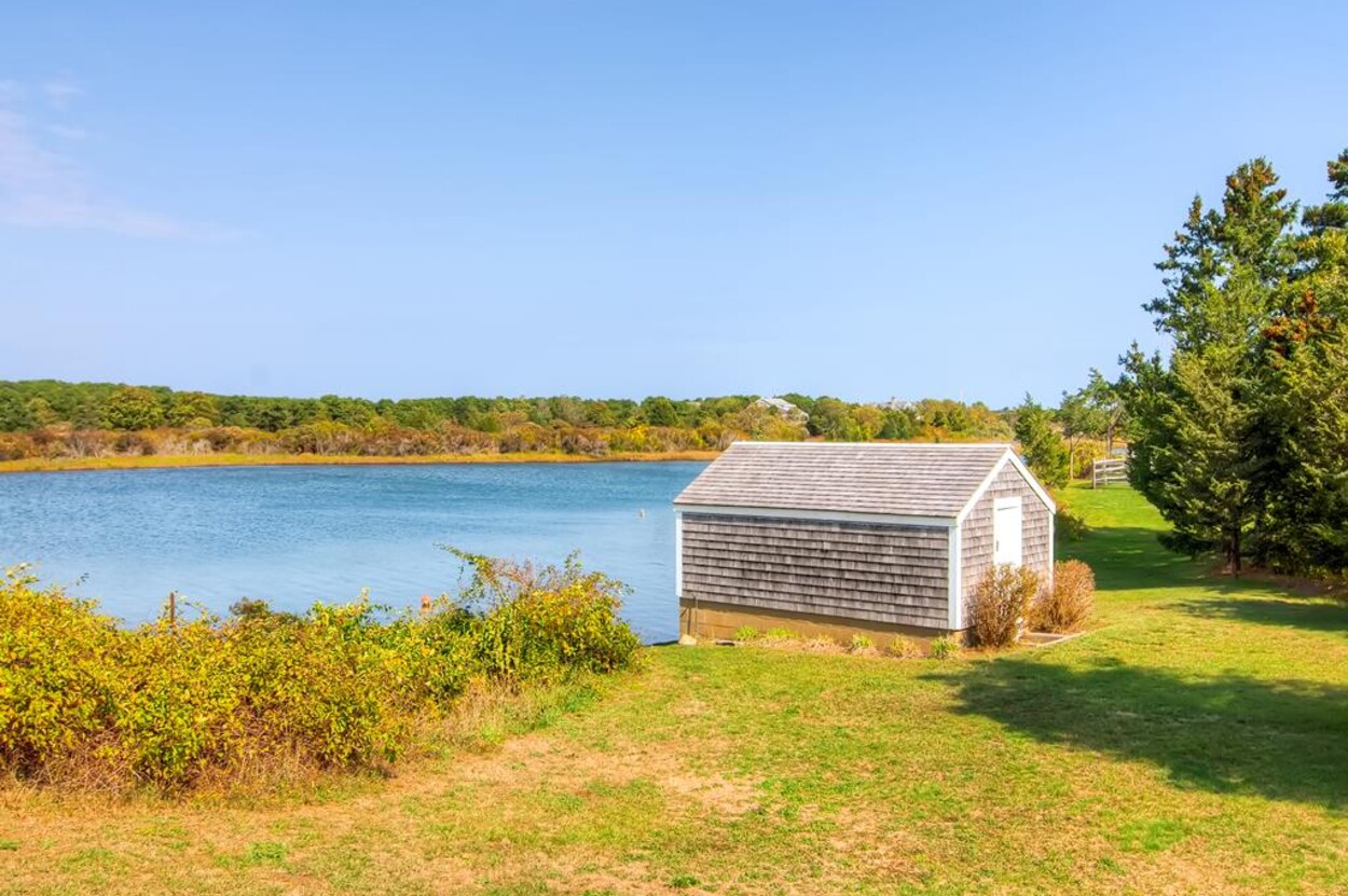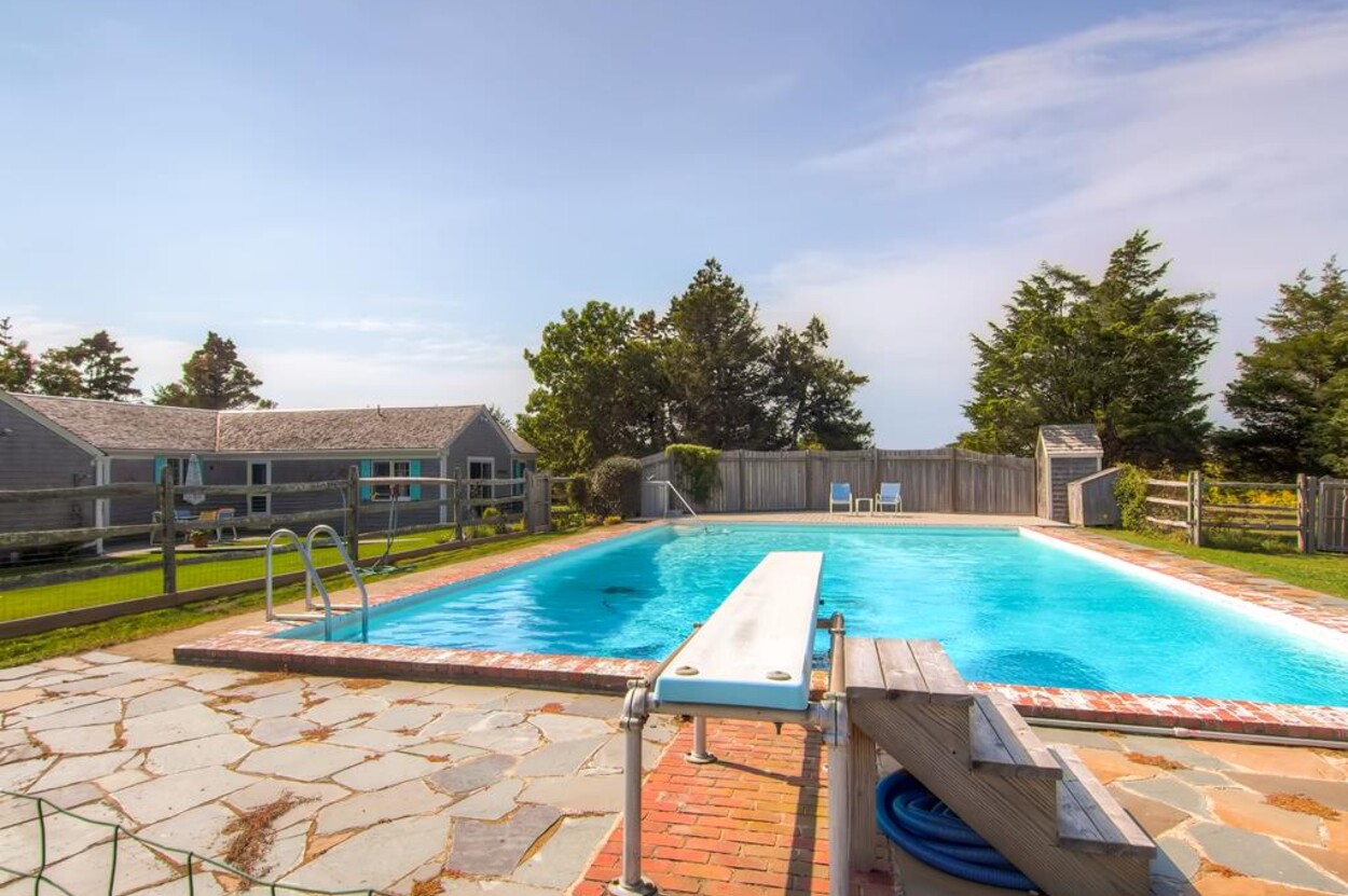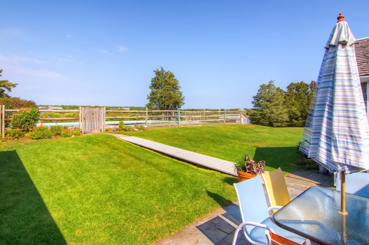 Wonderful hideaway on Slough Cove in Herring Creek Farm. Charming Vineyard home in one of a kind location. This is a great package of amenities - pool, pond access, private beach! Built in 1950 and since expanded and renovated with an open living dining kitchen area great for casual family living. Four bedrooms and 3 baths including a detached bunkhouse with bedroom/TV room - great hang out space for kids and/or separate bedroom for nanny. Central air split systems in all rooms except outer bedroom. All rooms on one level.Three decks to enjoy the beautiful views and sunsets. Lovely rural setting on 6 acres with expansive lawn for children to play, volley ball net, and swings. Substantial pool with diving board. Ten minute boat or bike ride to fabulous private ocean beach. Close to Edgartown yet in a world of its own.