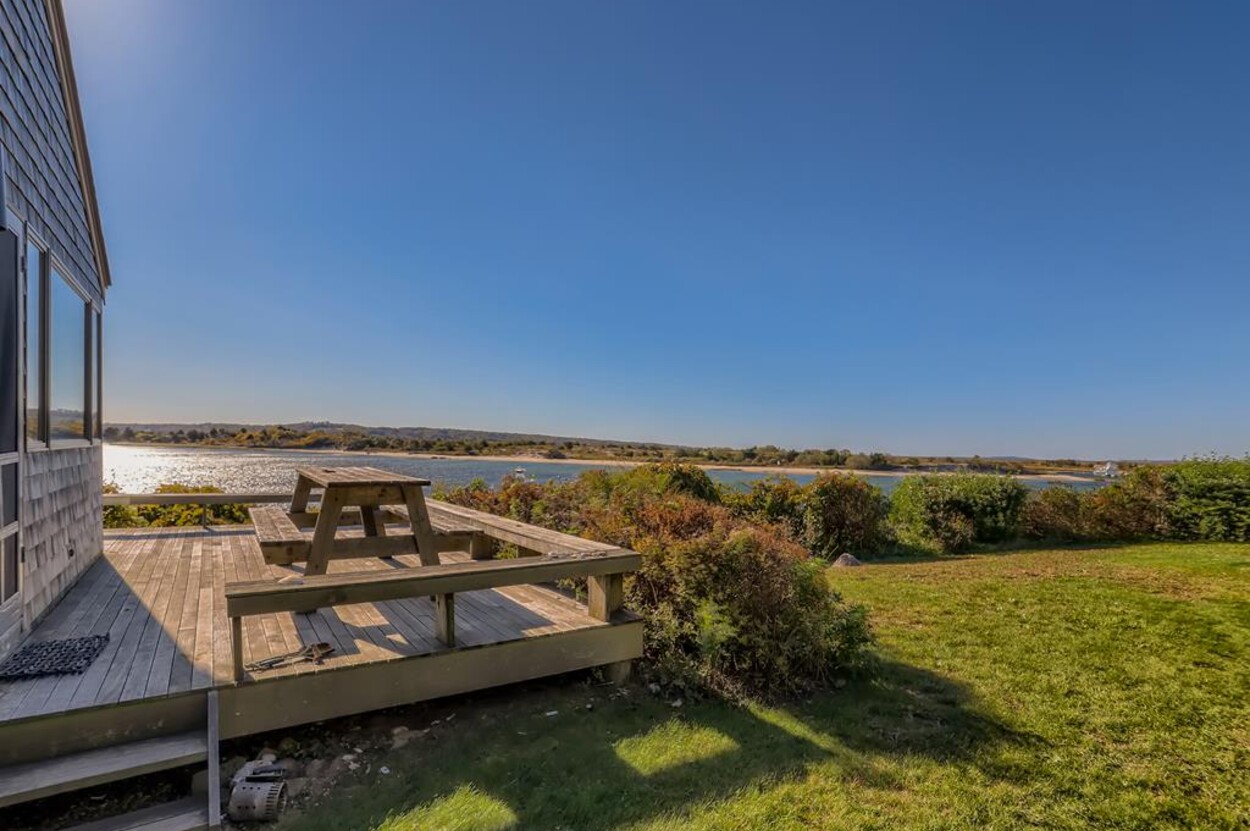 Menemsha cottage right on Menemsha Pond with three bedrooms, two full baths and, of course, an outdoor shower. Walk to the Homeport or the Galley. The water views are incredible. Comfortable and tasteful interior- perfect for a summer vacation with family or friends. There is a smaller cottage close by that would compliment this house for a larger gathering. TENANTS TO BRING OWN LINENS. Option of linens at an additional cost available. Please inquire for more details. Sorry no pets allowed.