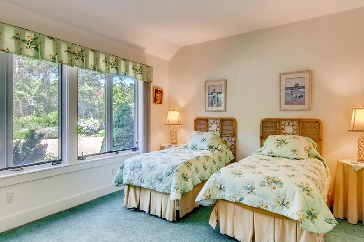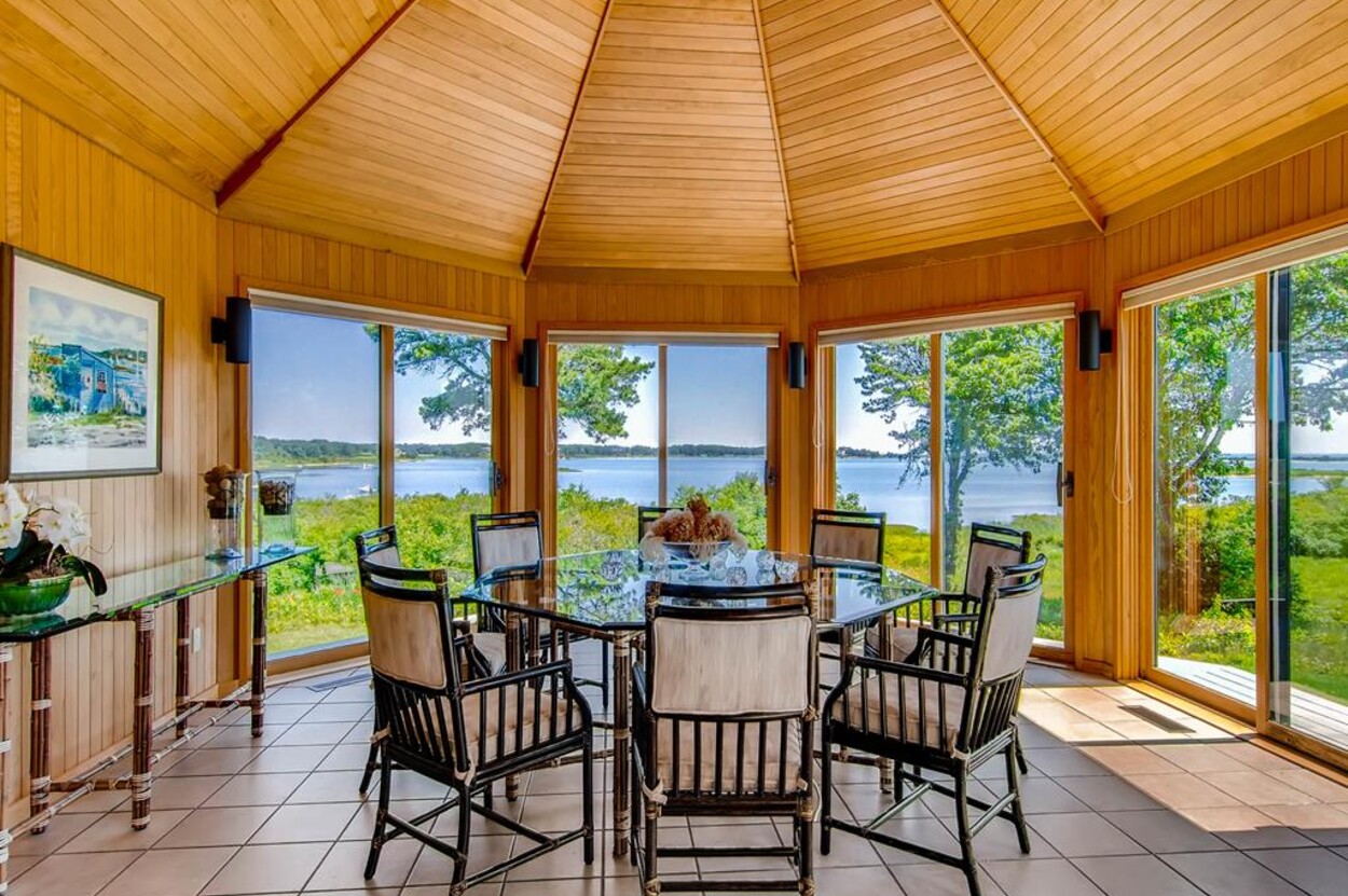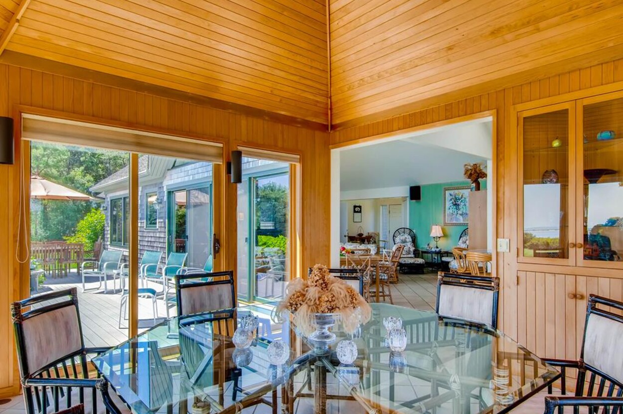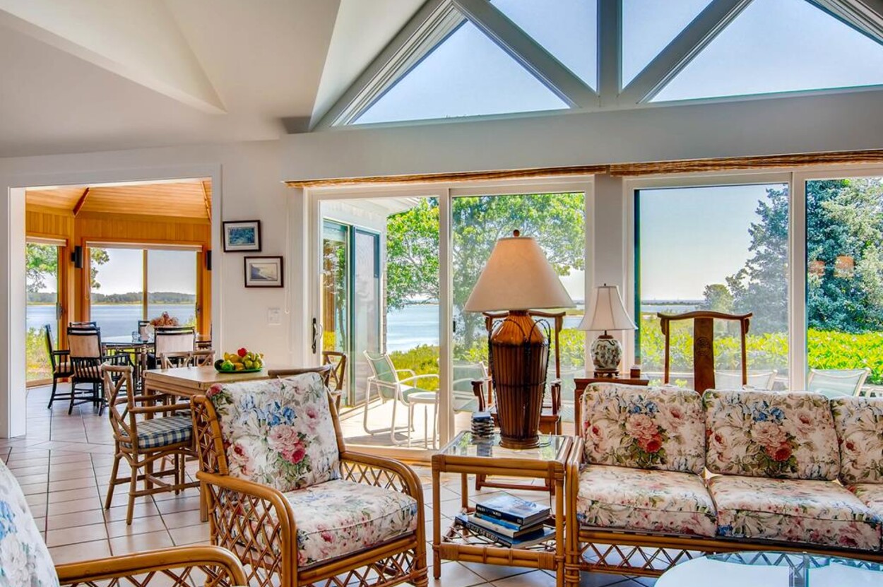 Lovely views of Sengekontacket out to the Sound from this spacious home and attached guest house featuring 6 bedrooms in total. This home has everything your multigeneration family needs for privacy and relaxation. You may take in the 180 degree water views from the glassed in dining room, kick back on one of the many outdoor decks or enjoy a walk down the rolling lawn to paddle across the pond to State Beach. Each bedroom has its own bath and there are multiple family rooms, a private study and a large rec room complete with pool table, card table and much more! All living areas are on the same level except for the lower level game room. Located in a tranquil natural setting, yet convenient to Edgartown and Oak Bluffs, this property really has it all. Weekly cleaning required. *Only accepting minimum 2-week reservations.