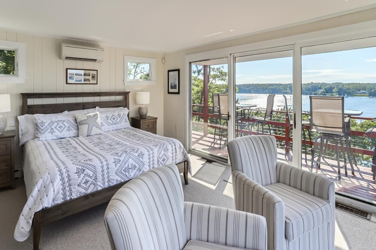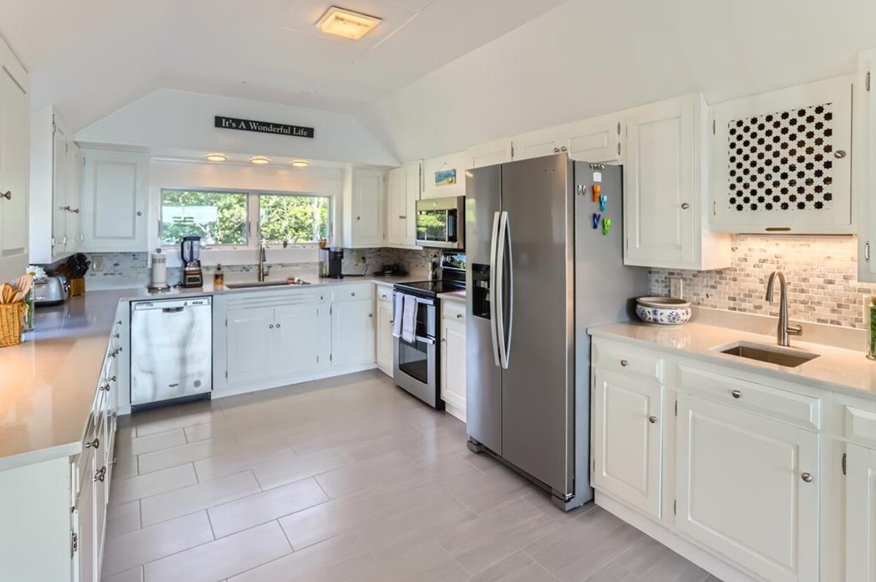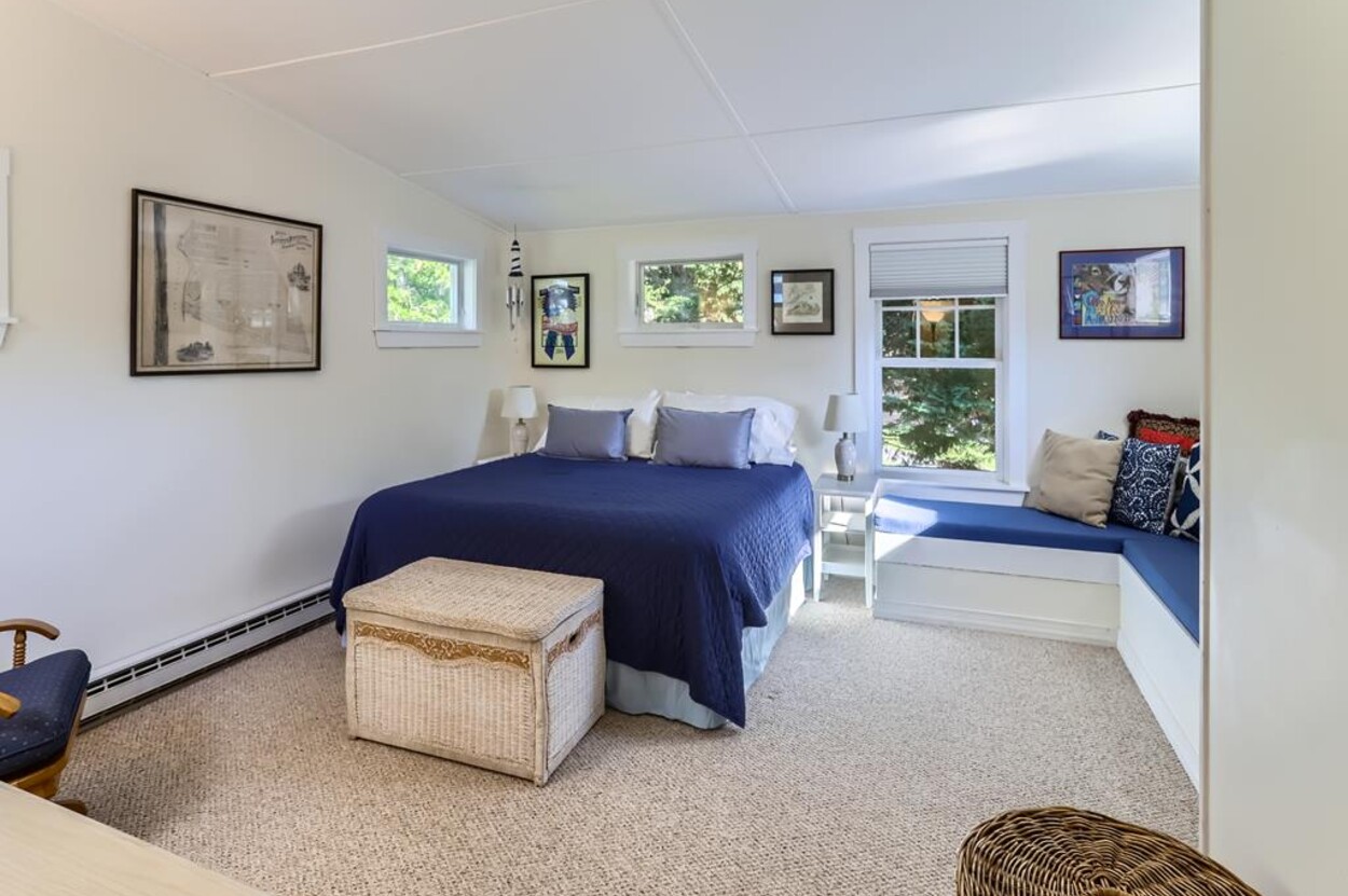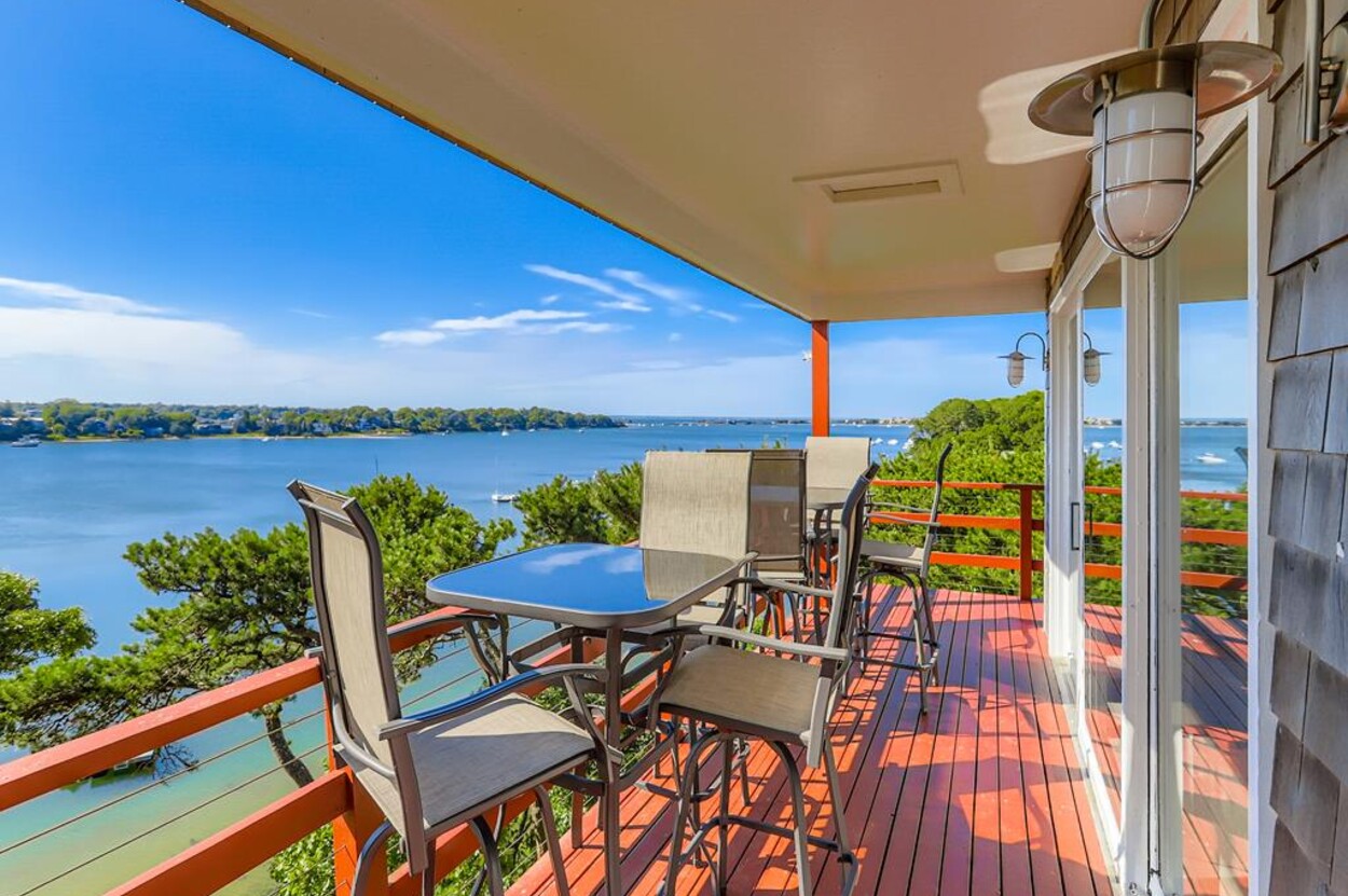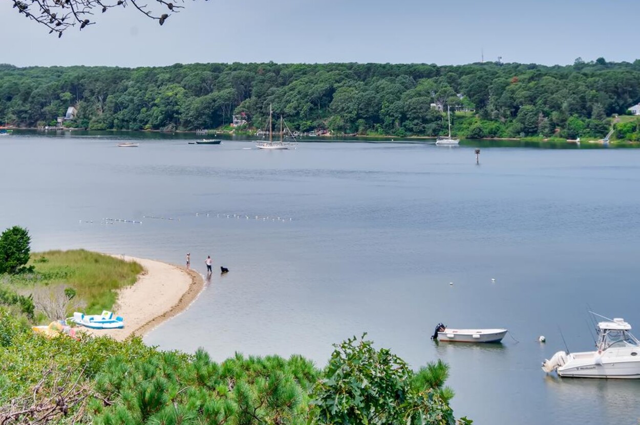 This welcoming air conditioned waterfront house and guest house is privately set with panoramic water views of Lagoon Pond, Hines Point, the draw bridge, Vineyard Sound and Cape Cod. The main house has a generous open layout with substantial living room, dining, and sitting areas that allow for togetherness and/or privacy. The kitchen is huge, while the two screened porches are great for watching the boating and wildlife activity as well as the incredible sunsets. The primary bedroom has floor to ceiling water views that will keep you in bed or tempt you to have breakfast in bed. There is a second lovely bedroom with water views and full bath on this level.