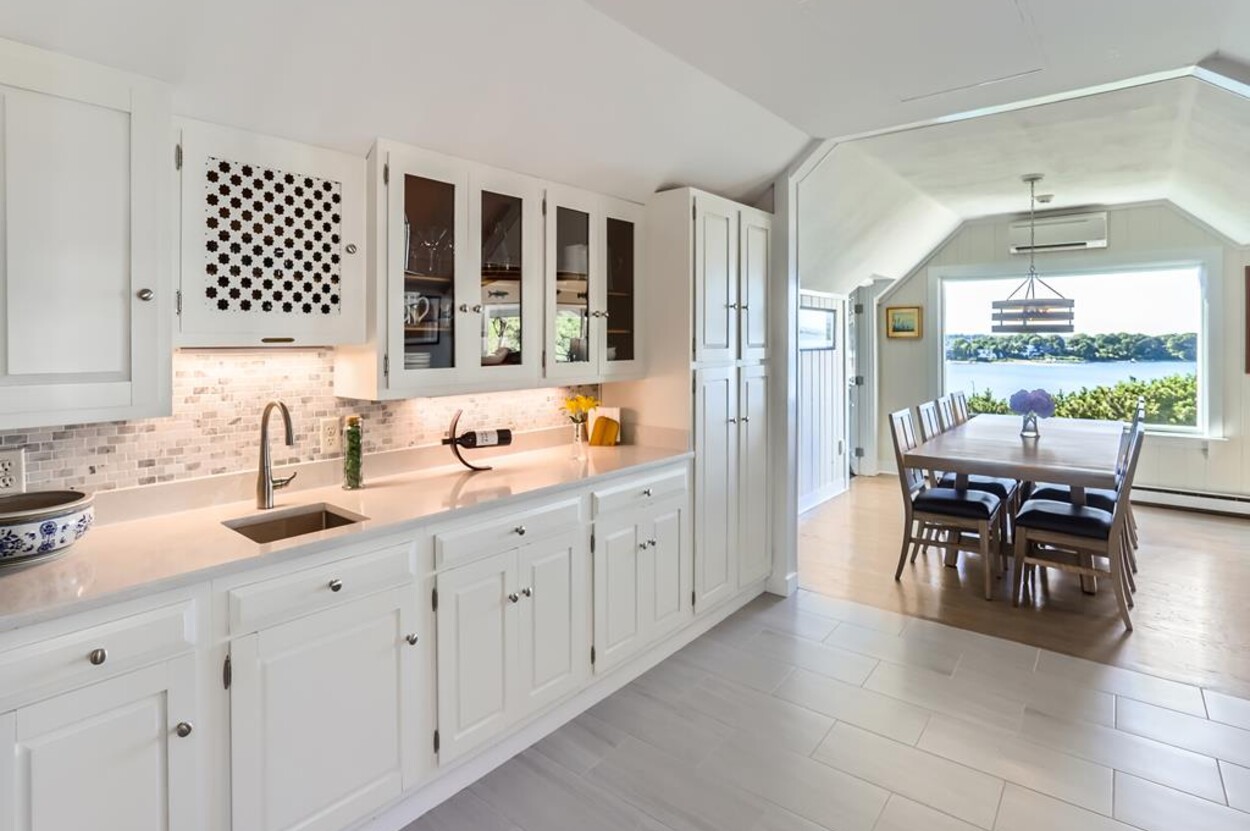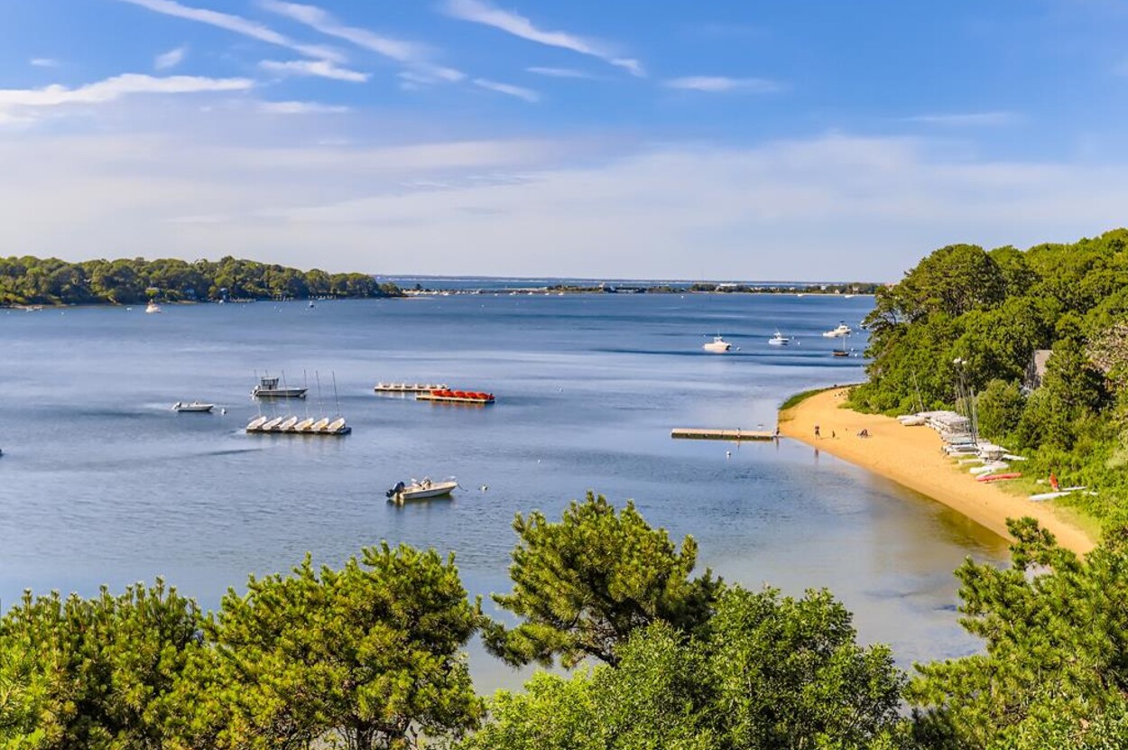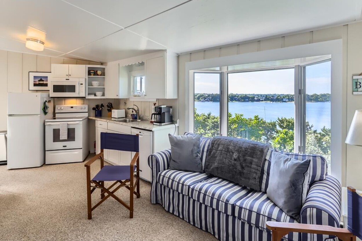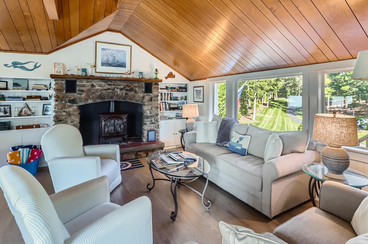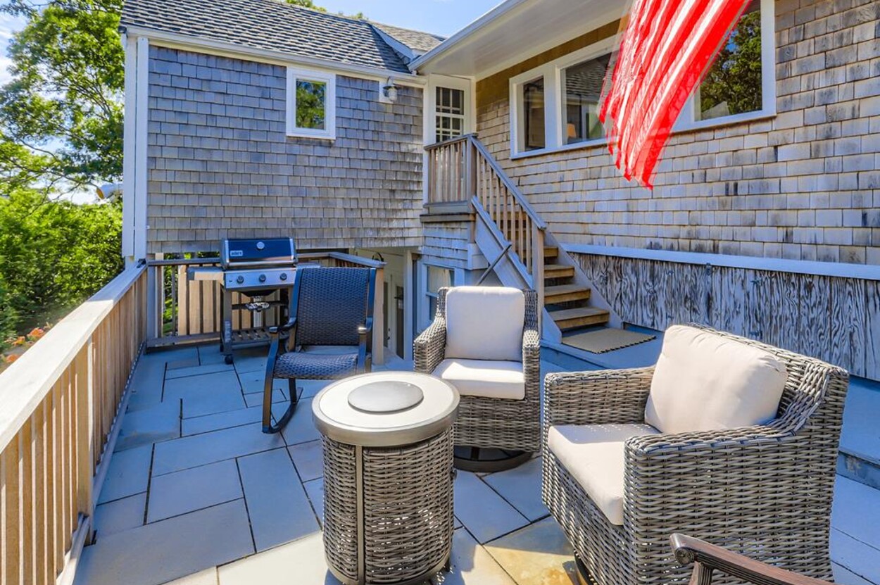 This welcoming air conditioned waterfront house and guest house is privately set with panoramic water views of Lagoon Pond, Hines Point, the draw bridge, Vineyard Sound and Cape Cod. The main house has a generous open layout with substantial living room, dining, and sitting areas that allow for togetherness and/or privacy. The kitchen is huge, while the two screened porches are great for watching the boating and wildlife activity as well as the incredible sunsets. The primary bedroom has floor to ceiling water views that will keep you in bed or tempt you to have breakfast in bed. There is a second lovely bedroom with water views and full bath on this level.