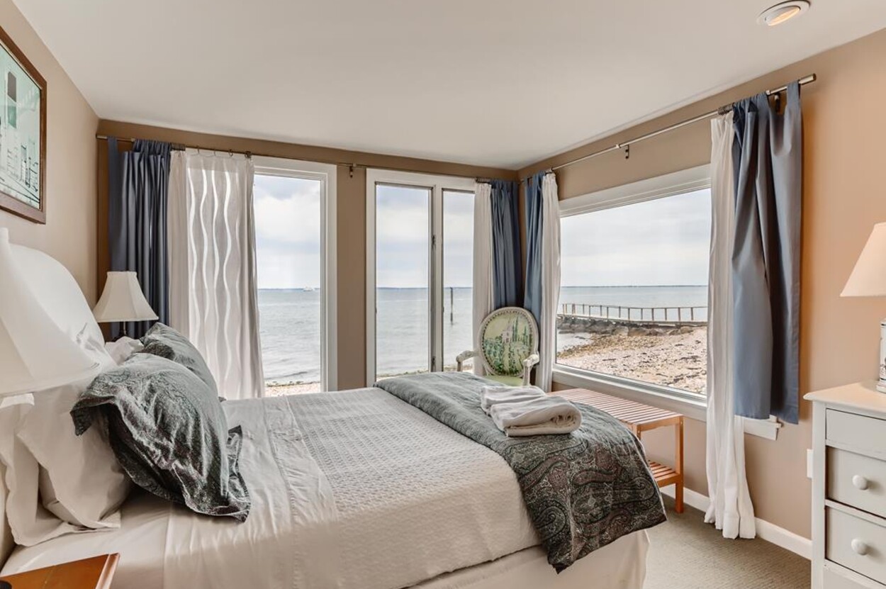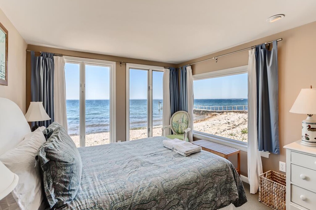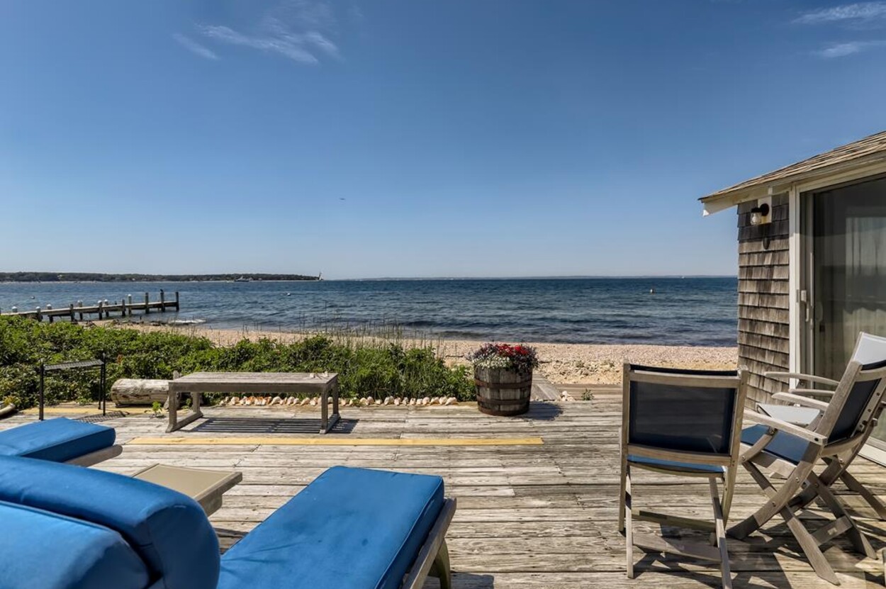 Waterfront paradise with a perfect combination of vintage charm with modern updates and amenities. Primary bedroom suite on the first floor has lovely water views and sliders to sundeck. Guest bedroom with floor to ceiling windows filled with water views. Two upstairs bedrooms are cozy, vintage cottage bedrooms for kids. Renovated kitchen and baths. The primary bedroom and living areas have A/C. The other guest rooms do not have A/C. Expansive sunroom stretching the length of the house overlooks the water with sailing activity and sunsets. Outdoor dining area steps from the beach. Heavenly spot for your get-away! Flexible on turnover day. Please inquire for more details.