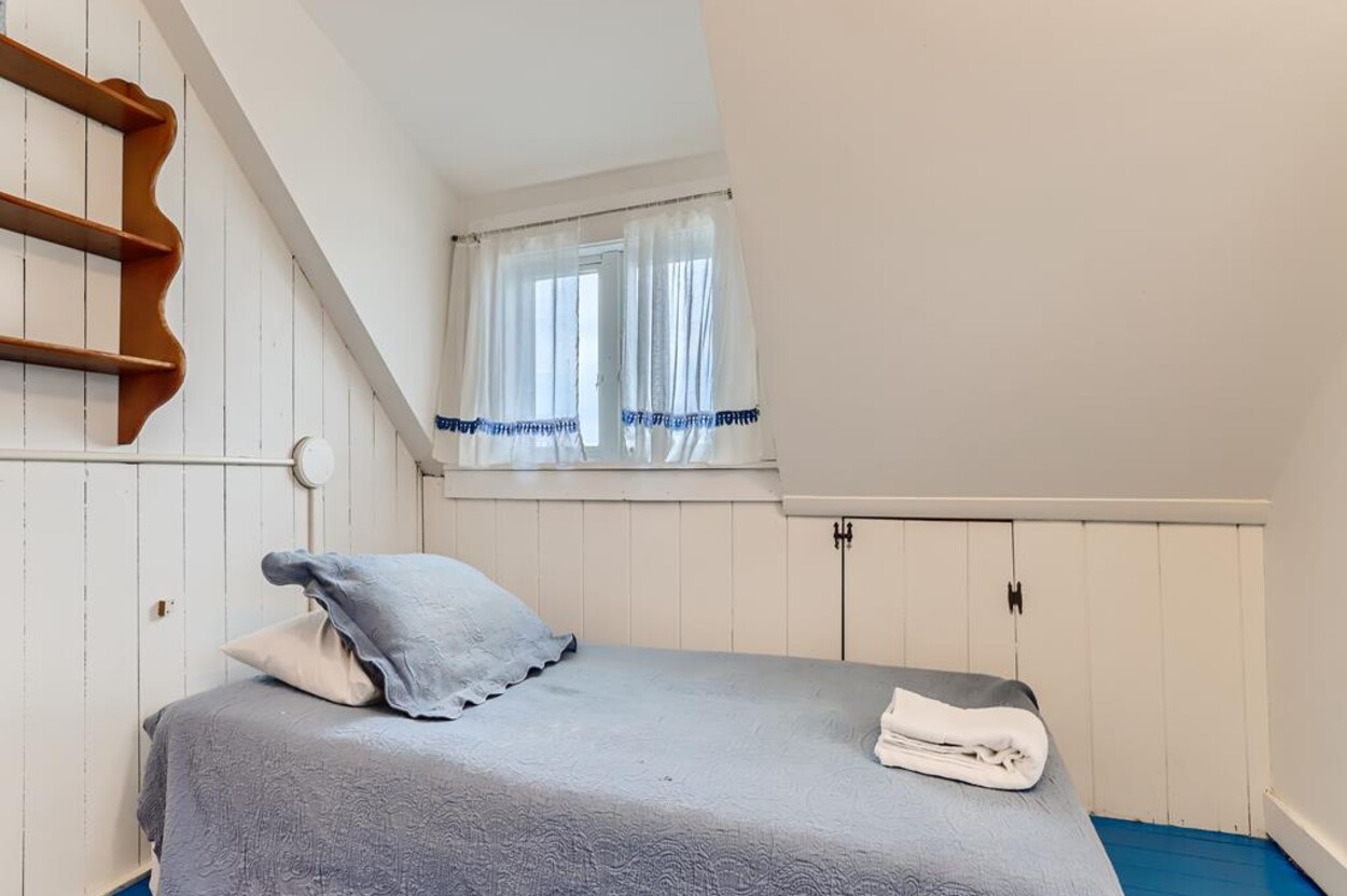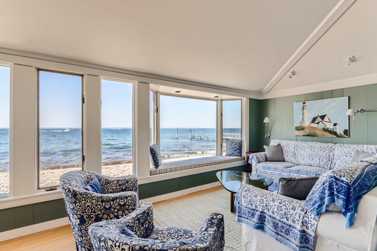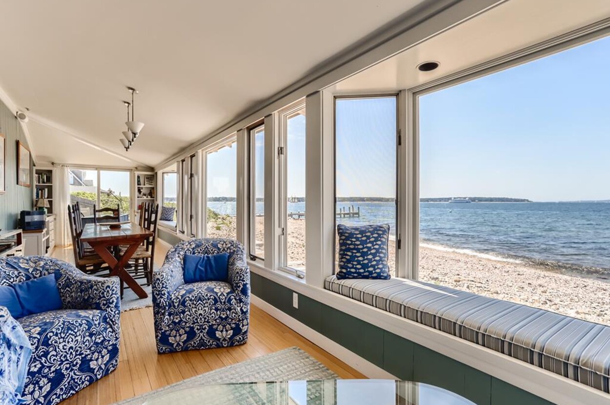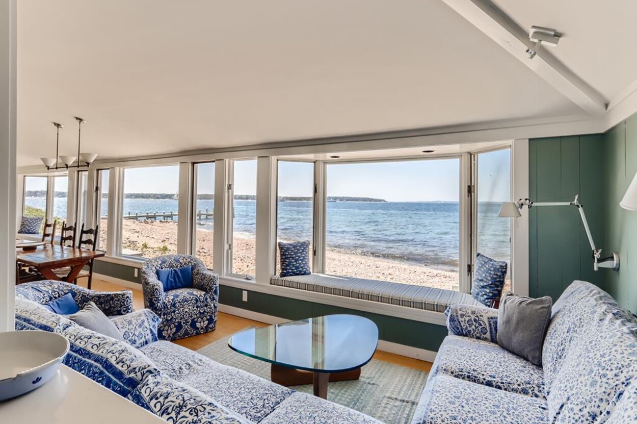 Waterfront paradise with a perfect combination of vintage charm with modern updates and amenities. Primary bedroom suite on the first floor has lovely water views and sliders to sundeck. Guest bedroom with floor to ceiling windows filled with water views. Two upstairs bedrooms are cozy, vintage cottage bedrooms for kids. Renovated kitchen and baths. The primary bedroom and living areas have A/C. The other guest rooms do not have A/C. Expansive sunroom stretching the length of the house overlooks the water with sailing activity and sunsets. Outdoor dining area steps from the beach. Heavenly spot for your get-away! Flexible on turnover day. Please inquire for more details.