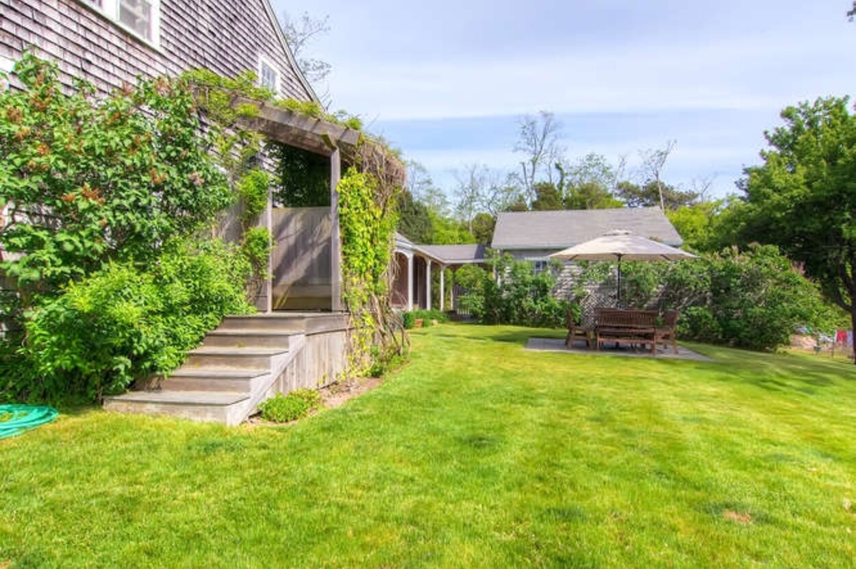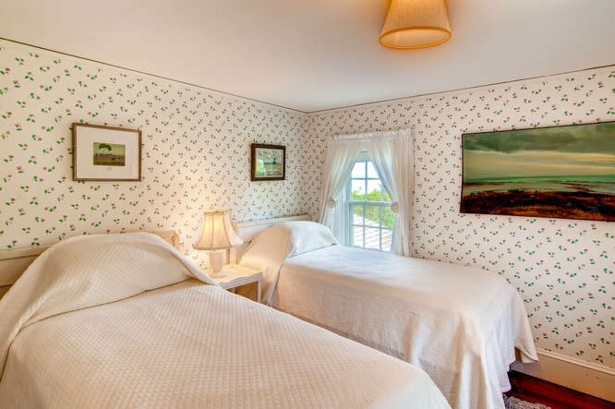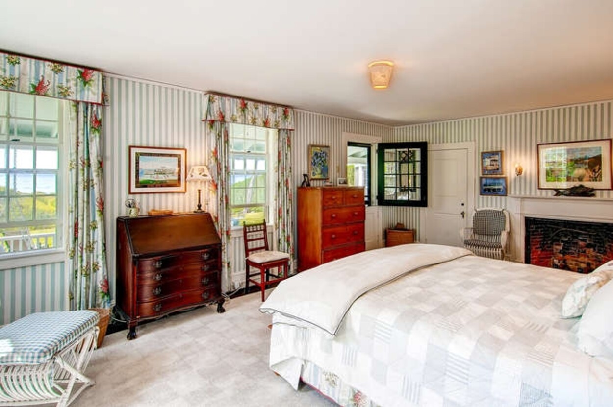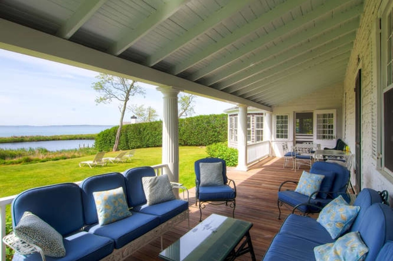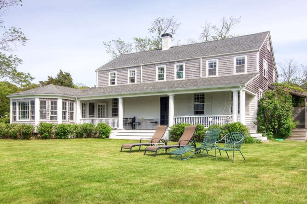 Beachfront property with beautiful views of Vineyard Sound. This spacious and comfortable home is located off of Lambert s Cove Road. With a well equipped kitchen and pantry and living room and dining room (both with fire places), this is an ideal home for family gatherings. The living room opens onto a lovely sun room/sitting room with wicker furniture. The primary bedroom (first floor) has a new primary bath with walk in shower and outdoor shower. There is also a separate guest wing on the main level with two more bedrooms and a shared bath. Upstairs are three additional bedrooms with shared bath room as well as another suite of two bedrooms with shared bath. The latter could function as a second primary suite. Occupancy is capped at 10 with room for occasional guests. There is a garden patio for breakfast dining and a large front porch facing the water. A short path leads you down to your beach on the Vineyard Sound, with safe easy swimming and gorgeous sunsets.