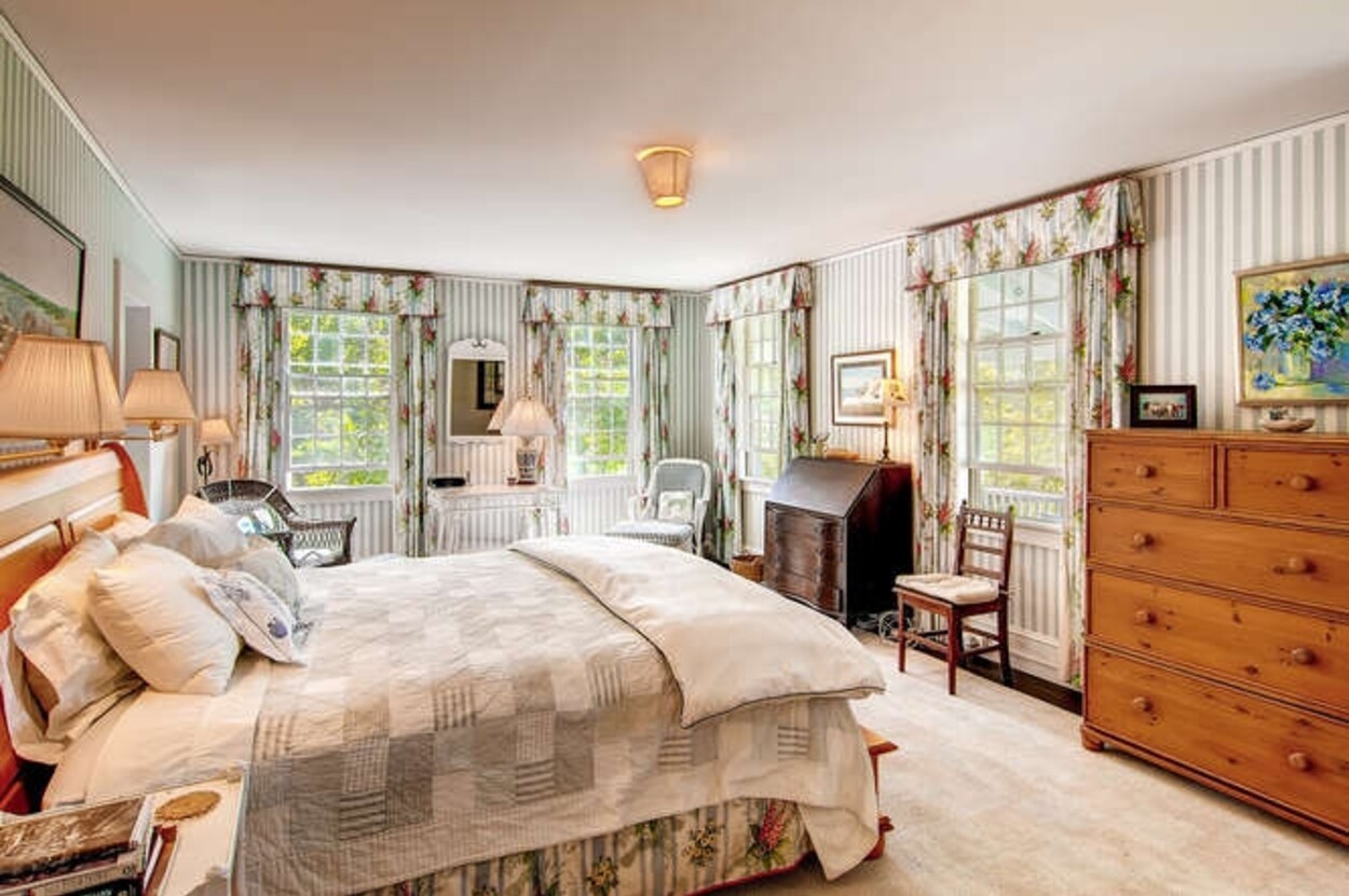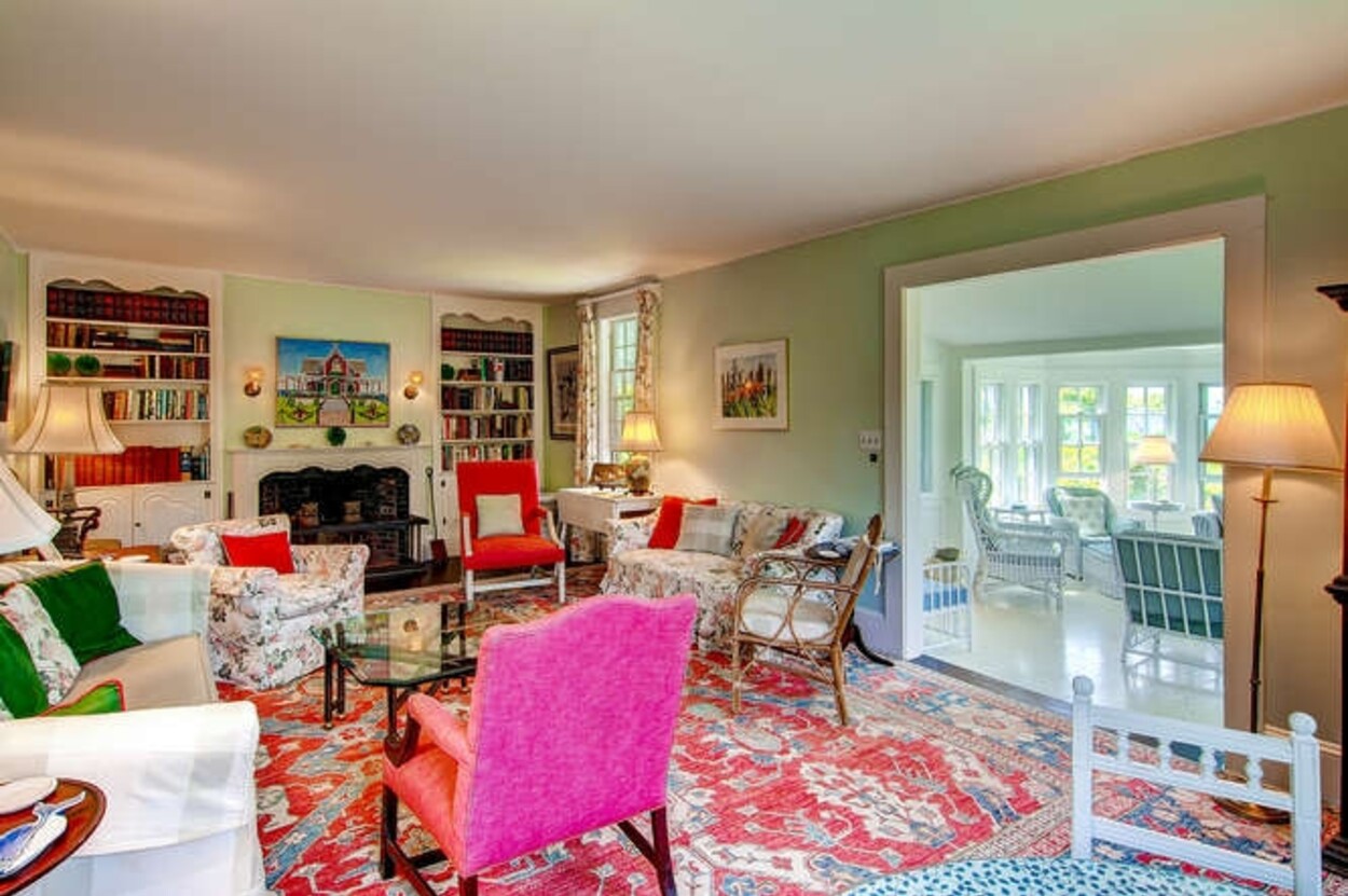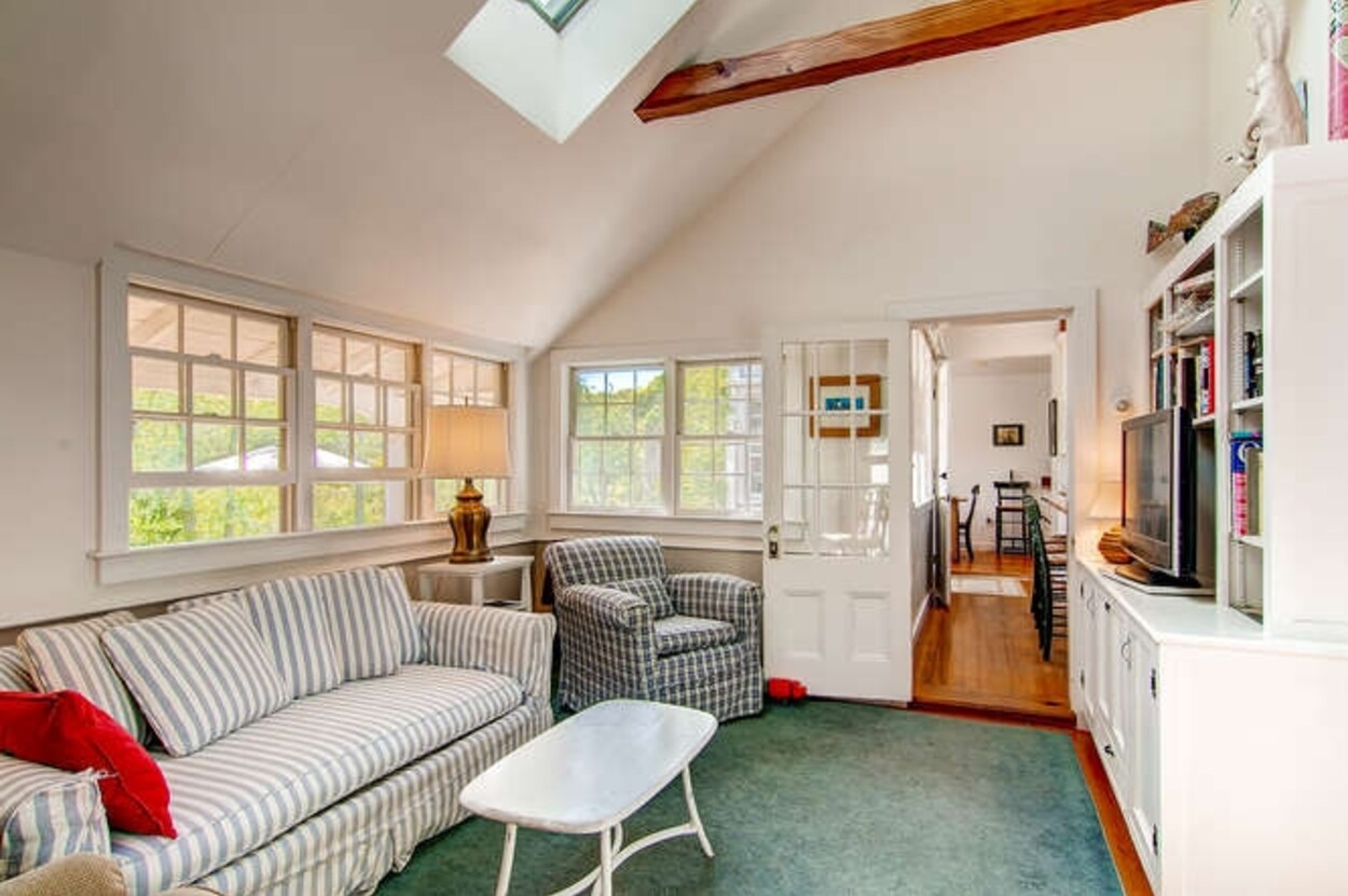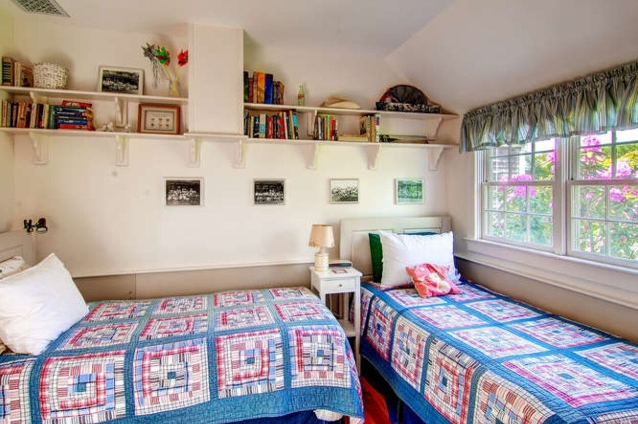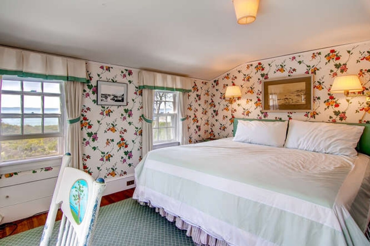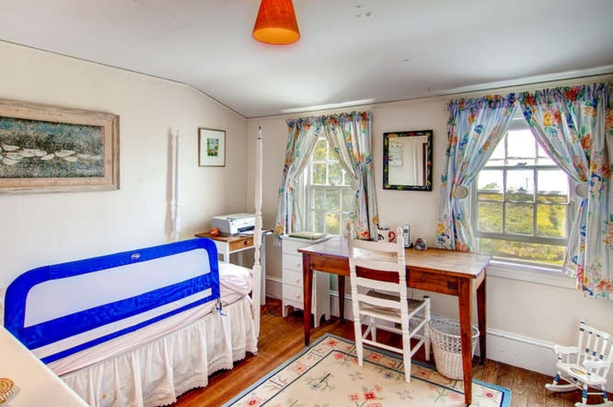 Beachfront property with beautiful views of Vineyard Sound. This spacious and comfortable home is located off of Lambert s Cove Road. With a well equipped kitchen and pantry and living room and dining room (both with fire places), this is an ideal home for family gatherings. The living room opens onto a lovely sun room/sitting room with wicker furniture. The primary bedroom (first floor) has a new primary bath with walk in shower and outdoor shower. There is also a separate guest wing on the main level with two more bedrooms and a shared bath. Upstairs are three additional bedrooms with shared bath room as well as another suite of two bedrooms with shared bath. The latter could function as a second primary suite. Occupancy is capped at 10 with room for occasional guests. There is a garden patio for breakfast dining and a large front porch facing the water. A short path leads you down to your beach on the Vineyard Sound, with safe easy swimming and gorgeous sunsets.