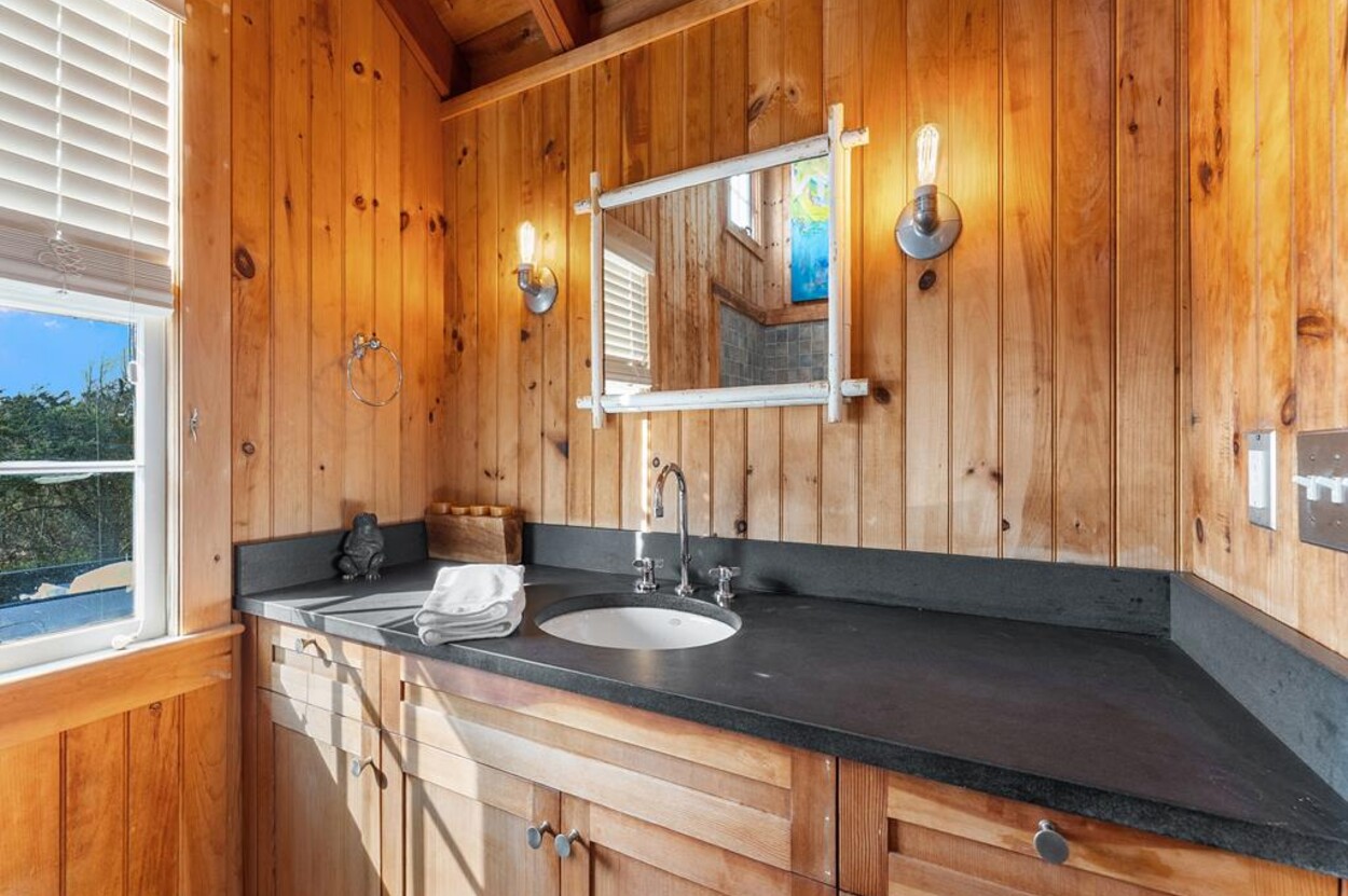With its laid-back vibe and coastal decor, the home is perfect for kicking back and enjoying island life. Step outside to discover a beautiful, private beach that feels like a hidden gem, where gentle waves and endless ocean views provide a true escape.