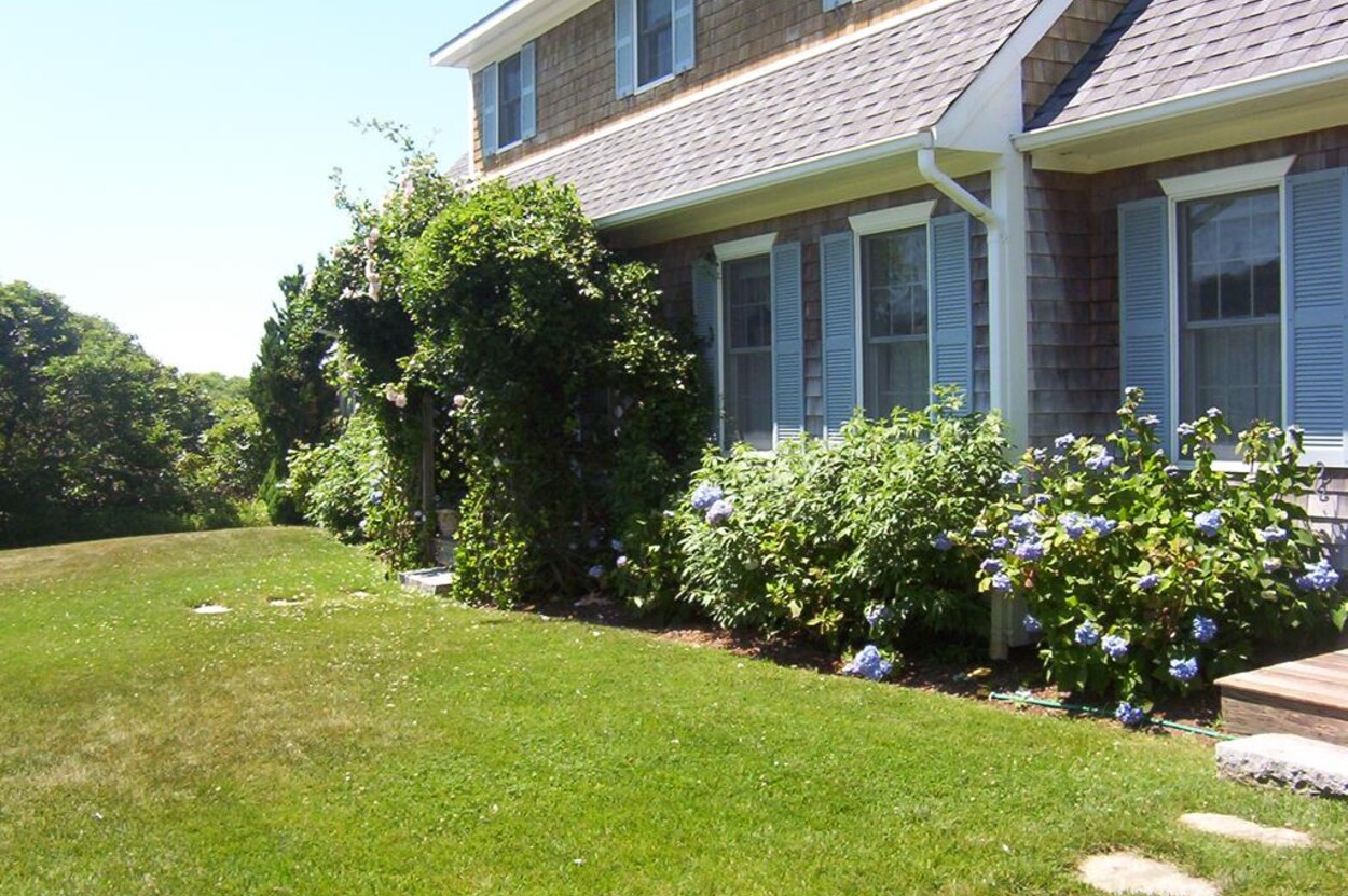 and beautiful potted plants and arrangements complete the setting. Second floor: smaller primary Queen bedroom with private bath; two twin bedrooms; a children’s bedroom with one twin and one large bedroom with King bed. Additional hall bathroom serves these bedrooms. Beautiful waterviews from Rhode Island up to the end of the Cape can be enjoyed from these three waterview facing bedrooms. Outdoor shower, first floor half bath & separate laundry room allow additional, convenient showering
