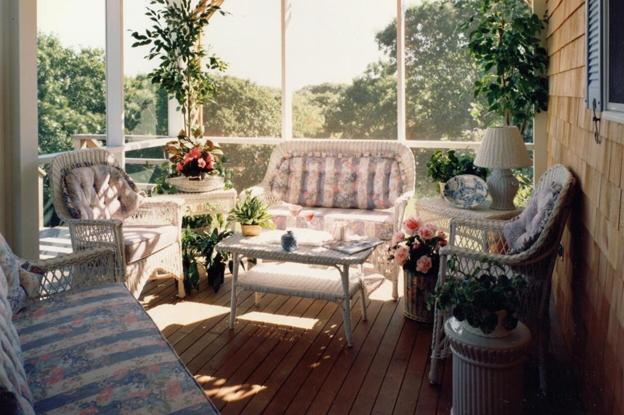 vintage yet contemporary cape with open plan living. The outdoor deck extends the full length of the house & the umbrella table seats 10 to 12. The screened porch is done in white wicker and chintz. Lovely outdoor furniture