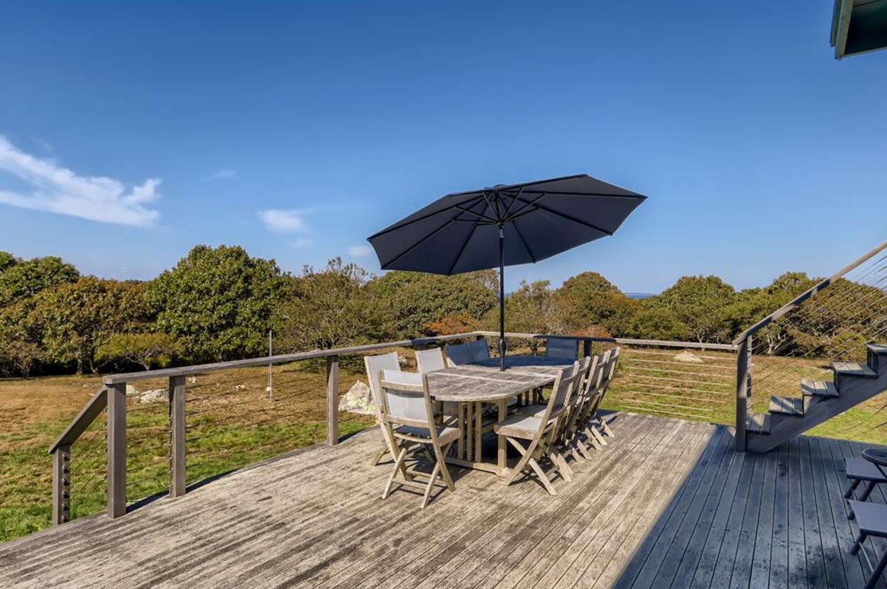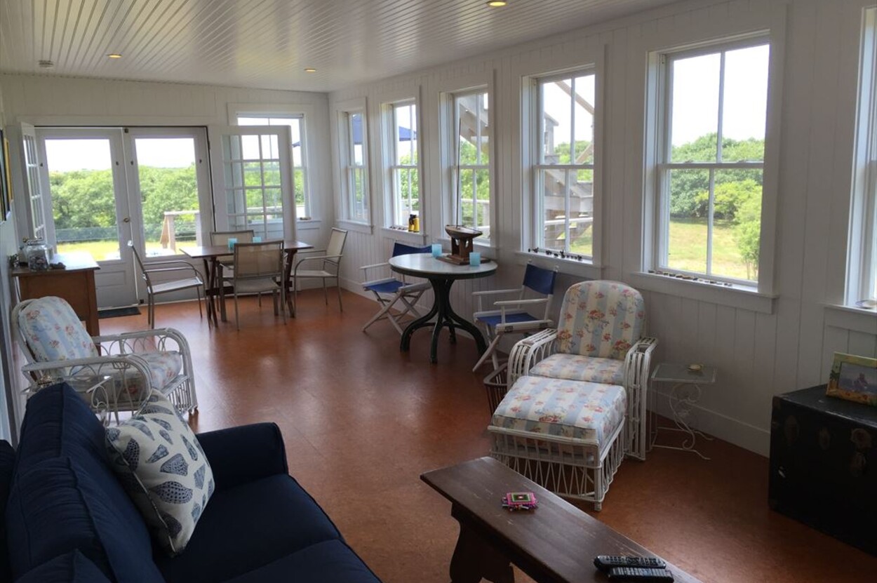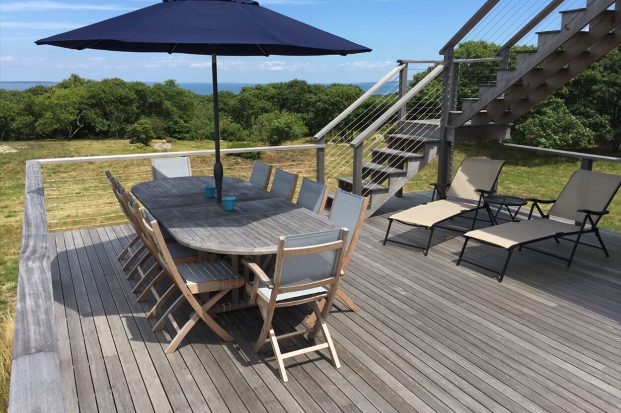 Spacious and comfortable beach cottage on two secluded acres in prime Aquinnah location, with quintessential MV character and charm. Perched on a hill with 180 degree views of Vineyard Sound and the Elizabeth Islands, from Menemsha to the Gay Head light house. Awe inspiring Aquinnah sunsets!! Enjoy the panoramic view from the windowed great room, the spacious lower deck, or the roof deck for an unparalleled experience!! Just minutes from the cliffs, Philbin Beach, Lobsterville Beach, and West Basin.