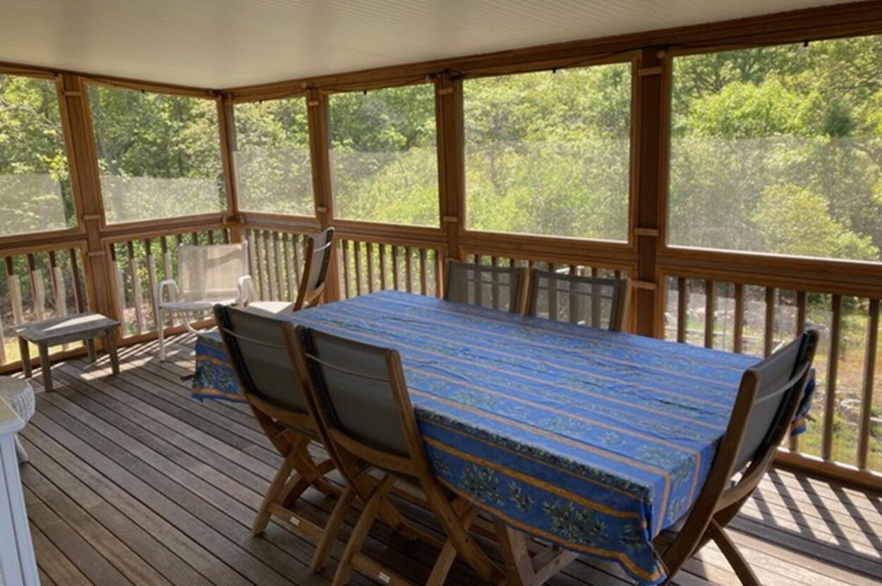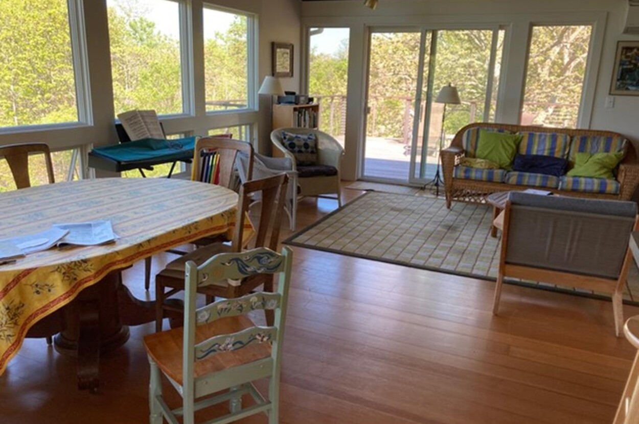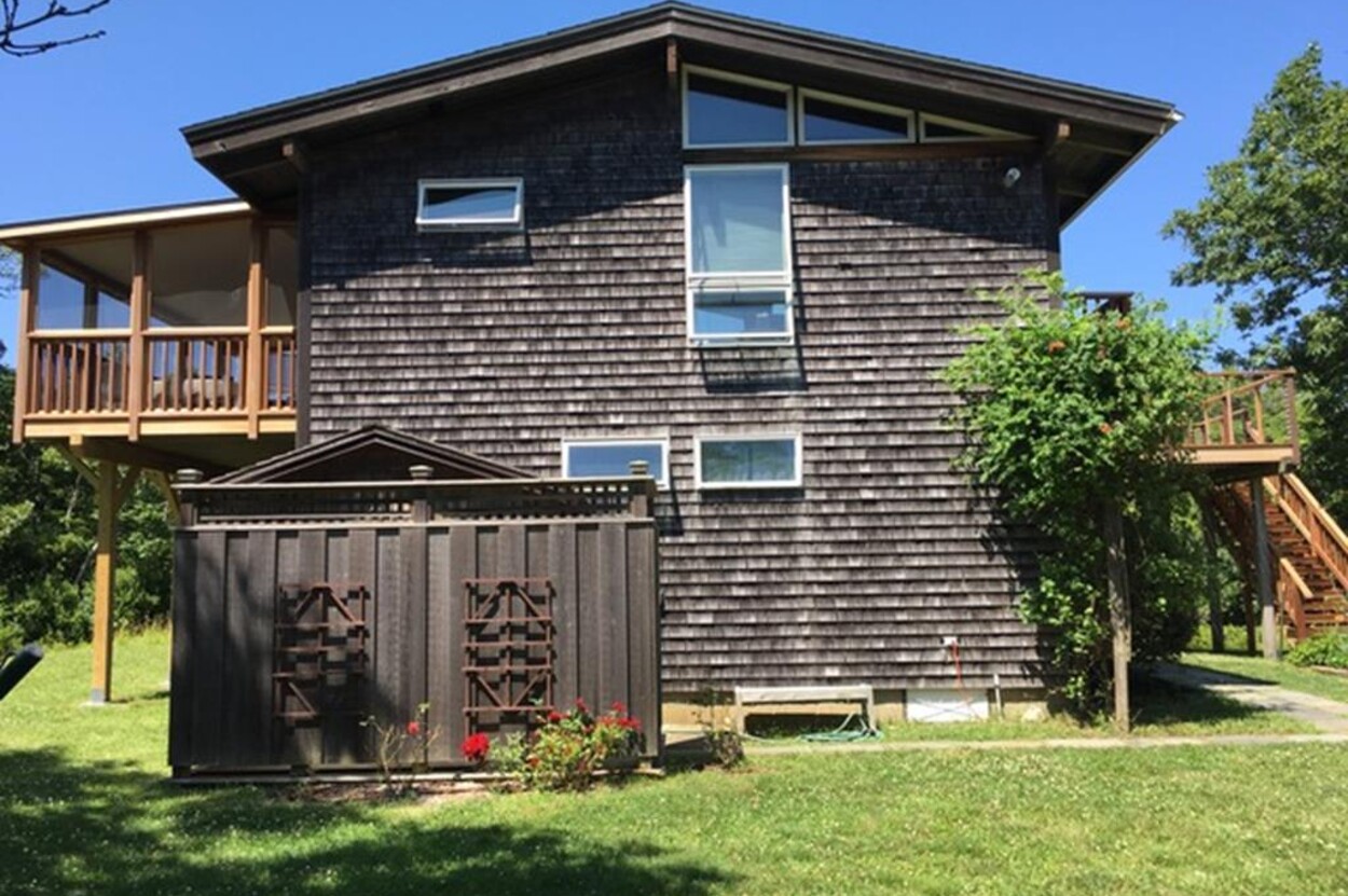 Experience the privacy of this classic Aquinnah home, situated in a secluded wooded setting with views of the North Shore beach. This four-bedroom, two-bathroom residence is ideal for those seeking a quiet Vineyard getaway surrounded by natural beauty.The home features a functional reverse layout, designed to elevate the living spaces and maximize the coastal views. For modern comfort, the house is equipped with mini-split air conditioning. The property itself offers a true outdoor lifestyle. Enjoy the essential Vineyard experience of a refreshing outdoor shower after a day at the beach, tend to the on-site vegetable garden, or spend time overlooking the small pond in the backyard. Whether you are relaxing on the deck overlooking the Vineyard Sound or exploring the surrounding trails, this property offers a simple and comfortable environment for easy summer living.