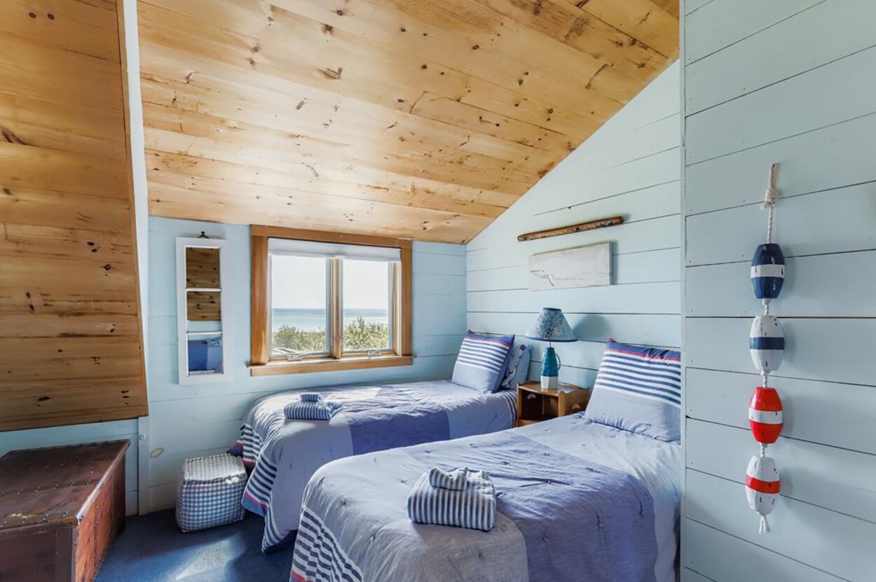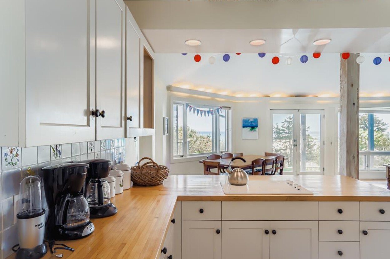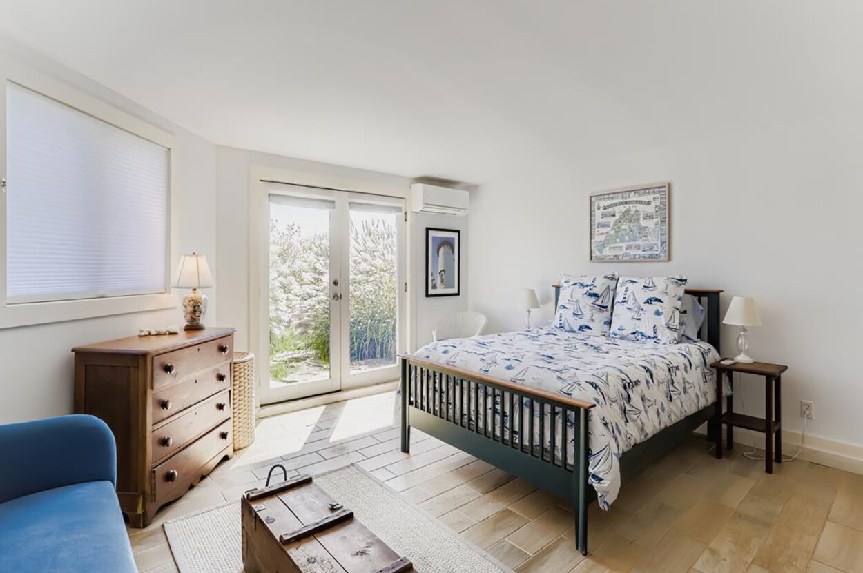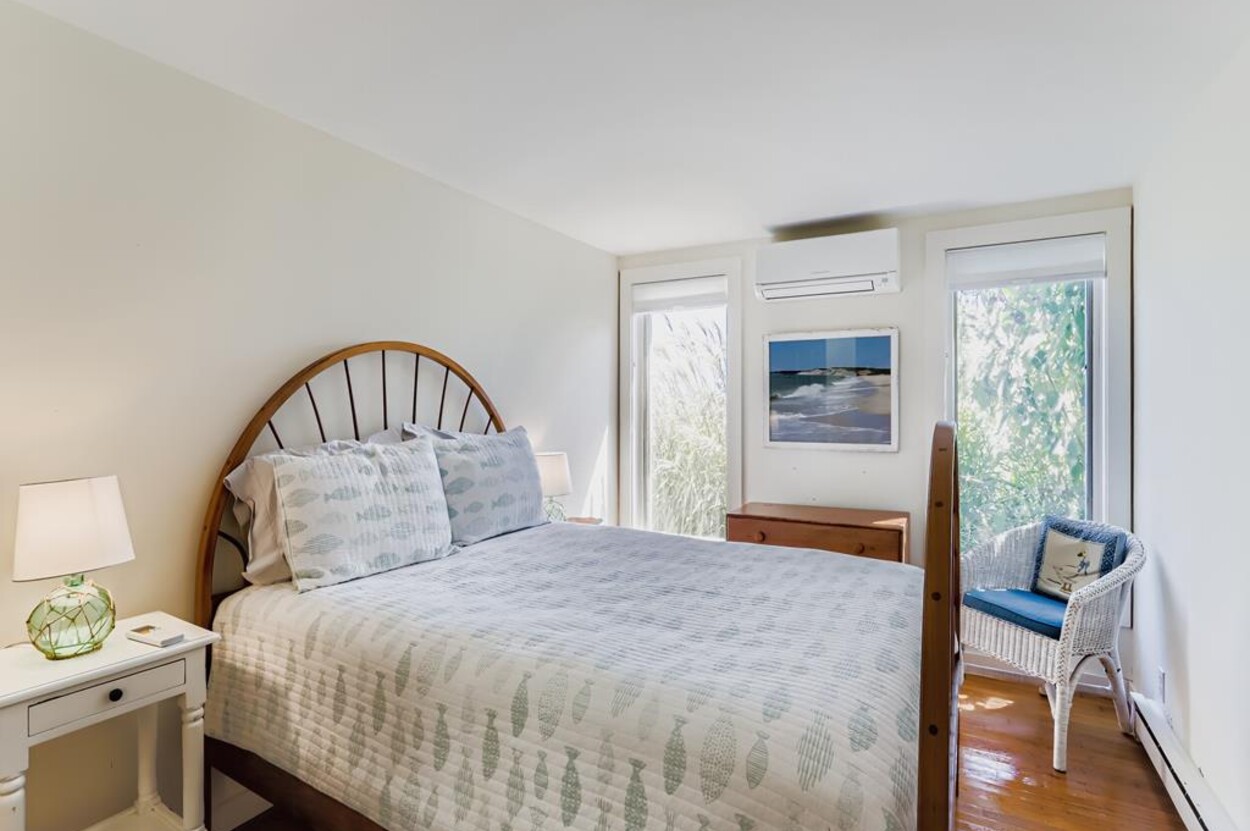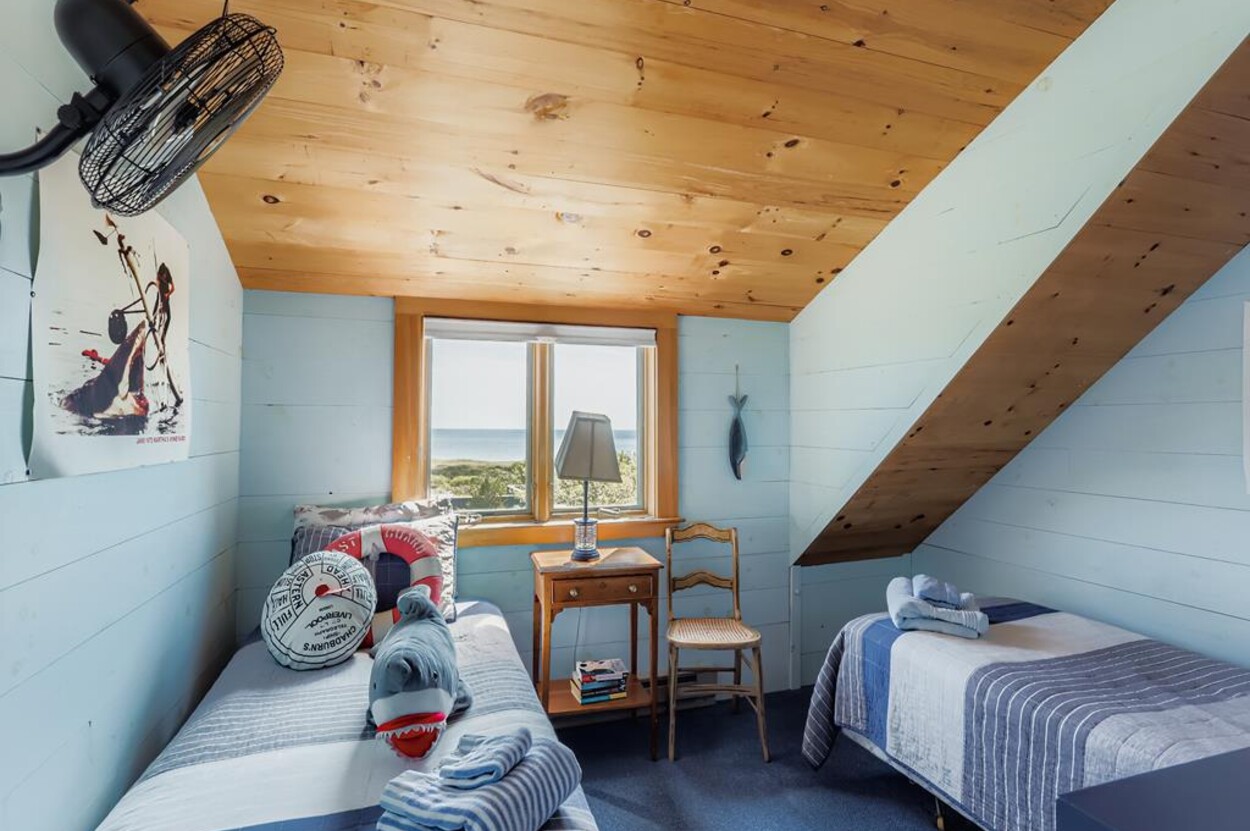 This beautiful, private and spacious home is set on a hill just over the dunes on the South Shore. With terrific views of the Atlantic Ocean from almost every room, and just a short walk to a private beach, this 6 bedroom and 6 bathroom house, with a wonderful living room, and AC is ideal for a family. Including the two separate kitchens and a well laid out floor plan, there is plenty of room and privacy for guests. The decks, extending the entire front of the house, landscaped backyard, and expansive views of the Ocean provide a lovely setting for this special home. Beach access is a delightful walk down to the beach wading thru Doctors Creek. Ask about wifi.