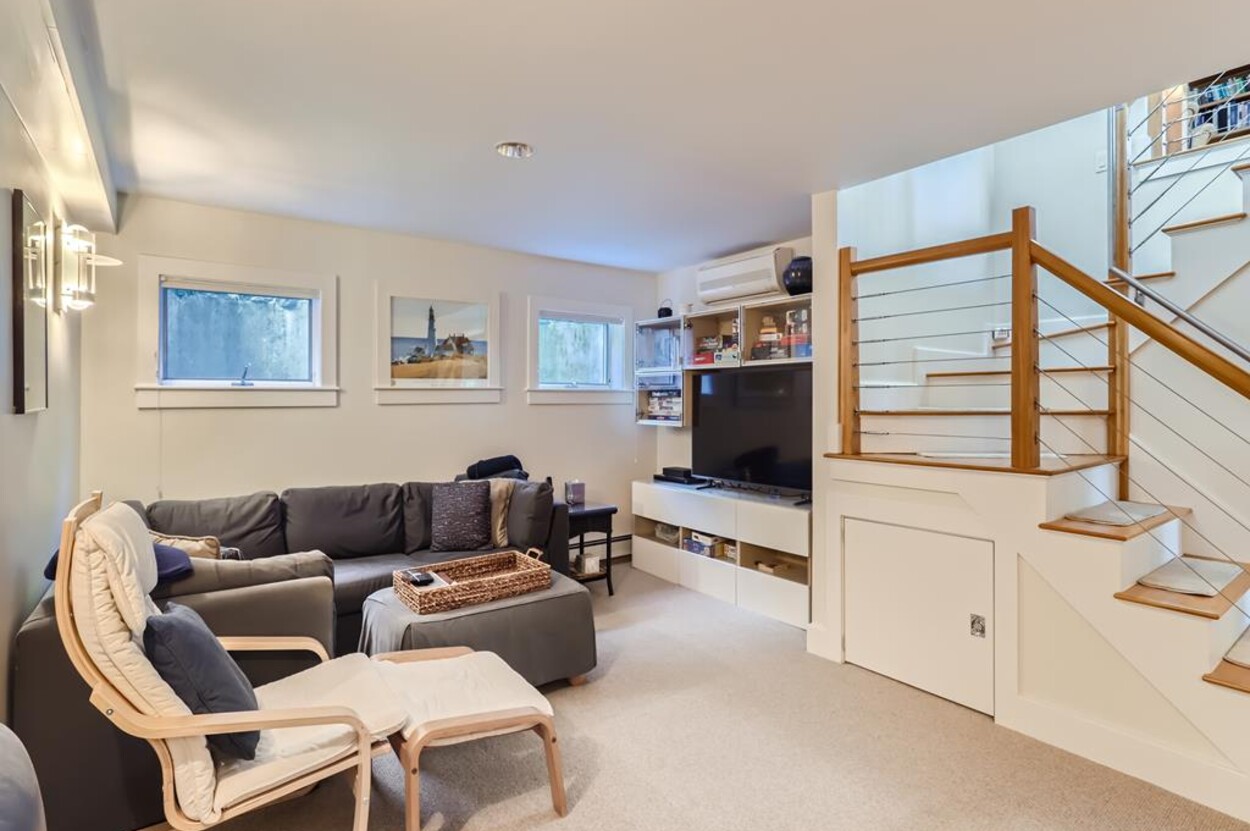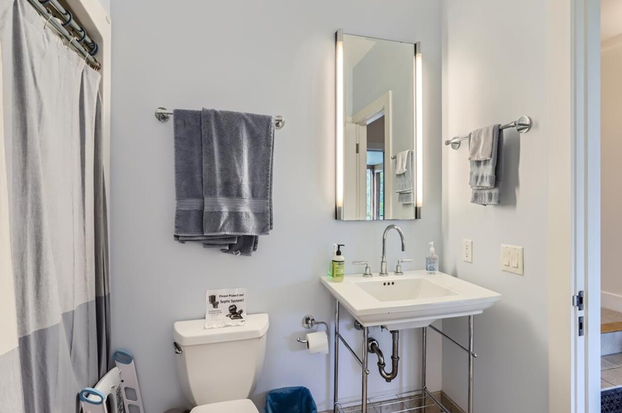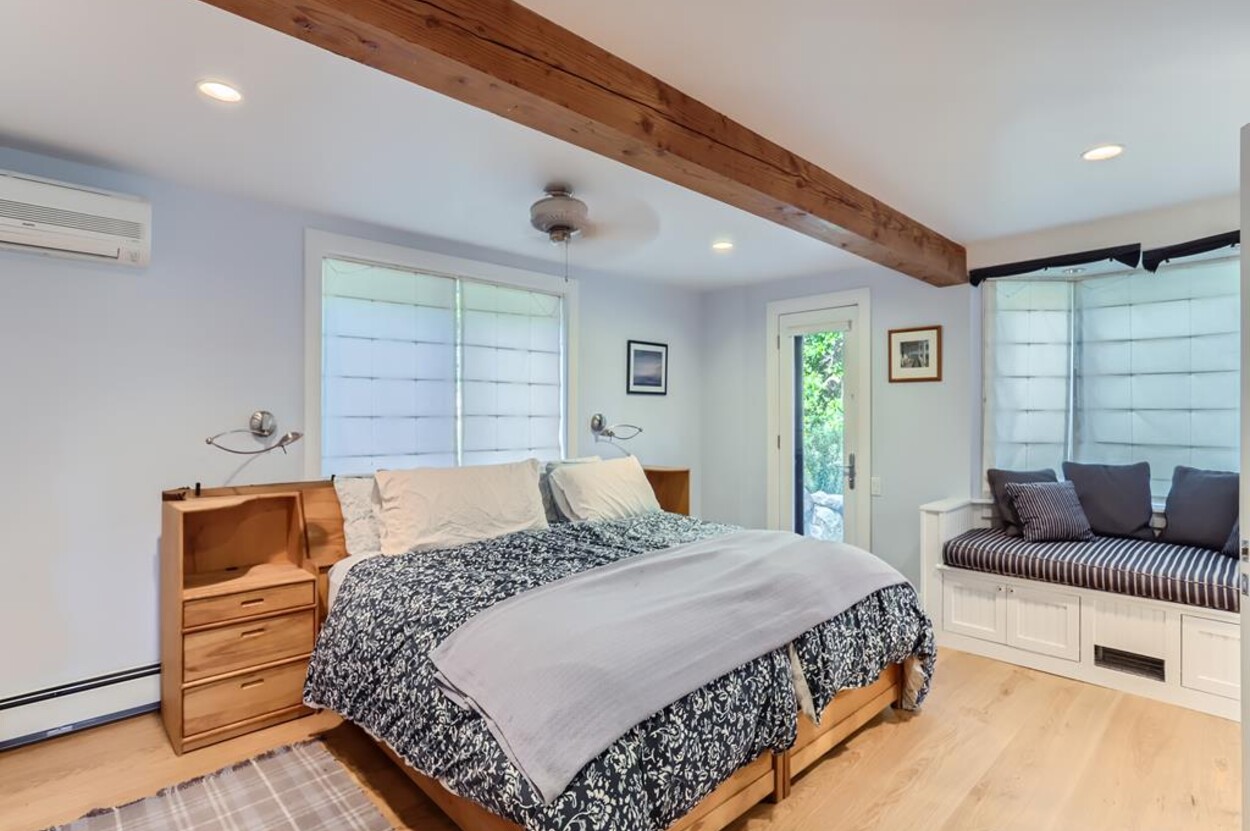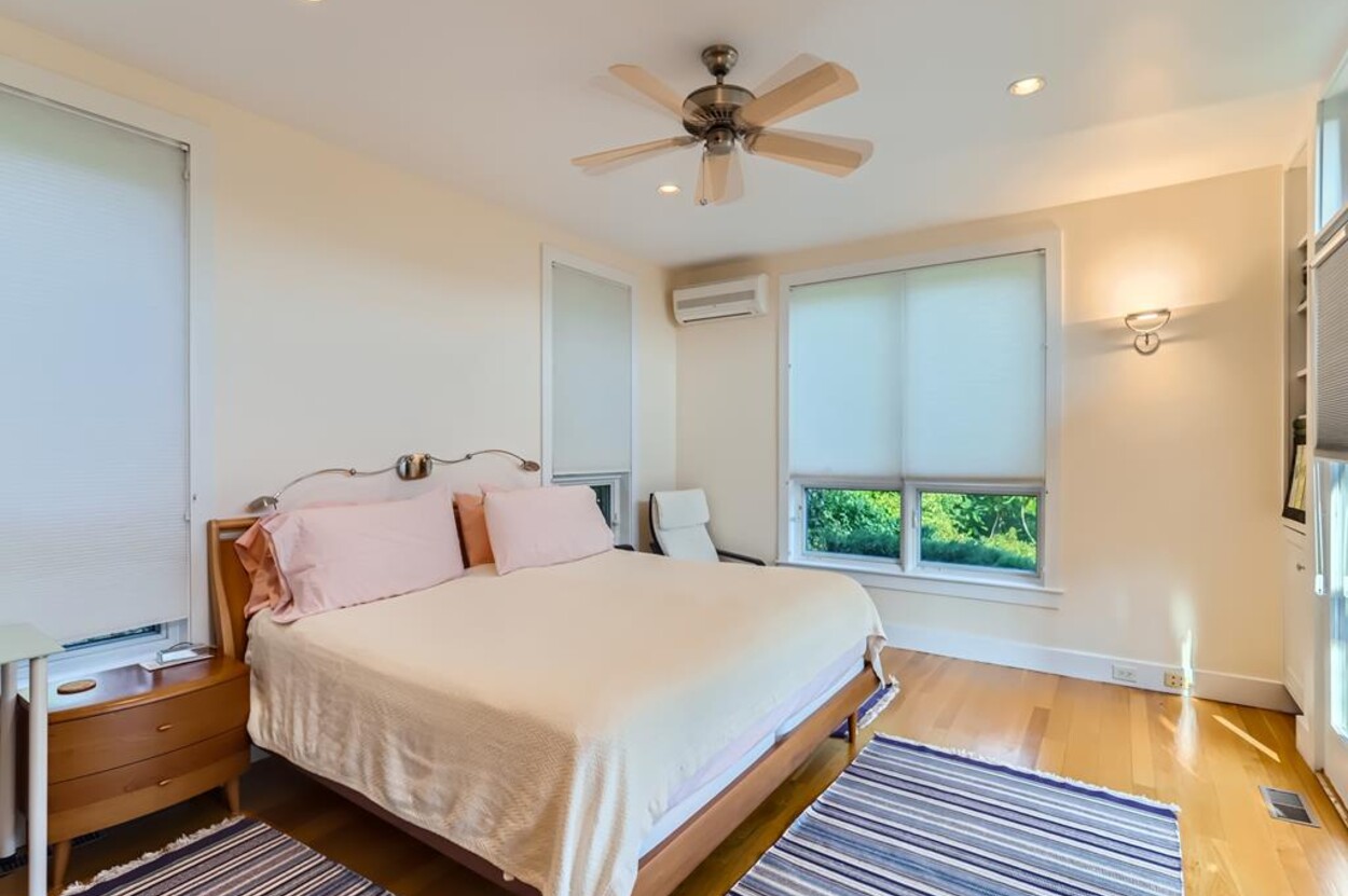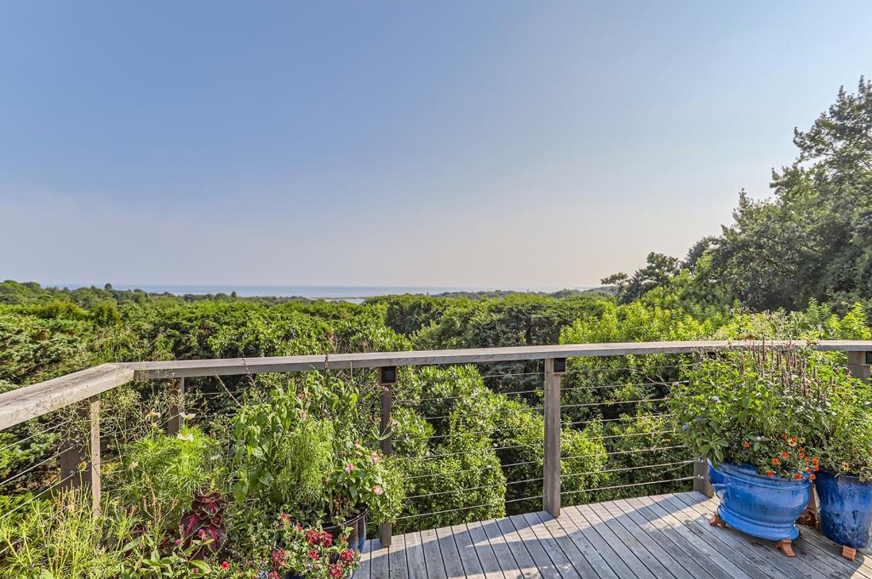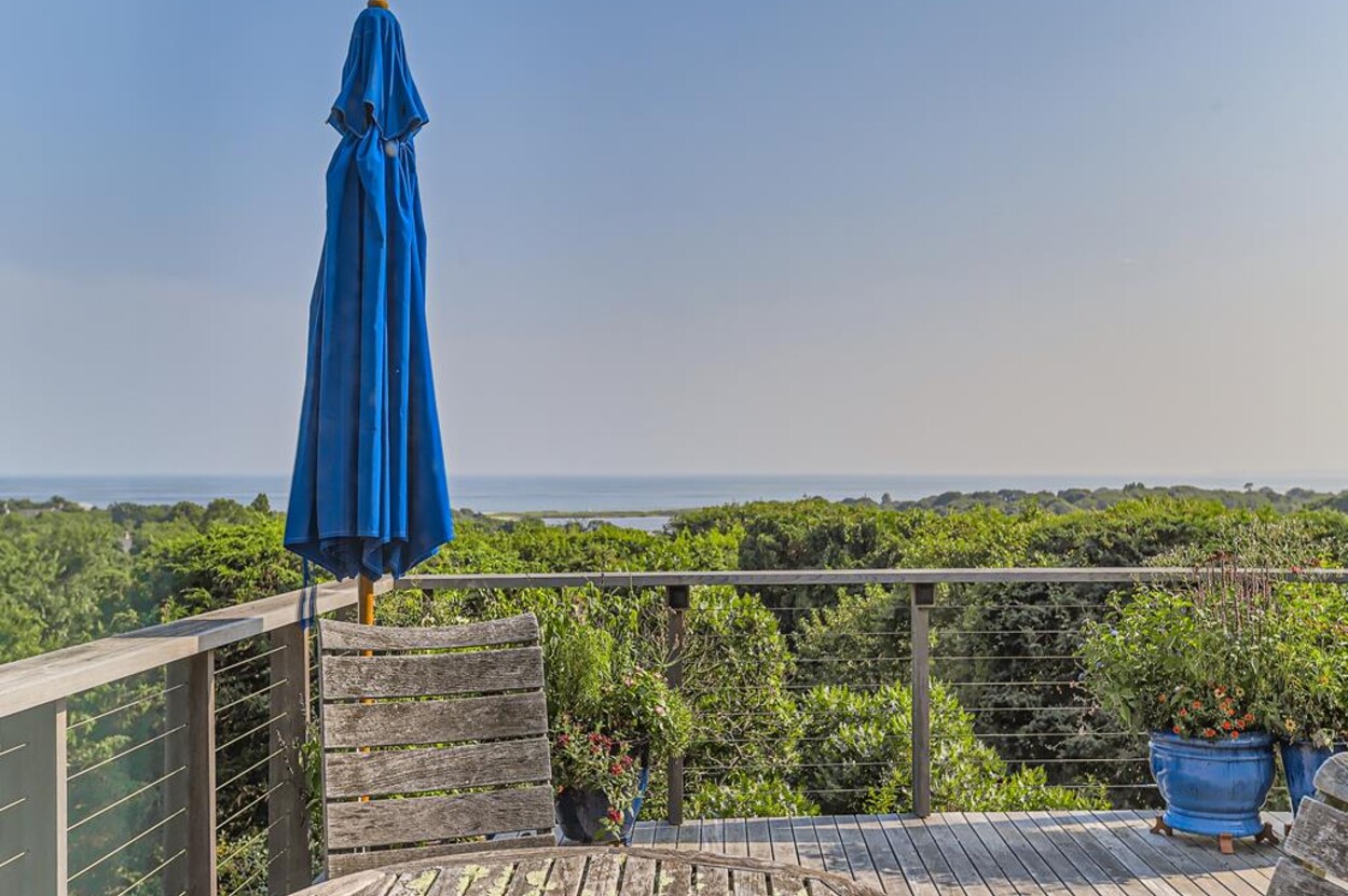 Sophisticated, well appointed contemporary home with expansive ocean views and its own private tennis courts. Beautifully designed spacious open floor plan with gourmet kitchen (wolf stove, marble countertops), living room,dining room all overlooking the treetops and the Atlantic Ocean. High ceilings with exposed wood beams, wood floors, many windows, tastefully furnished with modern furniture, screened porch, patio, outside shower and herb garden. Central AC upstairs and mini splits in the downstairs rooms. Outside EV charging connection available. No smoking and no pets permitted. 2 week rental per season only