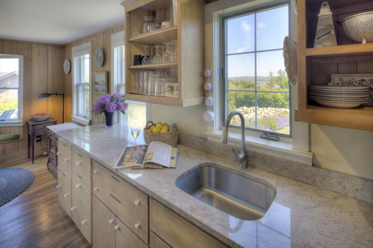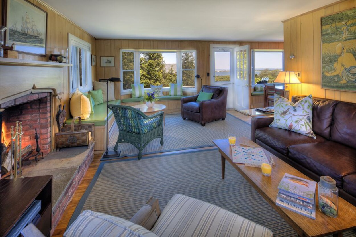 Loveys Cottage - This guest cottage is wheelchair accessible--bath & sofa bed on ground floor. Very simple but smart layout with comfortable living room with fireplace. Windows and deck that overlook stonewalls and rolling hills on out to Menemsha Pond. This is a special setting. Rental includes access to two private association beaches...Short Beach on Menemsha Pond and Hancock Beach on the ocean....as well as Chilmark town beaches.