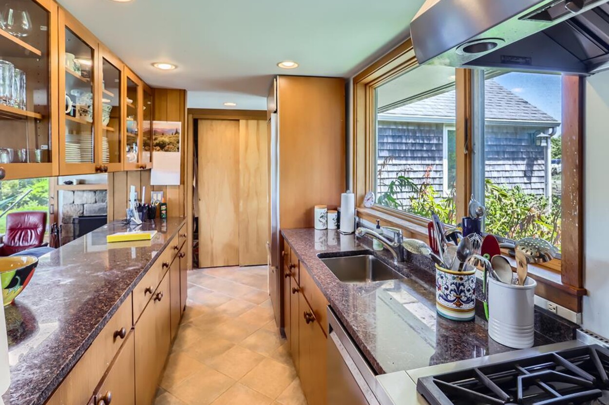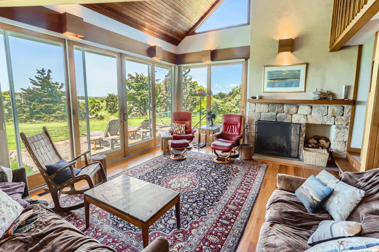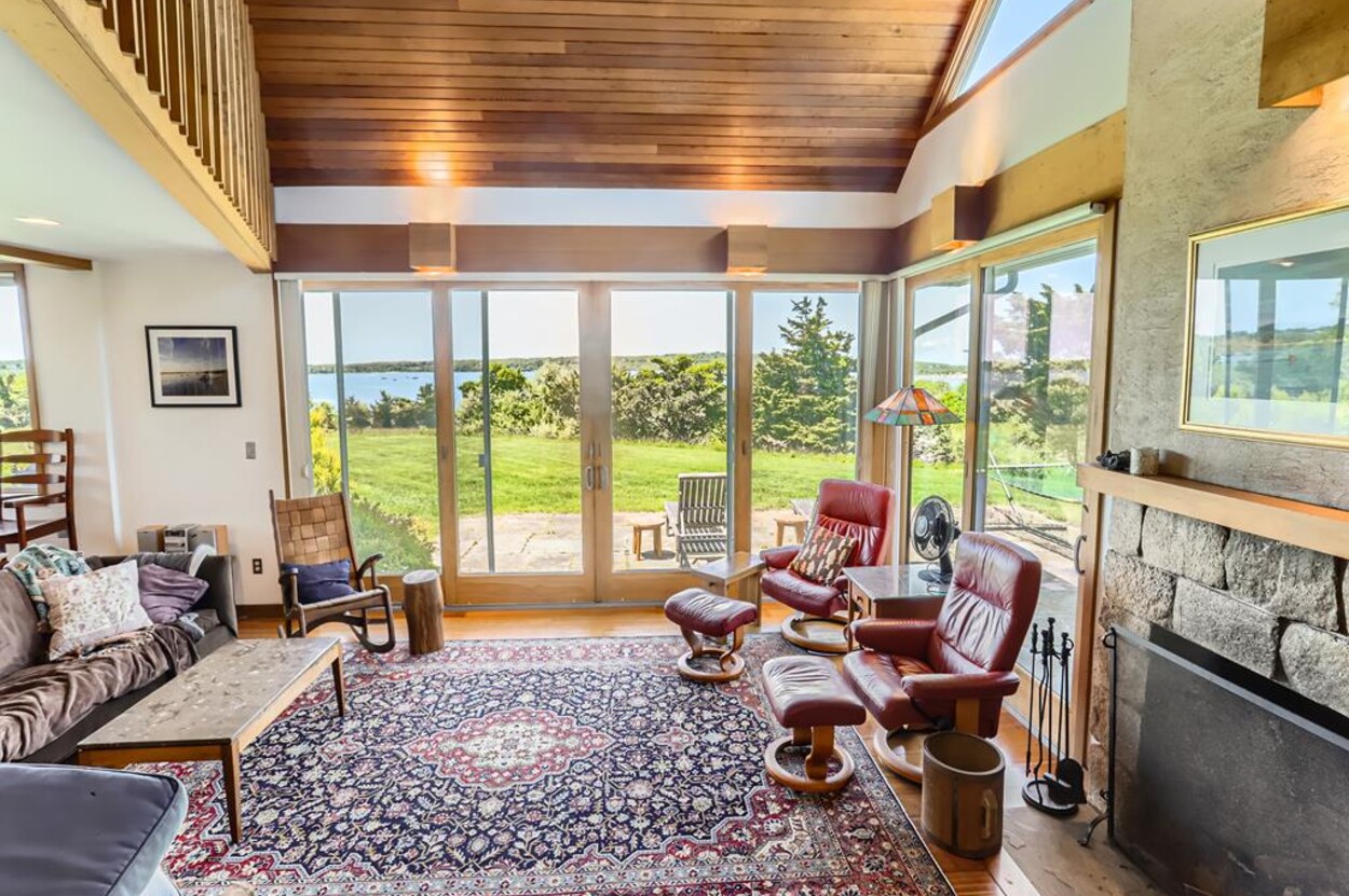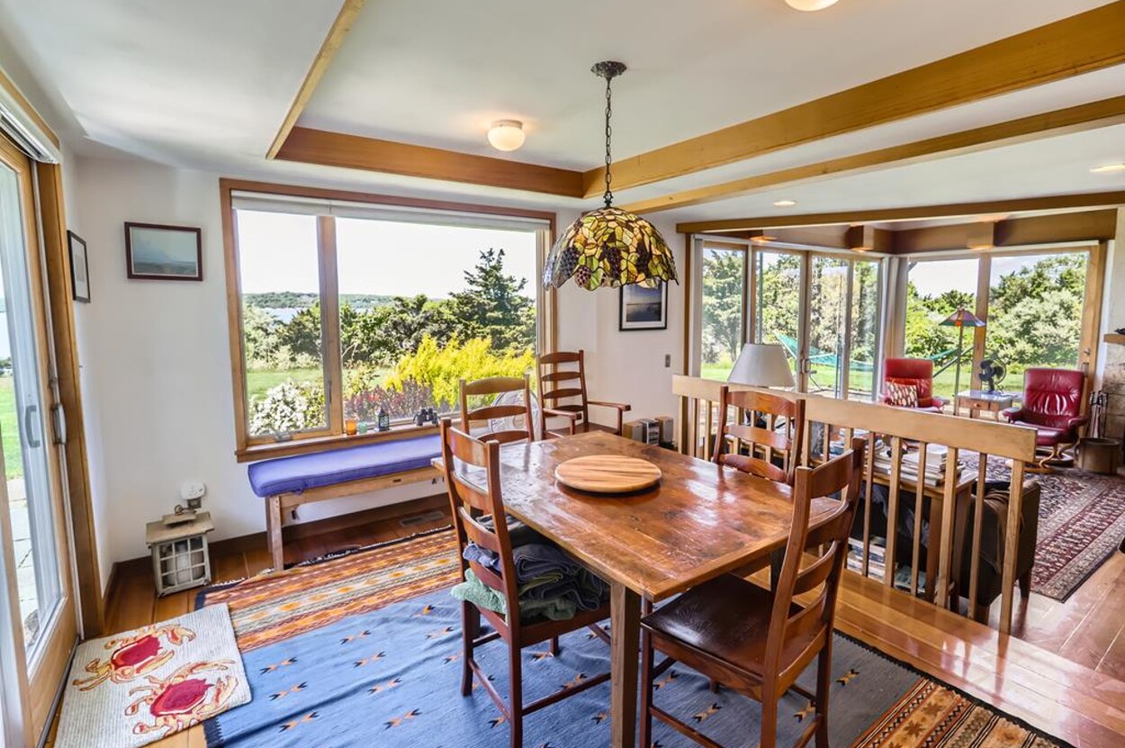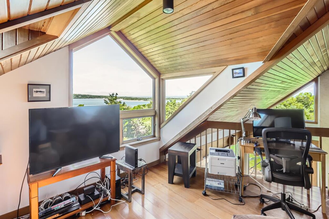 Lovely 3 bedroom 2 bath home overlooking Menemsha Pond and the Vineyard Sound with nearby beach access to private sandy Menemsha Pond beach great for swimming and kayaking. This comfortable home has an open living dining area with lots of glass to maximize the light and the wonderful views. The well equipped galley kitchen is small but nicely laid out with high end appliances---Sub Zero refrigerator, Wolf range with gas burners and electric oven and Fisher and Peykel dish washer and dryer. The kitchen opens on the living dining area and the three spaces flow together well. The primary bedroom is located in its own wing with private bath. The other two bedrooms are located in a second wing and share a bath. There is a loft for overflow guests which also functions as an office/tv space. A 5 minute drive to Chilmark town center and Lucy Vincent Beach yet in a world of its own.