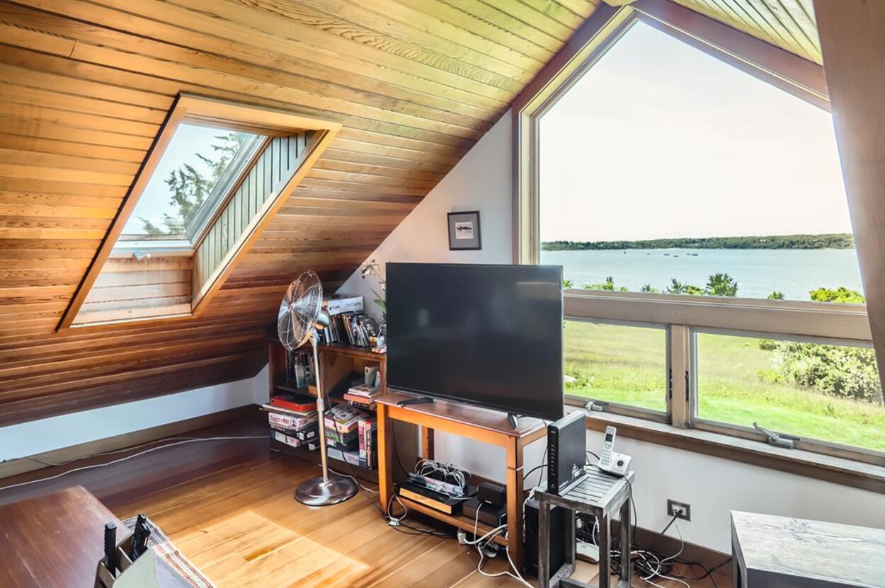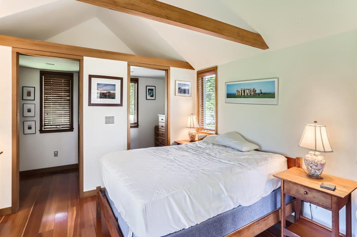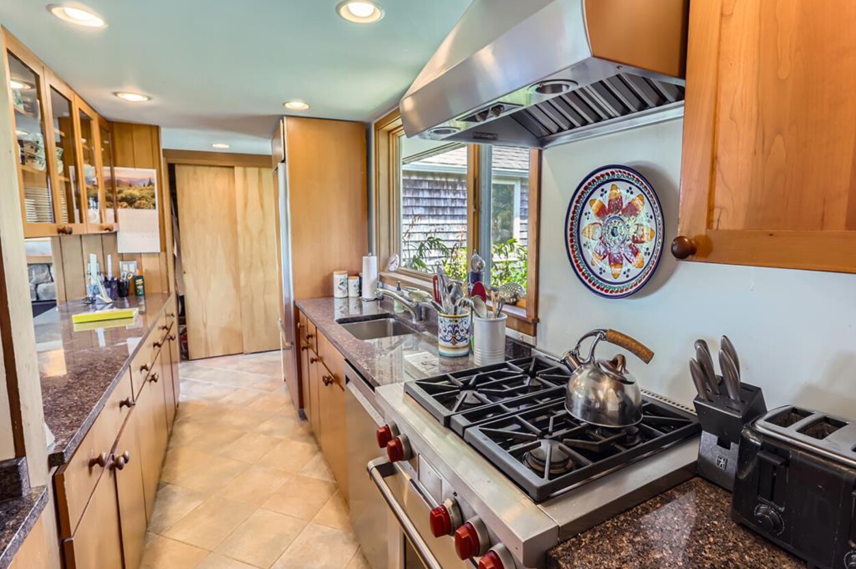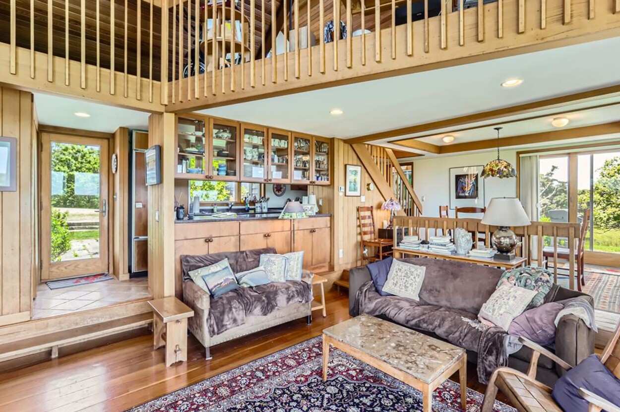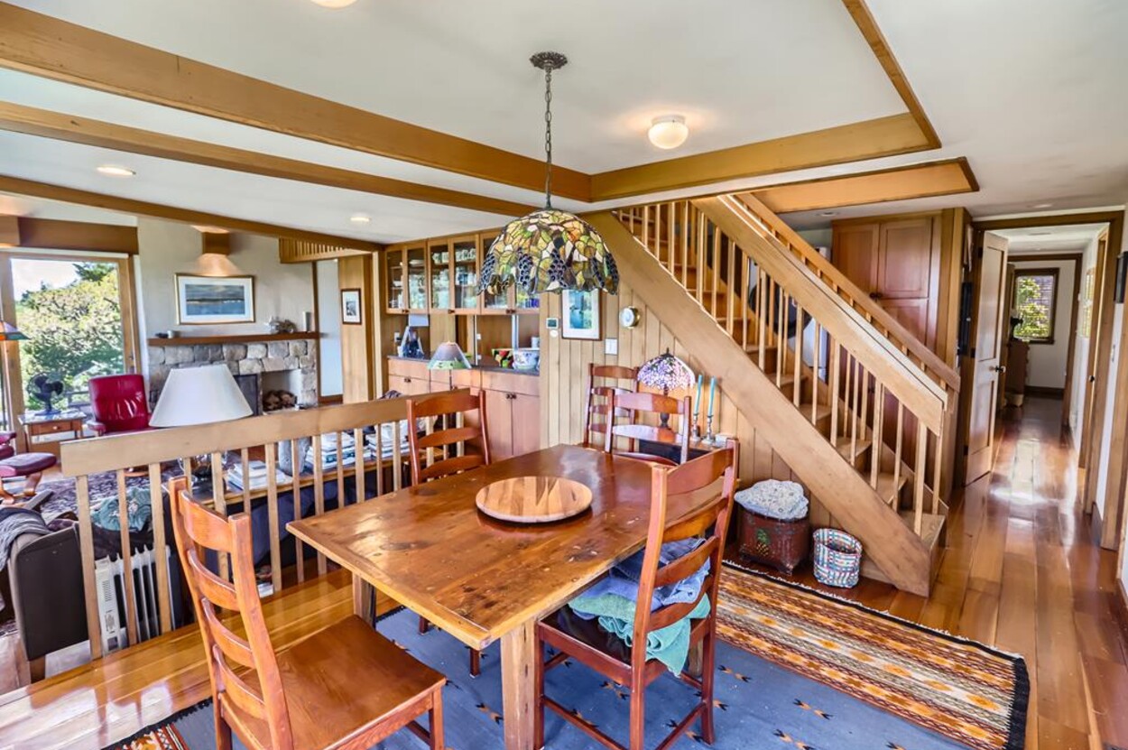 Lovely 3 bedroom 2 bath home overlooking Menemsha Pond and the Vineyard Sound with nearby beach access to private sandy Menemsha Pond beach great for swimming and kayaking. This comfortable home has an open living dining area with lots of glass to maximize the light and the wonderful views. The well equipped galley kitchen is small but nicely laid out with high end appliances---Sub Zero refrigerator, Wolf range with gas burners and electric oven and Fisher and Peykel dish washer and dryer. The kitchen opens on the living dining area and the three spaces flow together well. The primary bedroom is located in its own wing with private bath. The other two bedrooms are located in a second wing and share a bath. There is a loft for overflow guests which also functions as an office/tv space. A 5 minute drive to Chilmark town center and Lucy Vincent Beach yet in a world of its own.