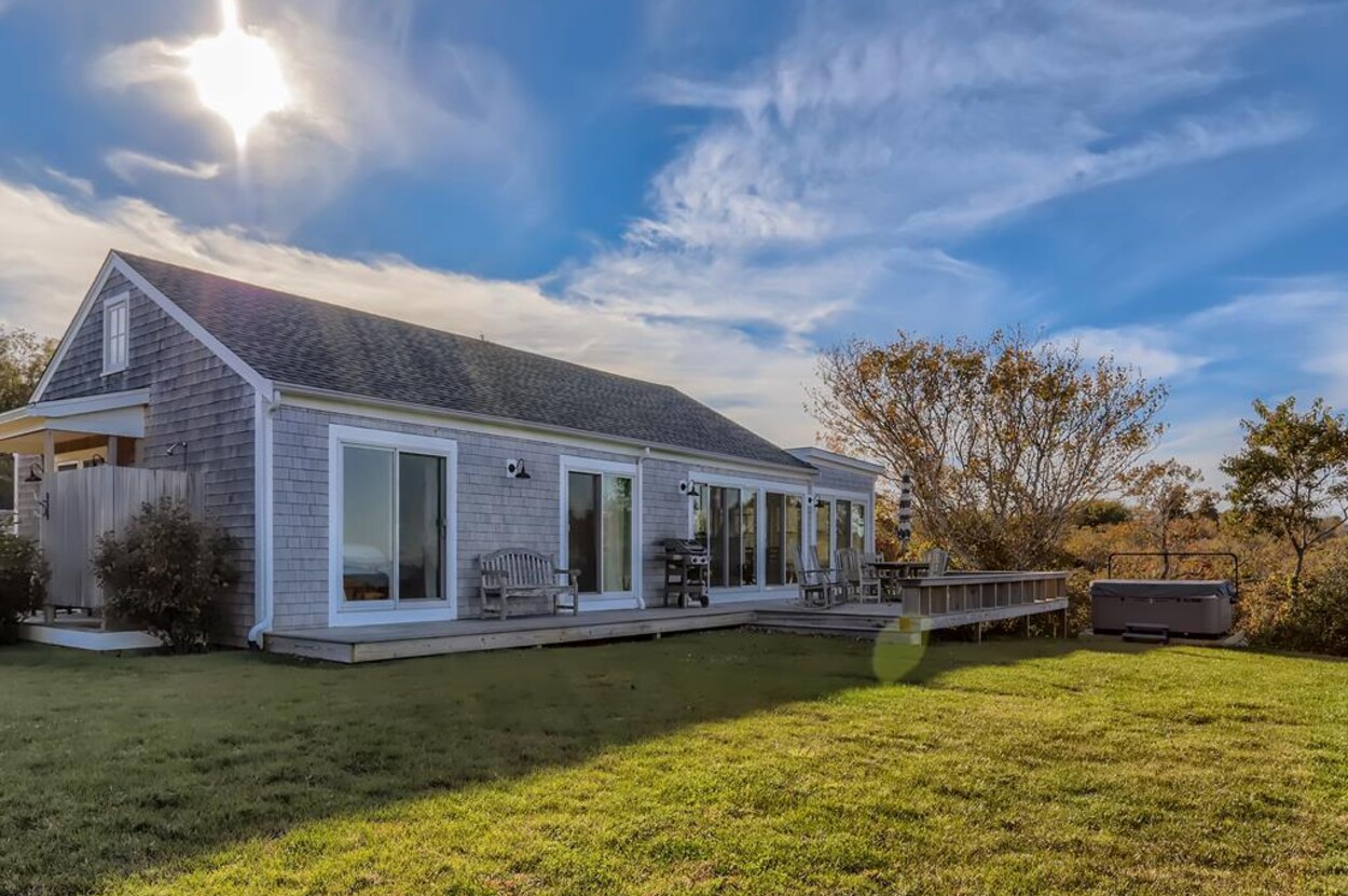 Renovated in 2018 this single level house with fabulous water views and private association beach on Menemsha Pond. This sandy pond beach (short beach) is just a short walk and Squibnocket ocean beach is just half a mile away. A 3 bedroom 2 1/2 bath house with all amenities including A/C make this a very special summer hideaway. Could sit on the deck all summer!