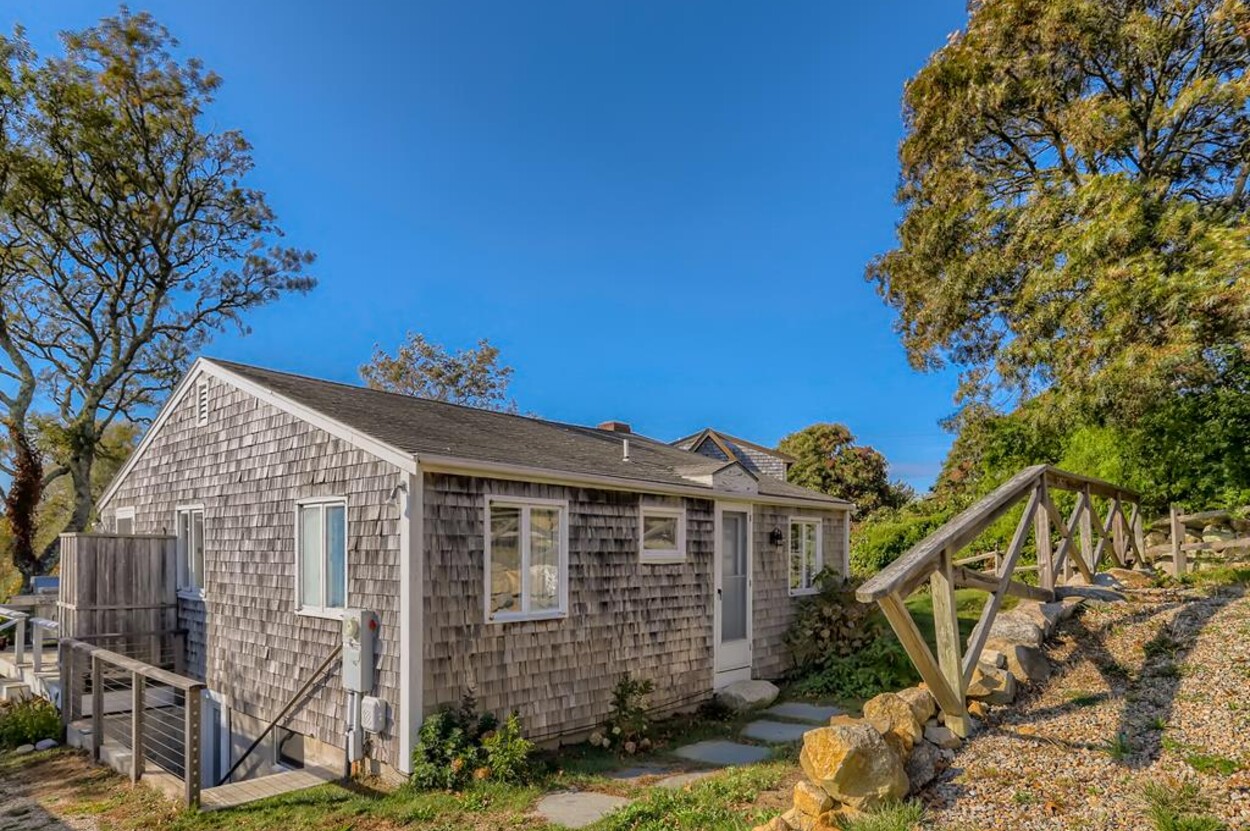 Just a short walk from the village, this sweet Menemsha cottage offers old world charm and peeks of the water. Two bedrooms in the house, and a detached bedroom out back. Clean and simple home with all the essentials, including a deck with a view, outdoor shower, and easy access to Menemsha beach.