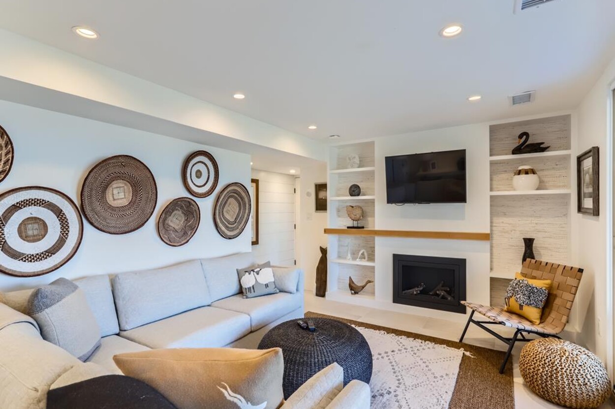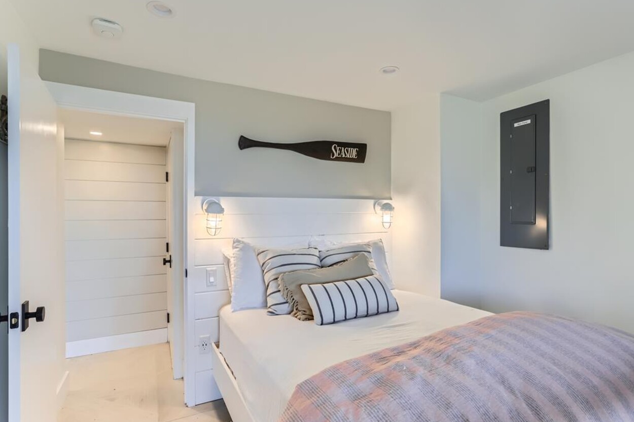 The main level consists of a open living/kitchen dining room with a wall of glass and doors out to the water view deck from which to enjoy the amazing sunsets. The kitchen is state of the art and well equipped to create fabulous meals at home. On one side of the living space is the luxurous primary bedroom suite - wake up to the waterviews from the compfy king bed or luxuriate in the bathroom with double sinks plus a seperate tub ( with waterview!) and shower plus door to a private outdoor shower. A private dressing room plus washer dryer. On the opposite side of the living space are two guest bedrooms with waterviews and doors out to the deck that share one full and one half bath.
