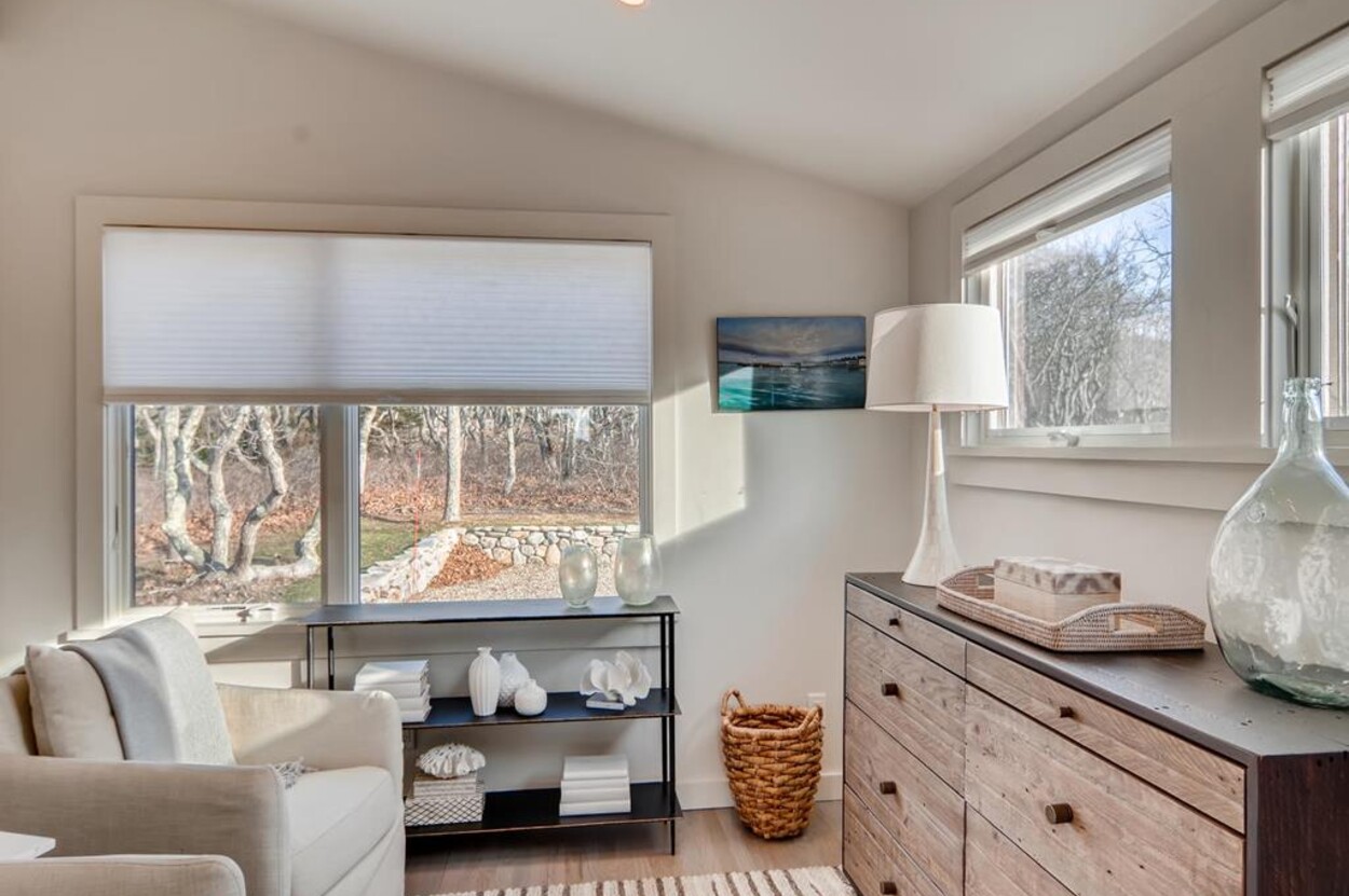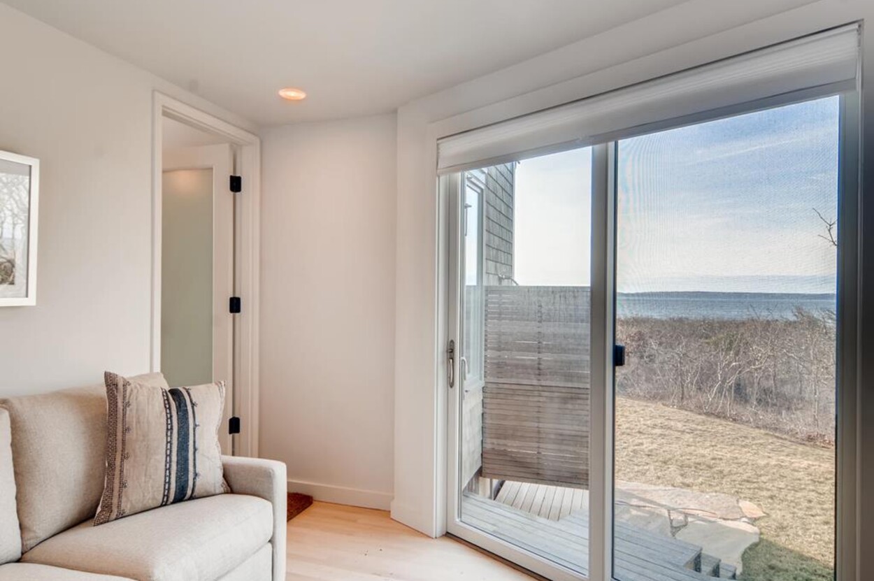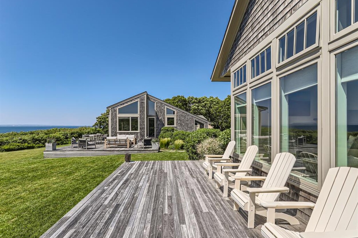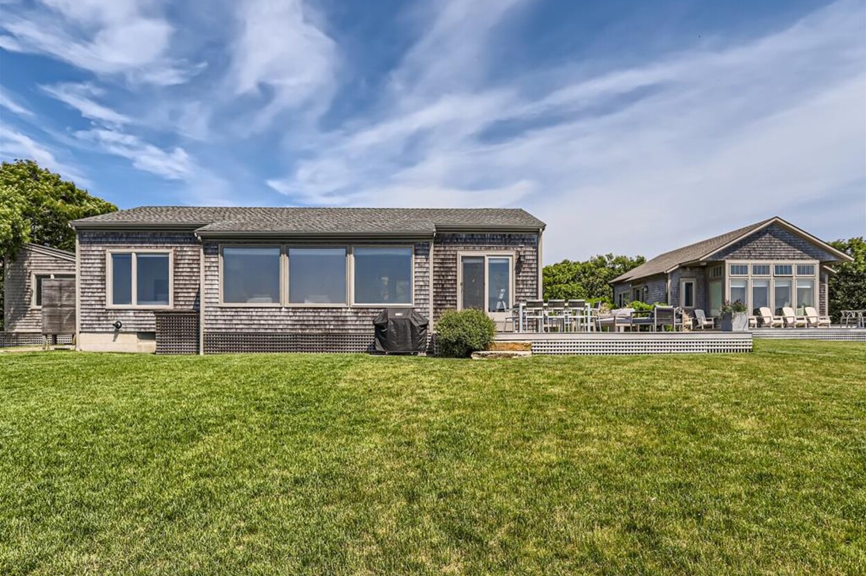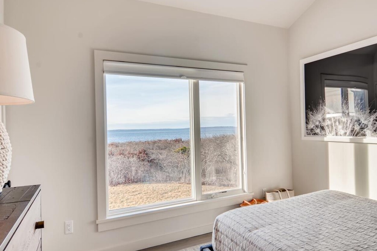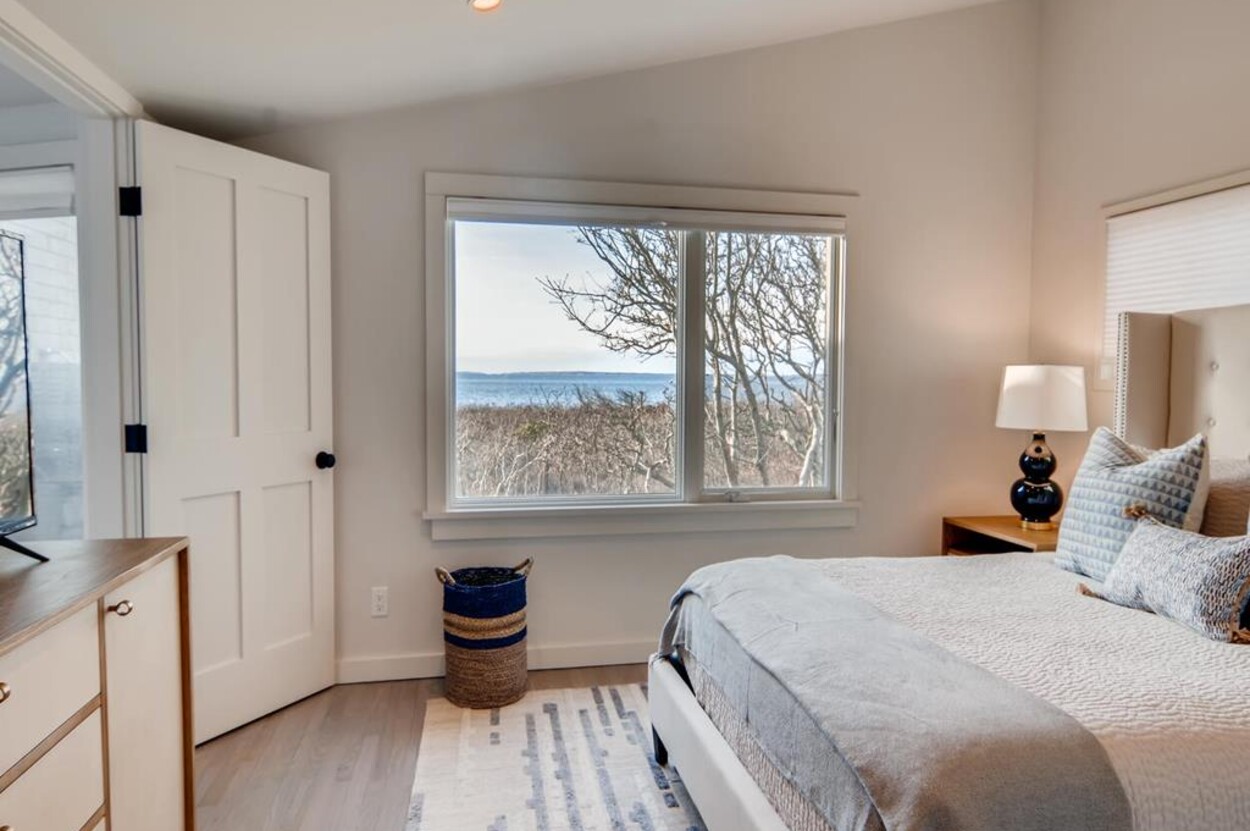 Breathtaking and expansive views of the Elizabeth Islands and Vineyard Sound and exceptional beach access, simply step out your back door and take a private path to the private association beach. This bright and airy newly renovated house and guest house is in the coveted Spring Point Association which offers privacy, beautiful walking trails, beach and association tennis courts. There are five bedrooms between the two homes which are open with an elegant yet comfortable beach décor. The main house is all one level with a large primary bedroom with sitting area, king sized bed, and large spa style ensuite bathroom. There is also a comfortable guest room and additional kids guest room with two sets of bunk beds. Primary bedroom and main kitchen, dining, living room area have AC. The guest house is fully appointed with kitchen living room, deck, and one and half bathrooms, two bedrooms and central AC. Lovely outdoor shower and large, well furnished deck off the main house complete this summer retreat!