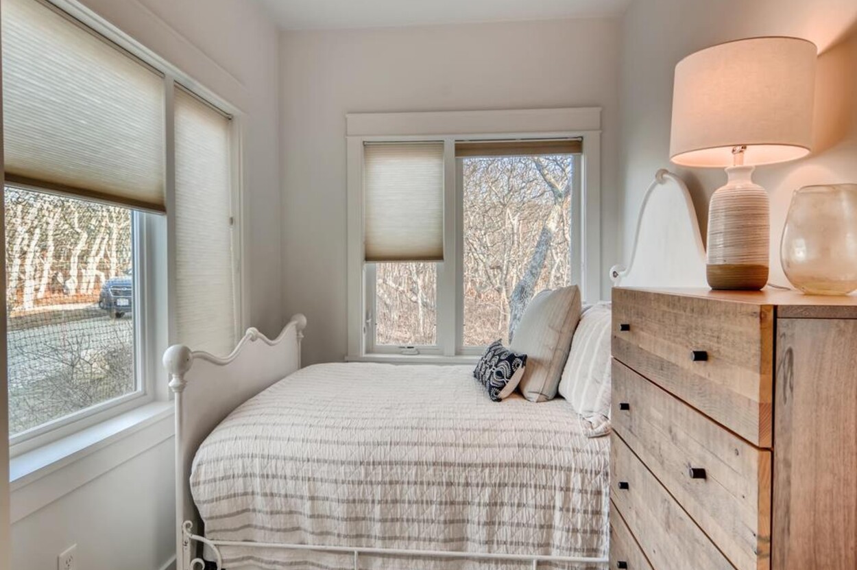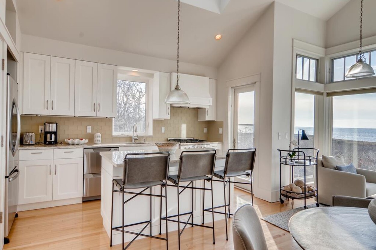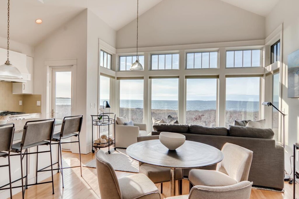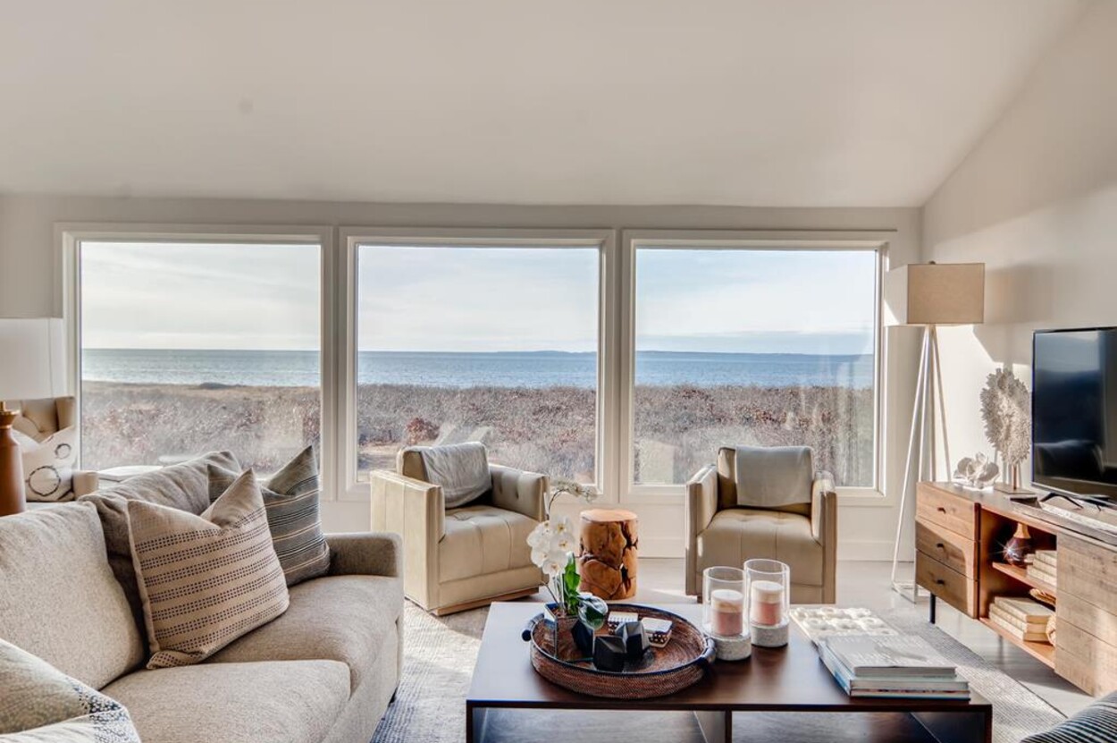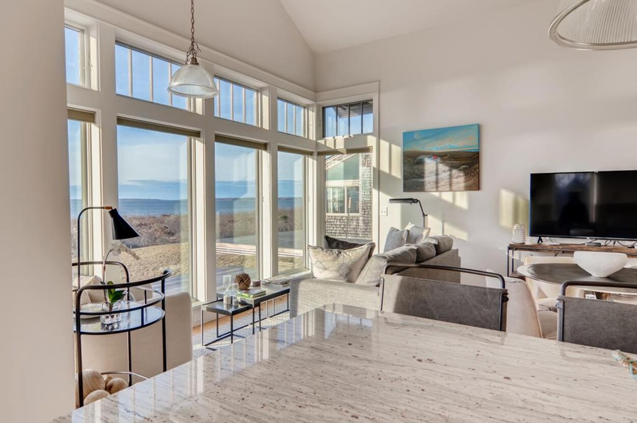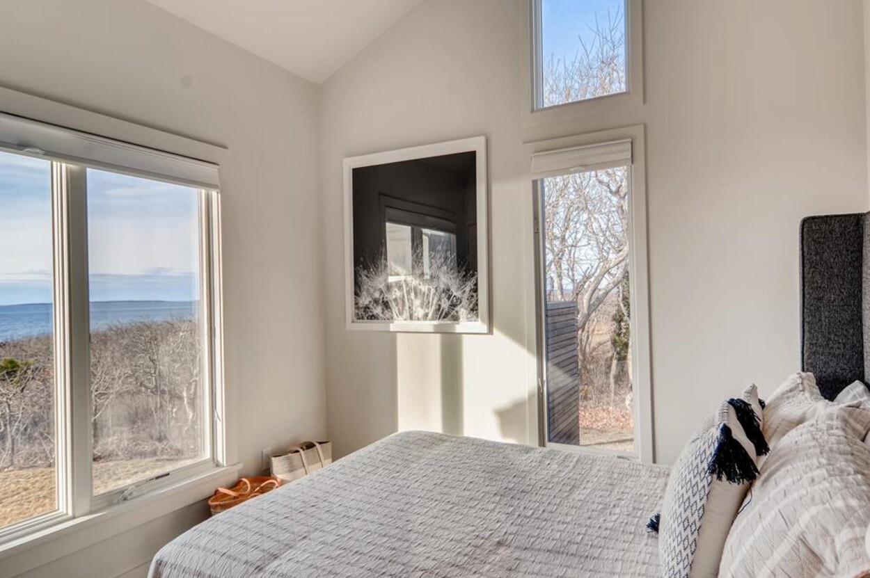 Breathtaking and expansive views of the Elizabeth Islands and Vineyard Sound and exceptional beach access, simply step out your back door and take a private path to the private association beach. This bright and airy newly renovated house and guest house is in the coveted Spring Point Association which offers privacy, beautiful walking trails, beach and association tennis courts. There are five bedrooms between the two homes which are open with an elegant yet comfortable beach décor. The main house is all one level with a large primary bedroom with sitting area, king sized bed, and large spa style ensuite bathroom. There is also a comfortable guest room and additional kids guest room with two sets of bunk beds. Primary bedroom and main kitchen, dining, living room area have AC. The guest house is fully appointed with kitchen living room, deck, and one and half bathrooms, two bedrooms and central AC. Lovely outdoor shower and large, well furnished deck off the main house complete this summer retreat!