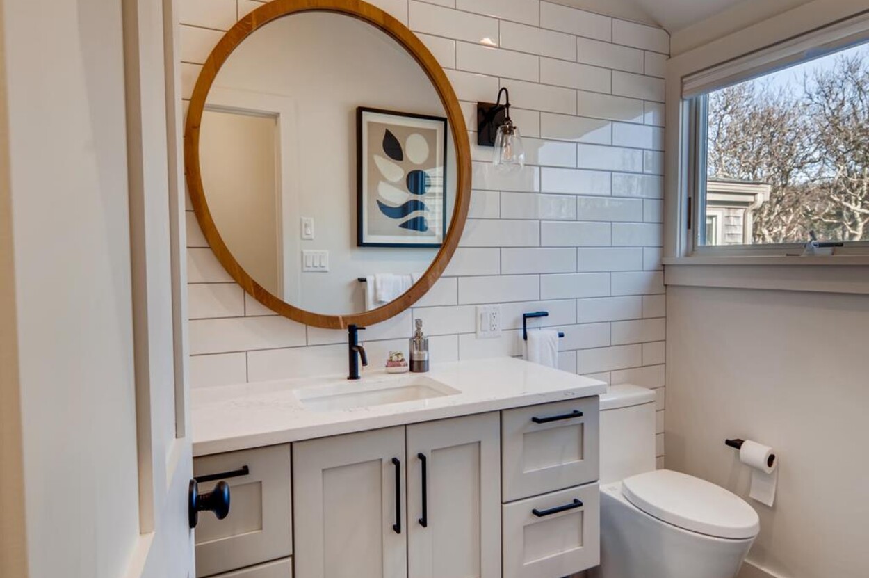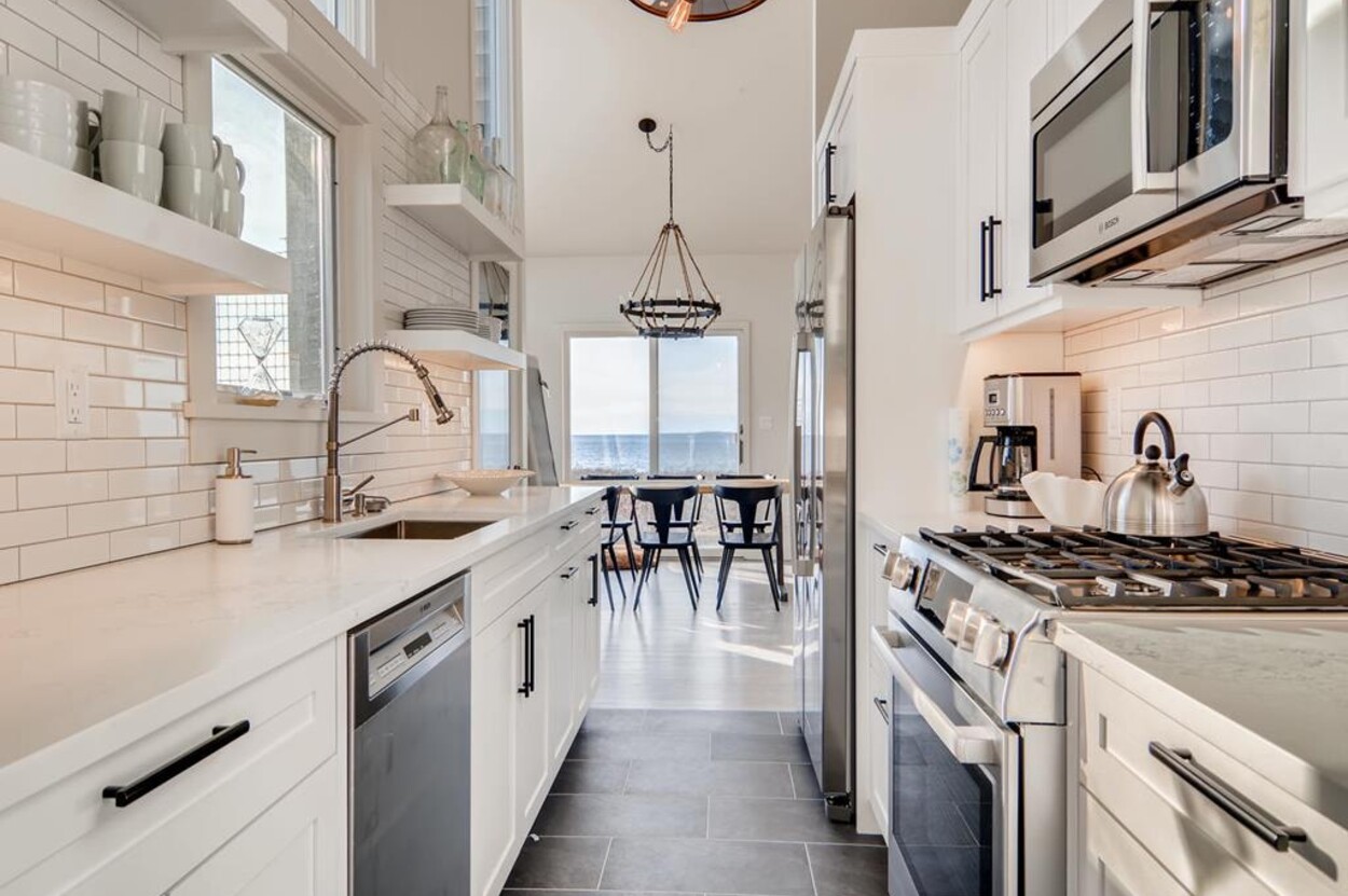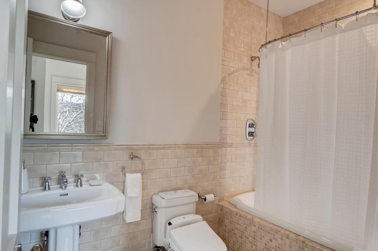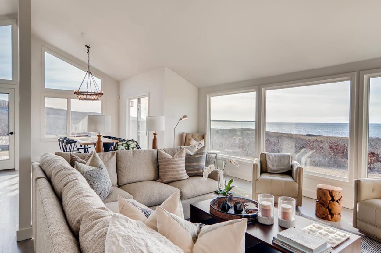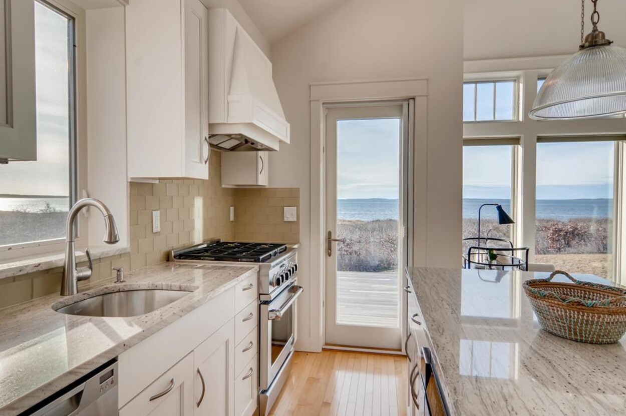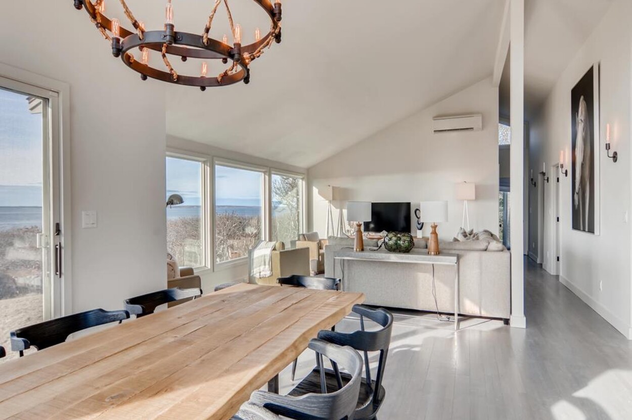 Breathtaking and expansive views of the Elizabeth Islands and Vineyard Sound and exceptional beach access, simply step out your back door and take a private path to the private association beach. This bright and airy newly renovated house and guest house is in the coveted Spring Point Association which offers privacy, beautiful walking trails, beach and association tennis courts. There are five bedrooms between the two homes which are open with an elegant yet comfortable beach décor. The main house is all one level with a large primary bedroom with sitting area, king sized bed, and large spa style ensuite bathroom. There is also a comfortable guest room and additional kids guest room with two sets of bunk beds. Primary bedroom and main kitchen, dining, living room area have AC. The guest house is fully appointed with kitchen living room, deck, and one and half bathrooms, two bedrooms and central AC. Lovely outdoor shower and large, well furnished deck off the main house complete this summer retreat!