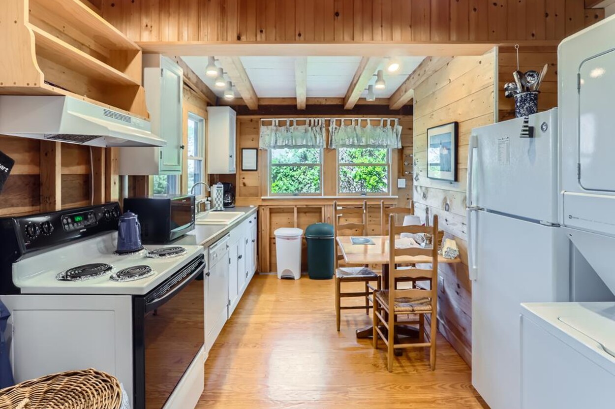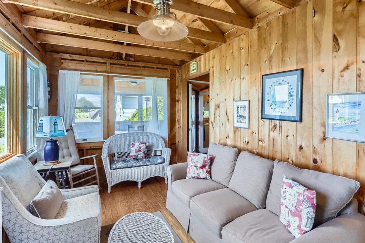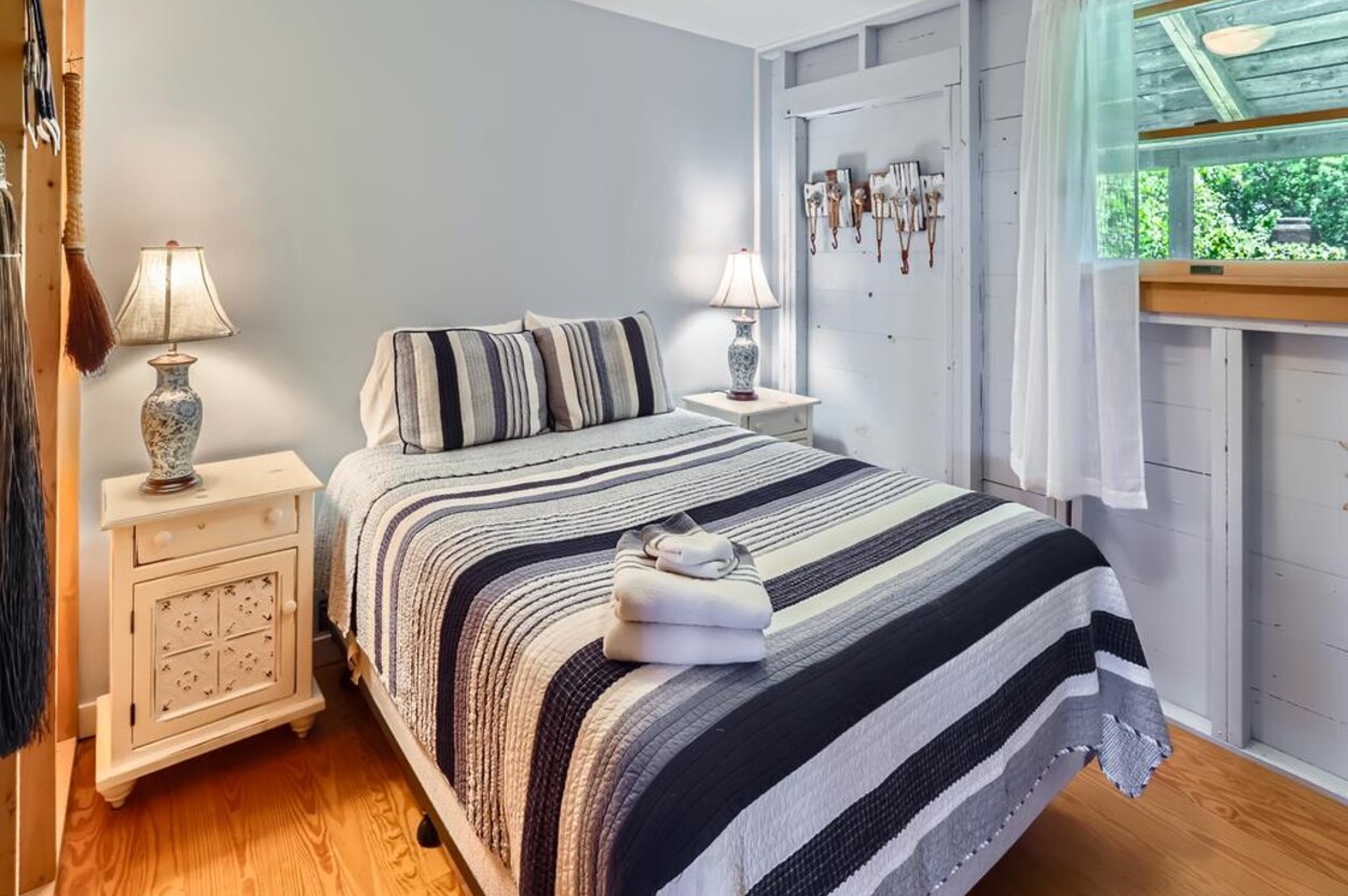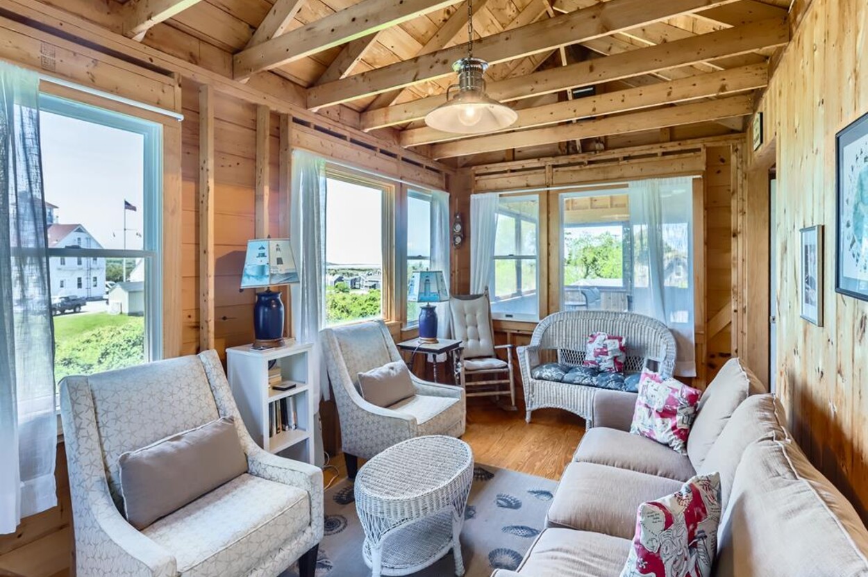 Wonderful water views from this in-town Menemsha cottage! Walk to the Galley for ice cream, right down the road, or have a beachfront lobster roll from Larsen’s Fish market while you join in with the sunset revelers at Menemsha Beach! Three nice-sized bedrooms. One with a Queen bed (ensuite bathroom/shower), and two guest rooms with (2) twin-size beds in each. There are two full bathrooms with showers (no tub) and a very lovely outdoor shower. A wonderful seasonal getaway where you can work from home with high-speed cable internet/wifi and the beautiful views from the back deck! Minimum 30-day rental for July/August, and minimum 2-week rental for May, June, Sept, October.