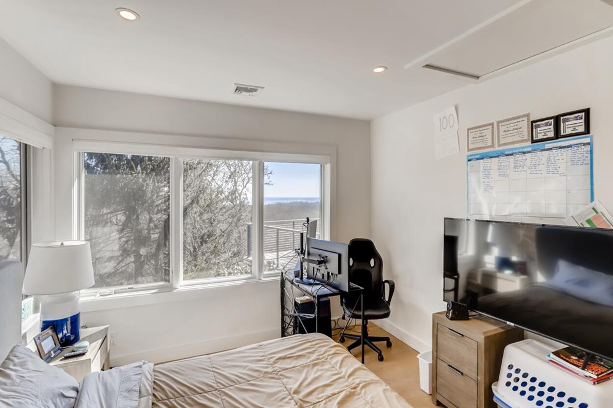 First floor en-suite bedroom with access to the deck, plus a second floor primary bedroom with private bath and private deck. Two further bedrooms on the second floor share a bath. The open living room, dining kitchen is wonderful for entertaining and opens to the huge deck with heated infinity pool and views over the Atlantic ocean.