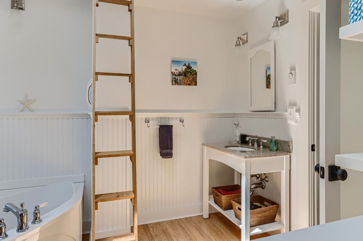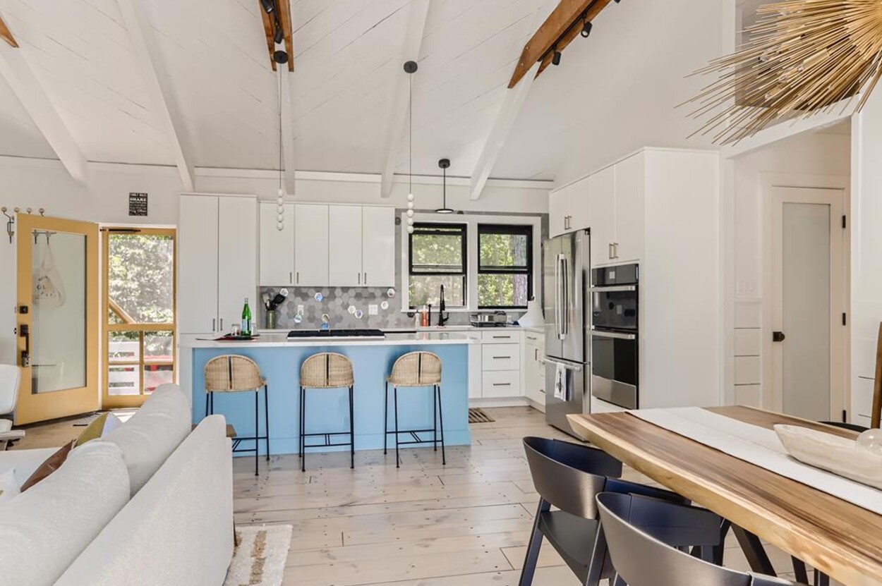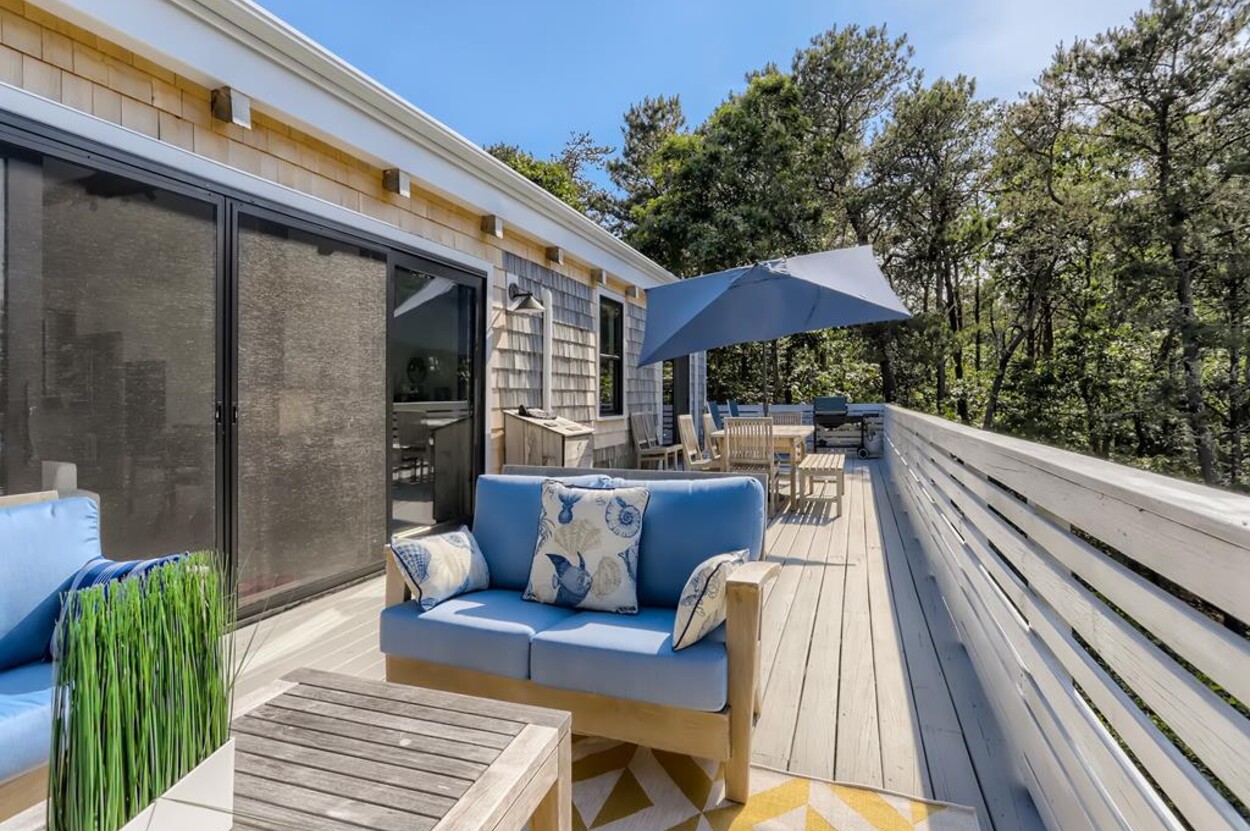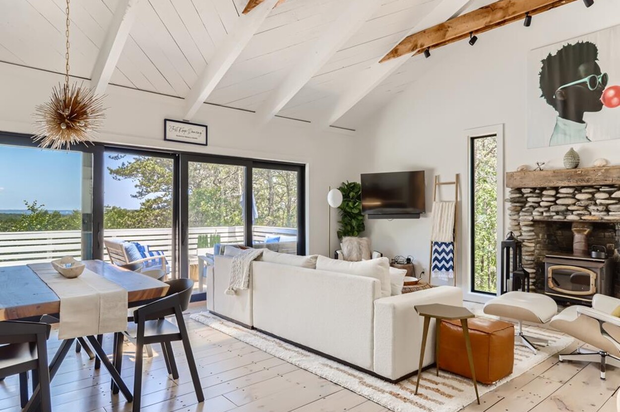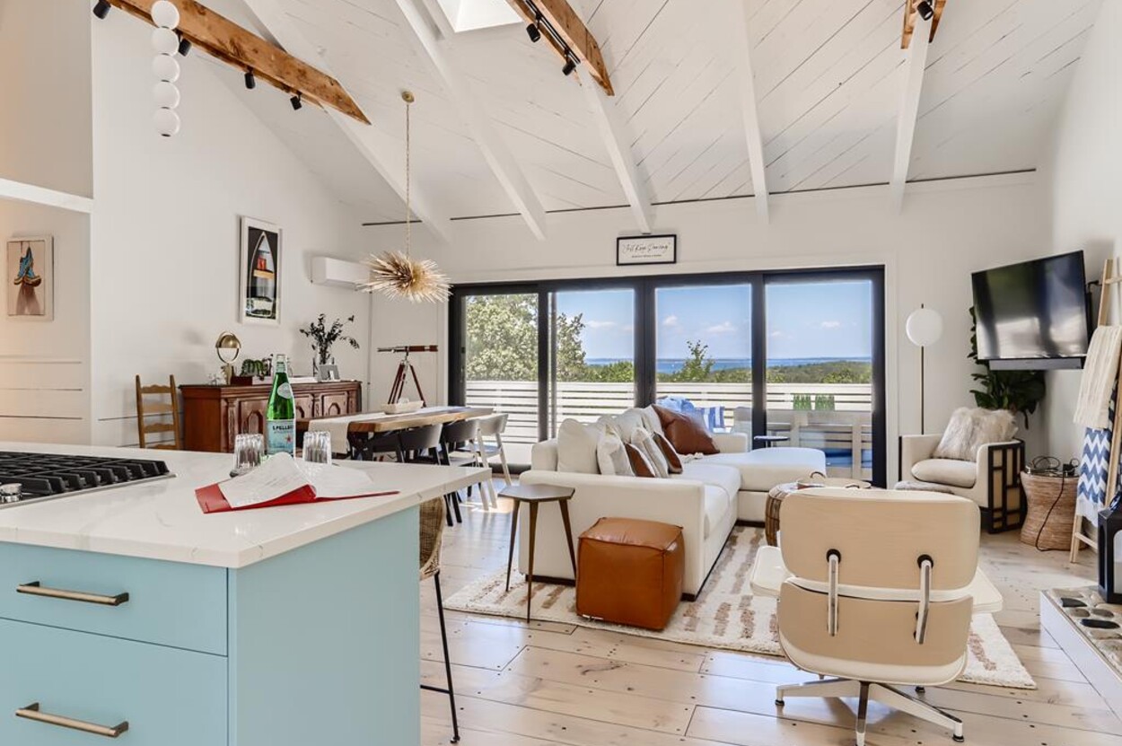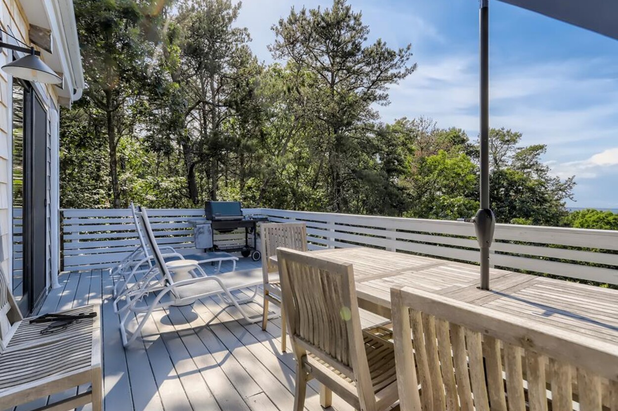 Lovely Chilmark water view property thats been fully renovated for the 2022 season. The open floor plan has a main living space with a brand new kitchen, open dining/living room with large glass sliders to the water view deck. The primary bedroom has an ensuite bath and glass sliding door to the deck and the second bedroom has twin beds and a full bathroom, (with tub), across the hallway. There are 2 further bedrooms and a full bathroom (with shower), plus small hang out space above the adjacent garage that s connected to the home by a wooden walkway, this is a great space for guests or teenagers who want some privacy. Outdoor shower.