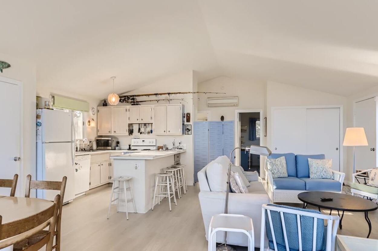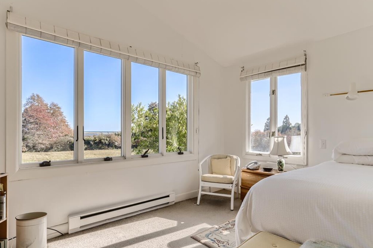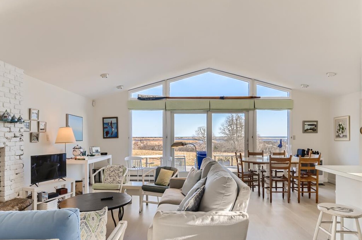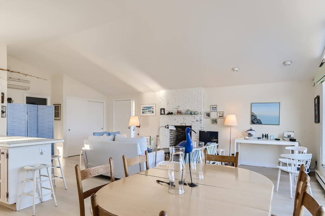 Vintage Beach house with exceptional pond and ocean views and access to the beach via Chilmark Pond. Cathedral ceiling open floor plan Living/Dining/Kitchen with 3 Bedrooms and 2 Baths. This home also has an outdoor shower, gas and charcoal grills and a wonderful oceanside deck to take in the sea breeze. There is an A/C mini split in the main room (kitchen, living room, dining room) and a floor standing AC unit in the primary bedroom. Washer/dryer are located in basement and accessed from outdoor bulkhead. Very convenient location as you can be at the Chilmark General Store or West Tisbury in 5 minutes.