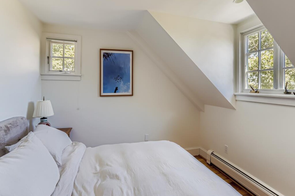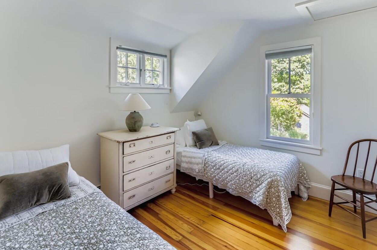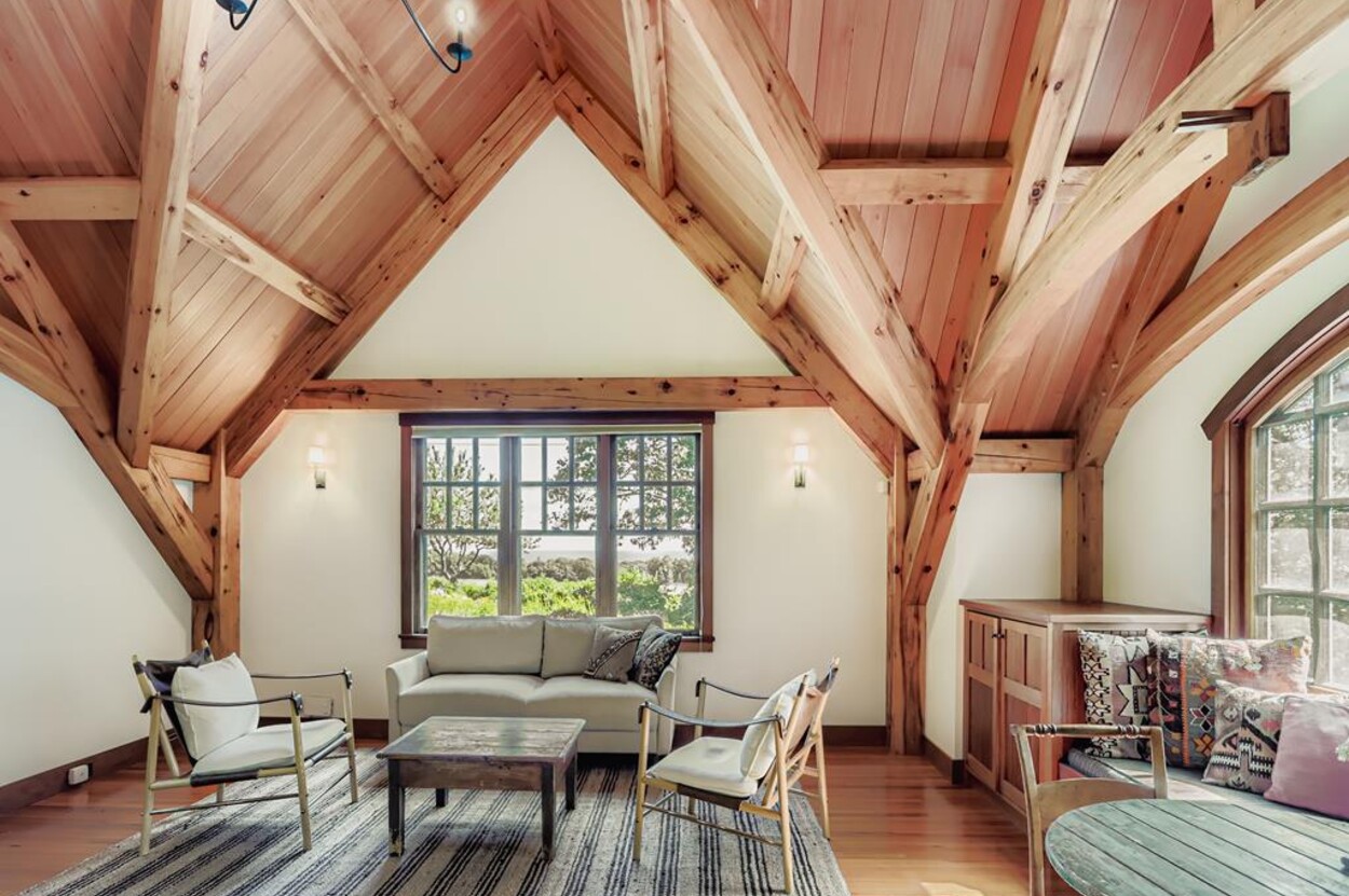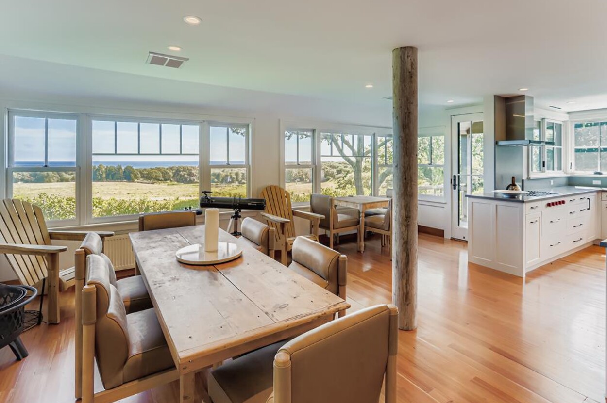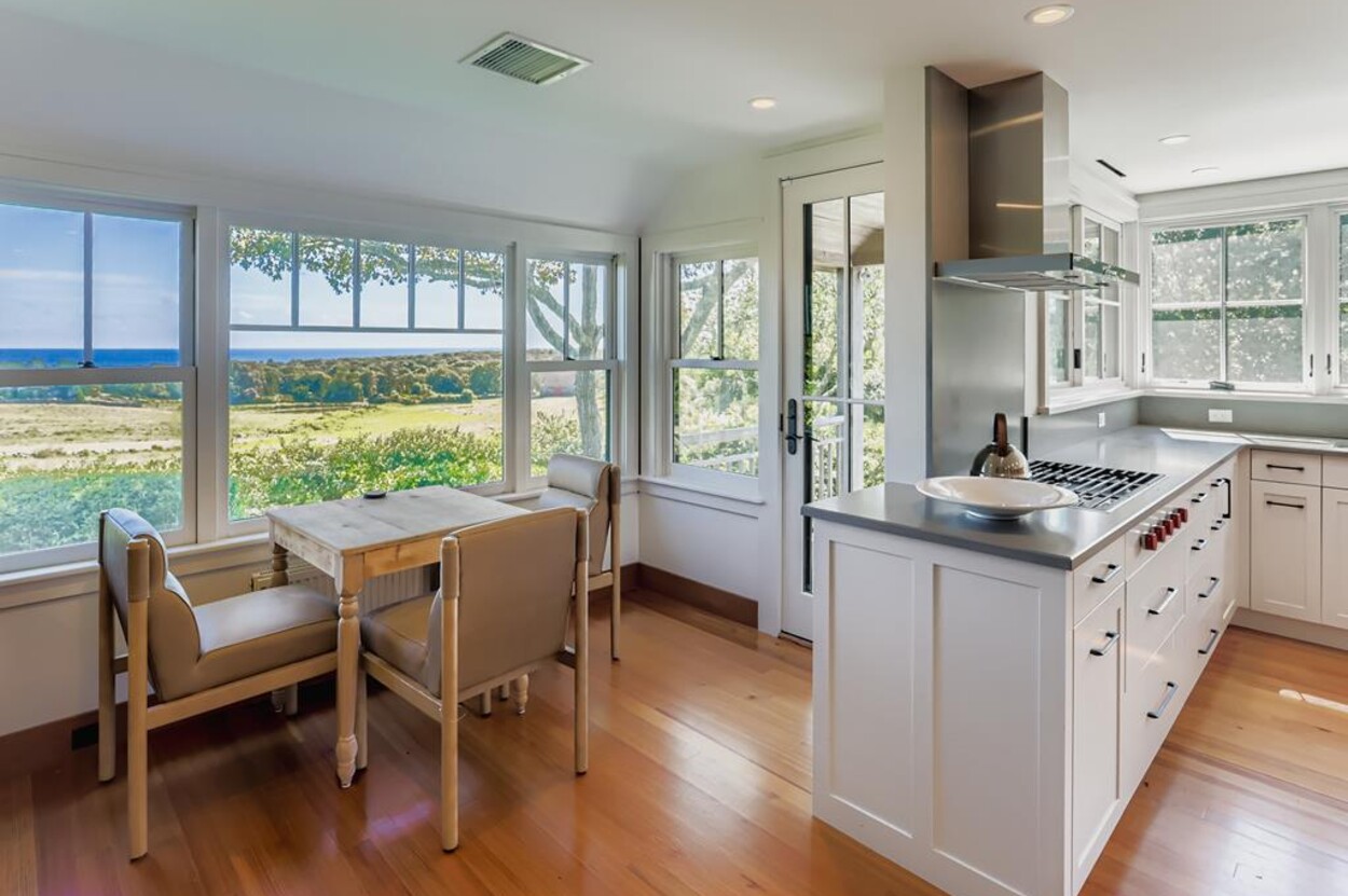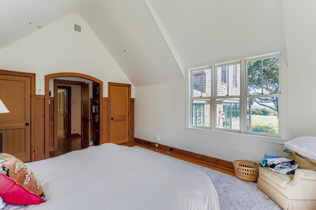 Overlooking iconic Chilmark farmland and ocean beyond, this exceptional property offers a 4 bedroom main house and 2 bedroom guest house. The main house has an open floor plan which feels fresh and contemporary with chef's kitchen, dining room with sitting area and living room with vaulted ceilings. There is direct access to the outdoor patio from the kitchen for outdoor dining and lounging. There is a first-floor primary bedroom suite with ocean and farm views. The second floor has a second primary suite with views and two additional bedrooms that share a full bath. Stone patios are lined with vibrant perennial gardens and old stonewalls including glacial boulders that line the property boundaries. The privately-sited custom post and beam guest house has an open kitchen (no stove/oven) living space upstairs and two bedrooms with one full bath on the lower walk-out level. This guest cottage charms with oversized windows, high ceilings and expert craftmanship. Each house has an outdoor shower. This location lends itself to easy living in the heart of Chilmark. Walk to the Chilmark Community Center, the Chilmark Store, the Tavern, the library, and the fabulous Beetlebung Farm Store.