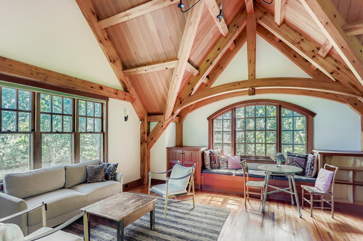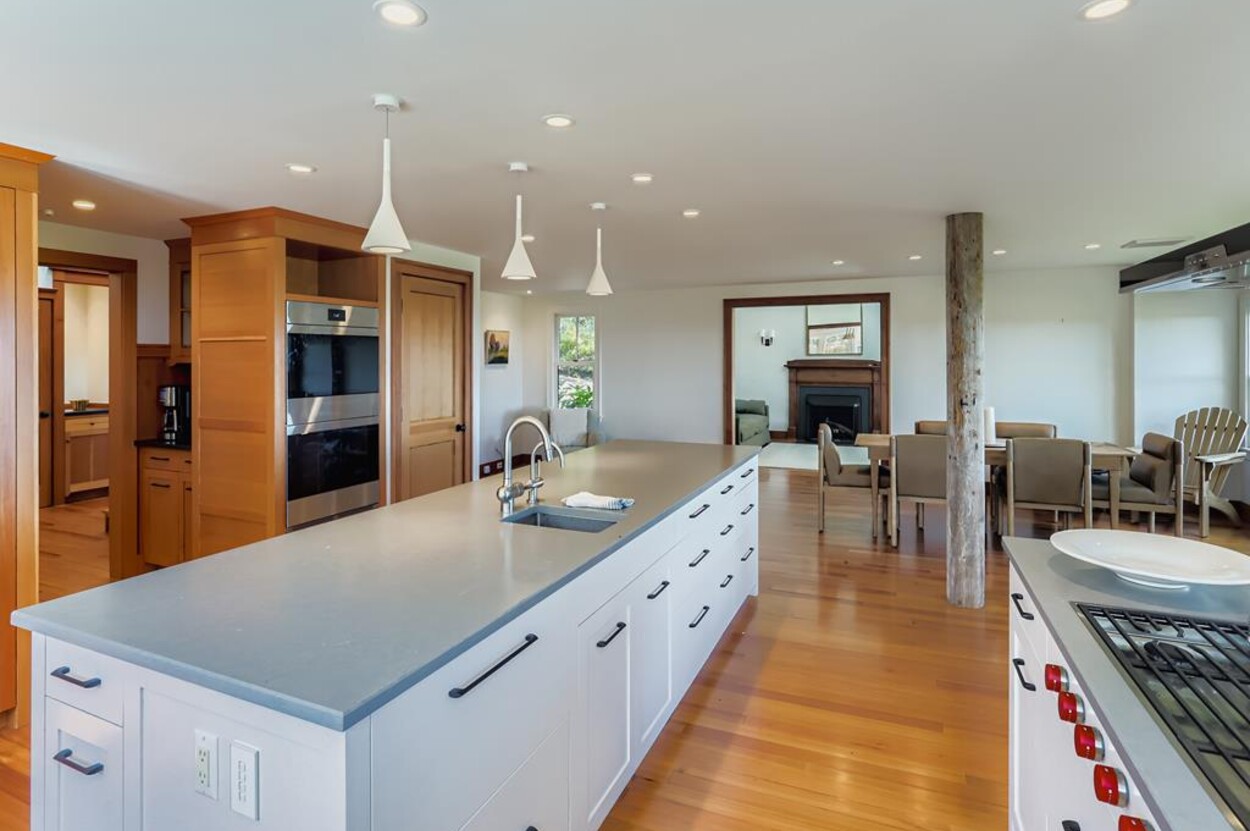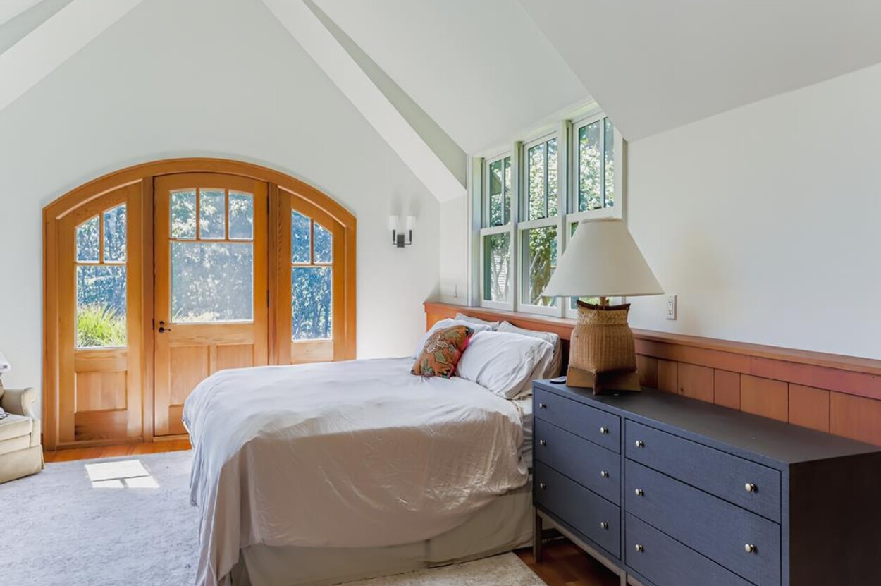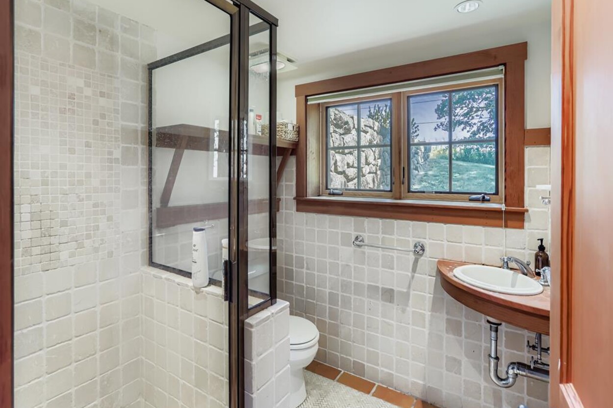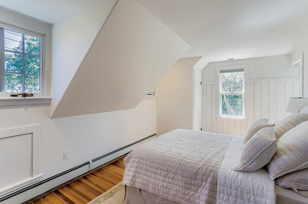 Overlooking iconic Chilmark farmland and ocean beyond, this exceptional property offers a 4 bedroom main house and 2 bedroom guest house. The main house has an open floor plan which feels fresh and contemporary with chef's kitchen, dining room with sitting area and living room with vaulted ceilings. There is direct access to the outdoor patio from the kitchen for outdoor dining and lounging. There is a first-floor primary bedroom suite with ocean and farm views. The second floor has a second primary suite with views and two additional bedrooms that share a full bath. Stone patios are lined with vibrant perennial gardens and old stonewalls including glacial boulders that line the property boundaries. The privately-sited custom post and beam guest house has an open kitchen (no stove/oven) living space upstairs and two bedrooms with one full bath on the lower walk-out level. This guest cottage charms with oversized windows, high ceilings and expert craftmanship. Each house has an outdoor shower. This location lends itself to easy living in the heart of Chilmark. Walk to the Chilmark Community Center, the Chilmark Store, the Tavern, the library, and the fabulous Beetlebung Farm Store.