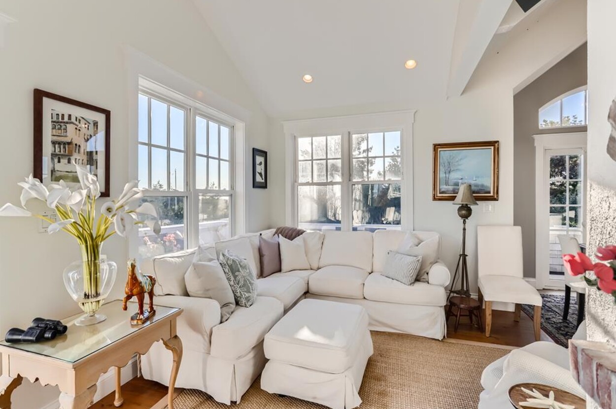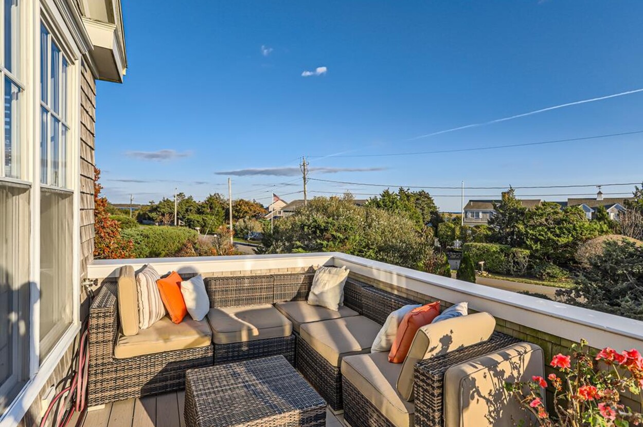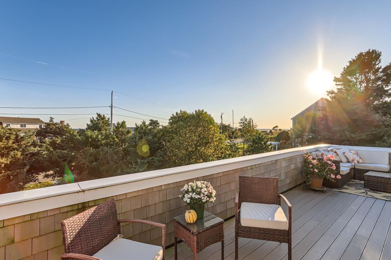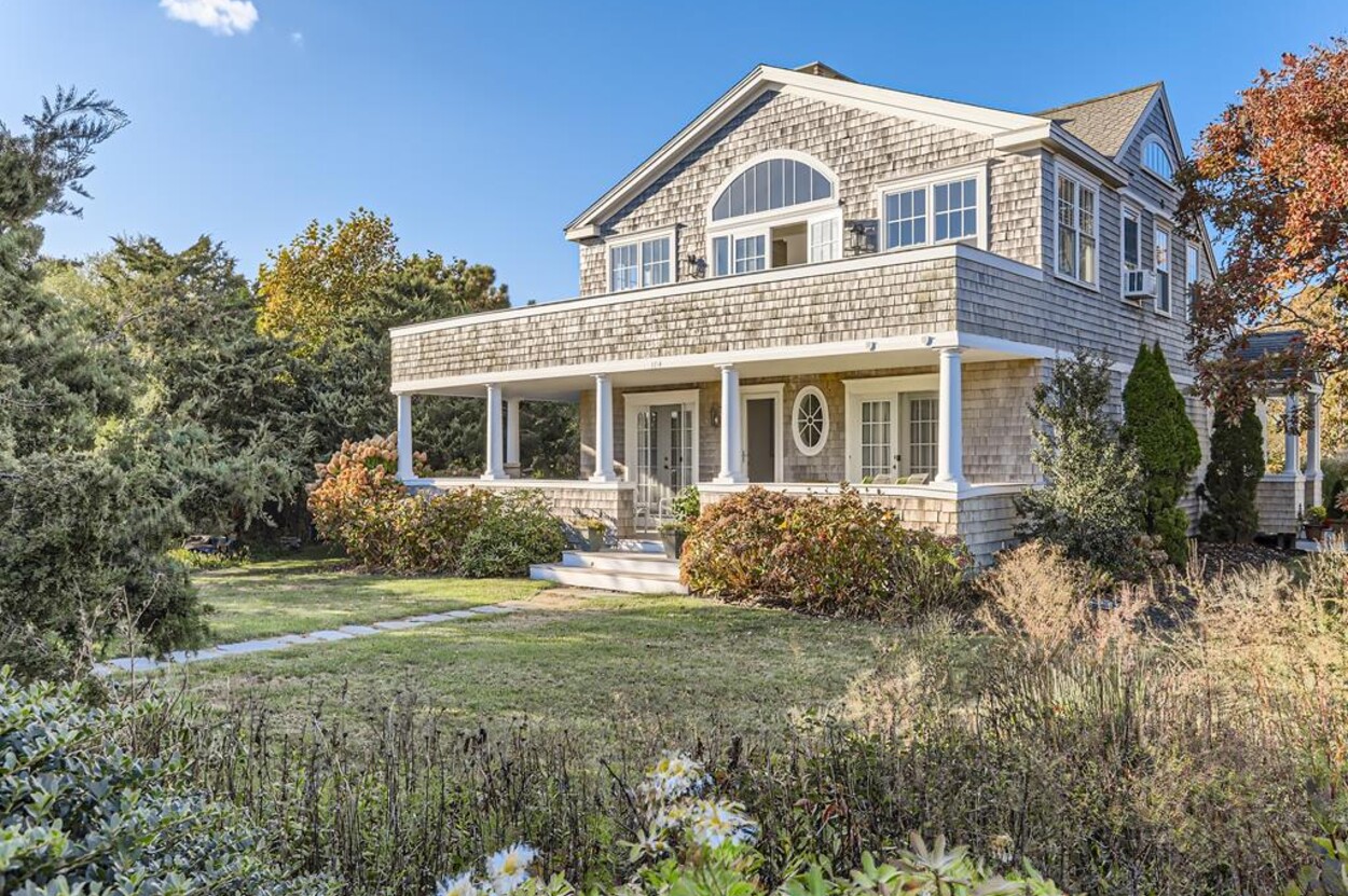 Enjoy water view sunsets from this three bedroom Katama beach home on Edgartown Bay Road, a wonderful location outside of Edgartown. This is reverse design home with 3 first floor bedrooms, two full baths plus powder room and outdoor shower. Upstairs you will find a light bright open living room with wraparound sun deck that you will never want to leave (except maybe to pop across the road to Katama beach!).