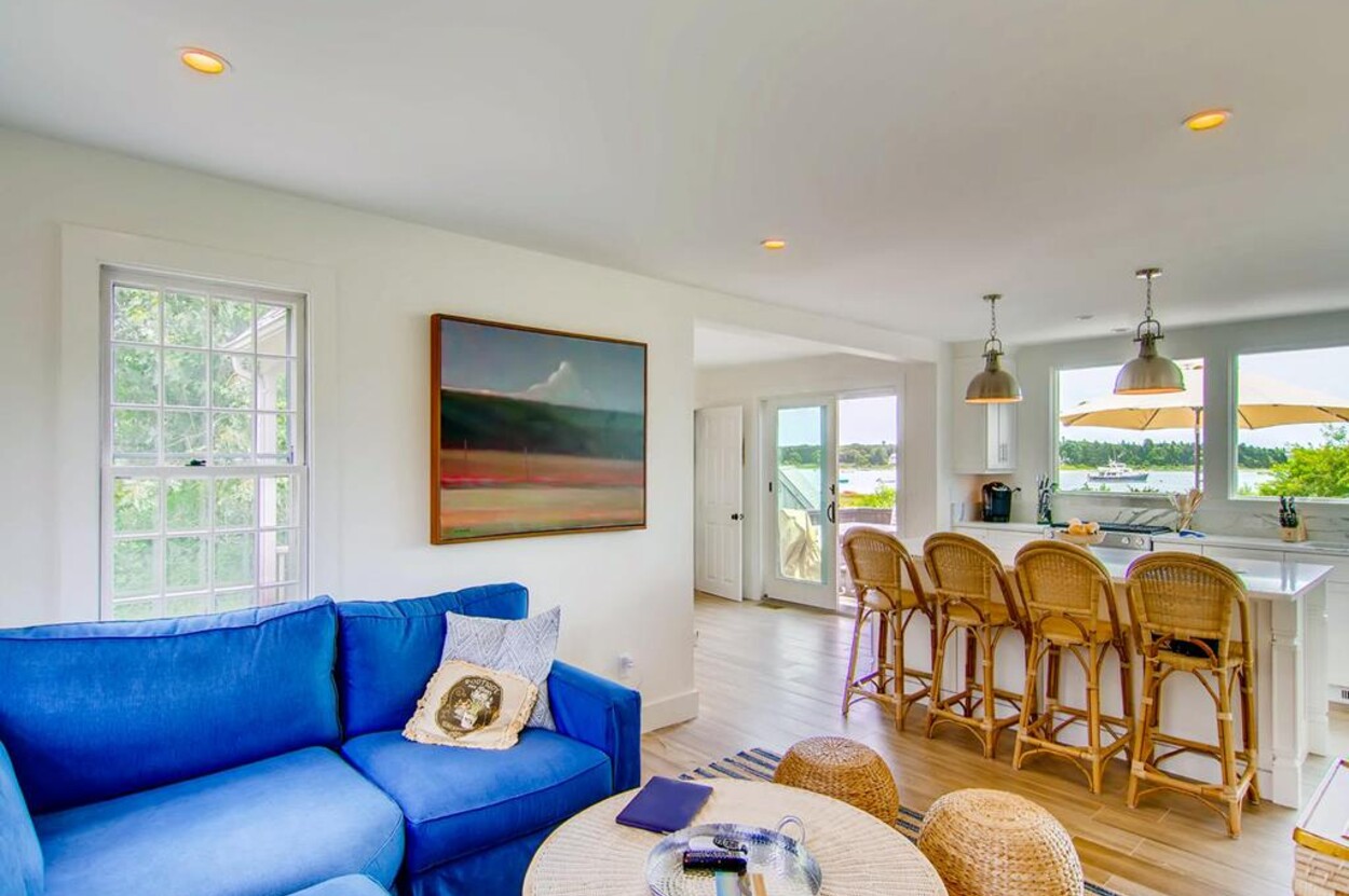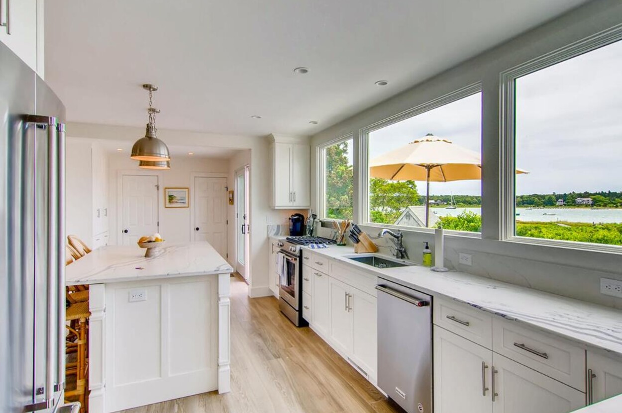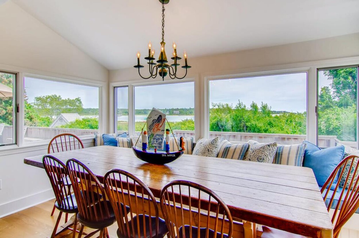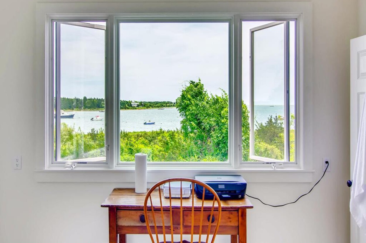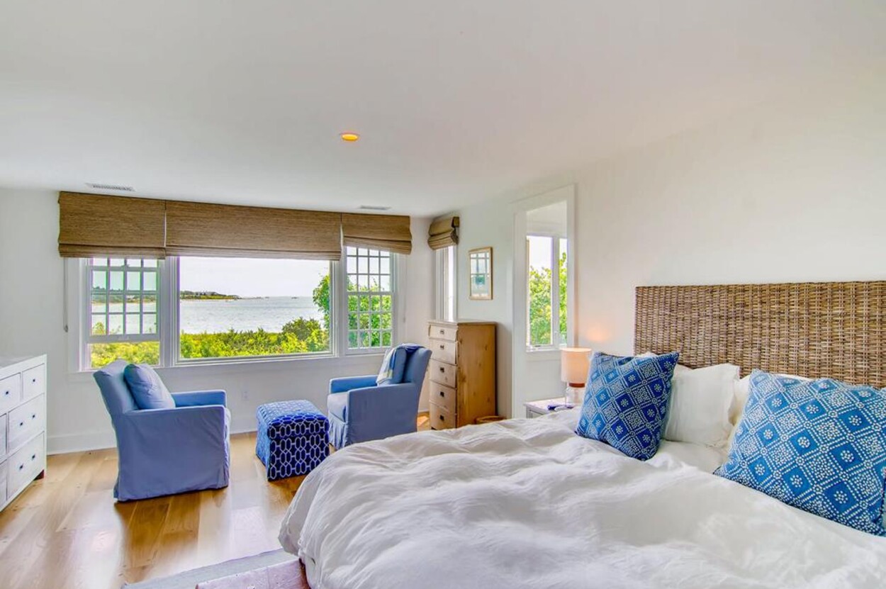 Sweet, newly renovated four-bedroom home plus detached bunk room and bathroom above the garage. Large open kitchen with water views. All bedrooms have en suite bathrooms. New (2022) lower level King Bedroom Suite. Views of Edgartown Harbor from every room and large deck. Shared walking path to a beach on harbor and dock. Lovely neighborhood equidistant to downtown Edgartown and South Beach. This is a classic summer retreat. Please note that the house does not provide bikes or kayaks. These can be rented and delivered to the house.