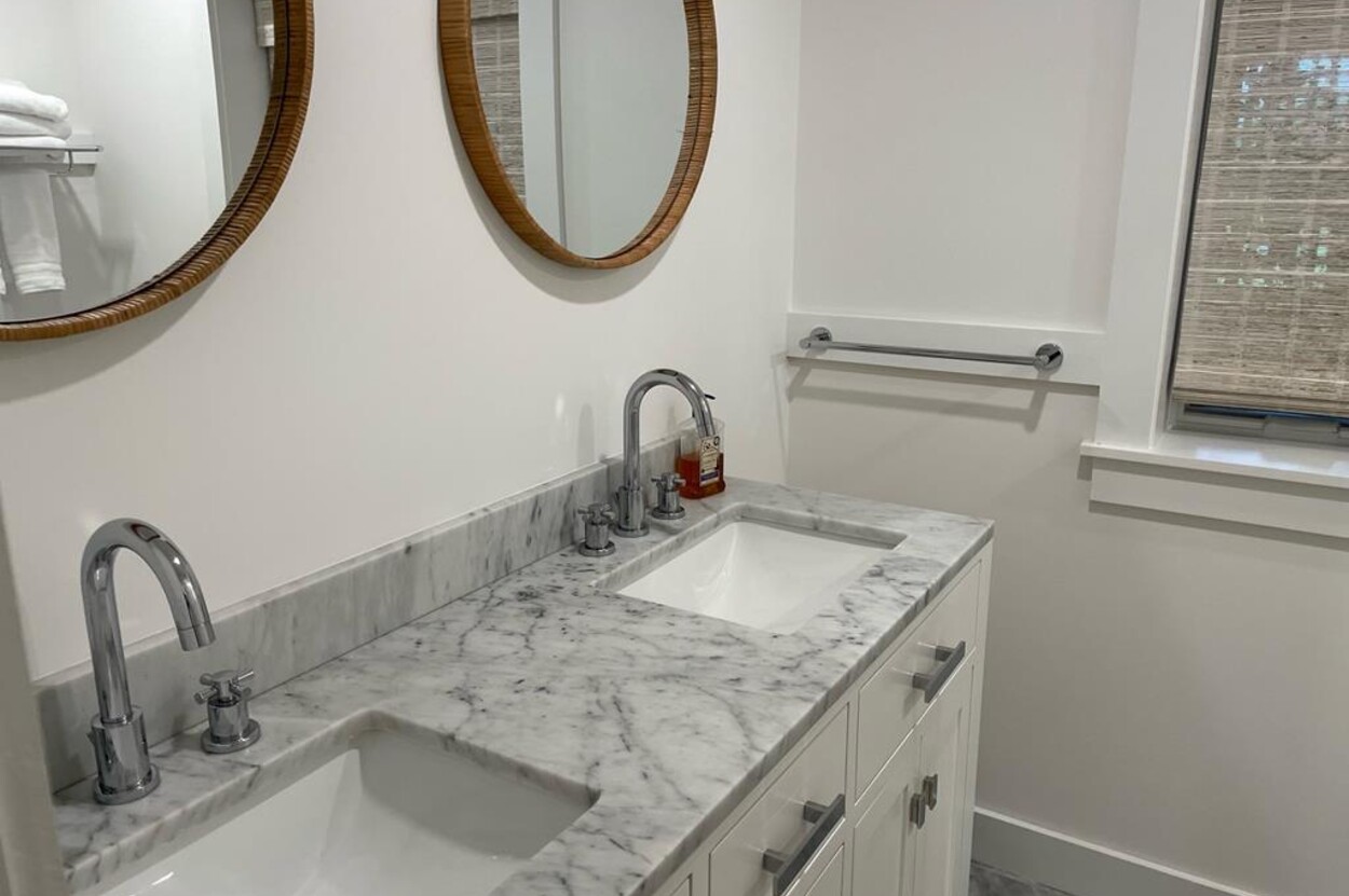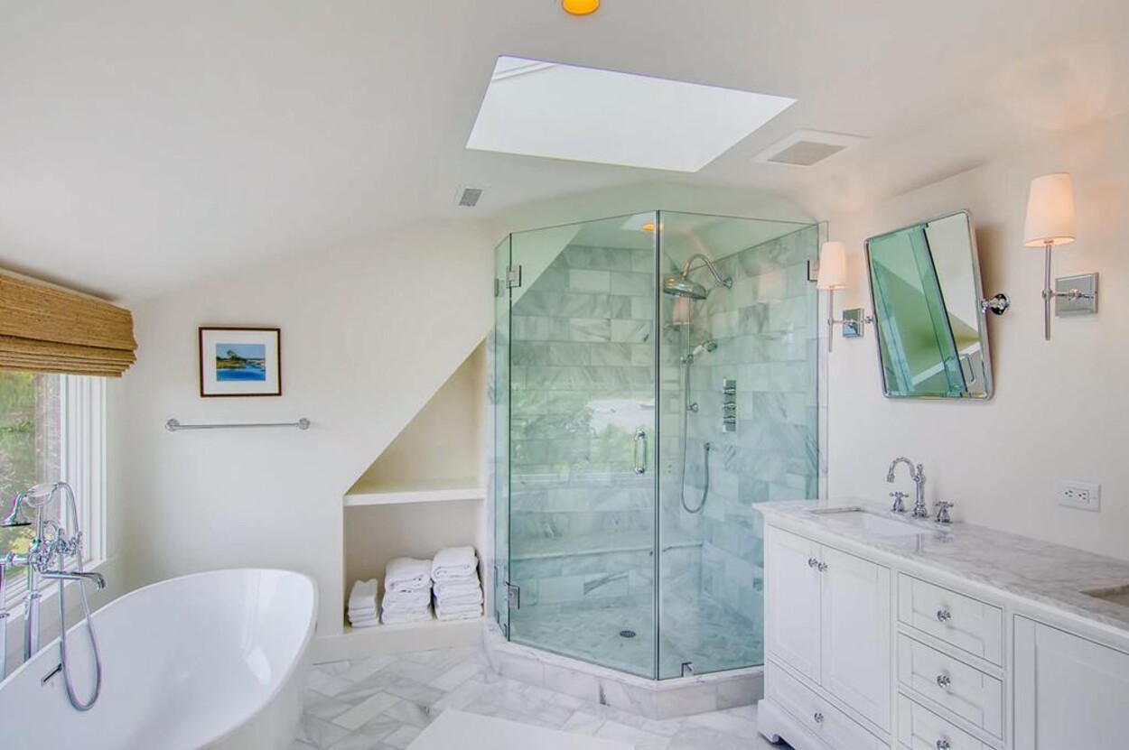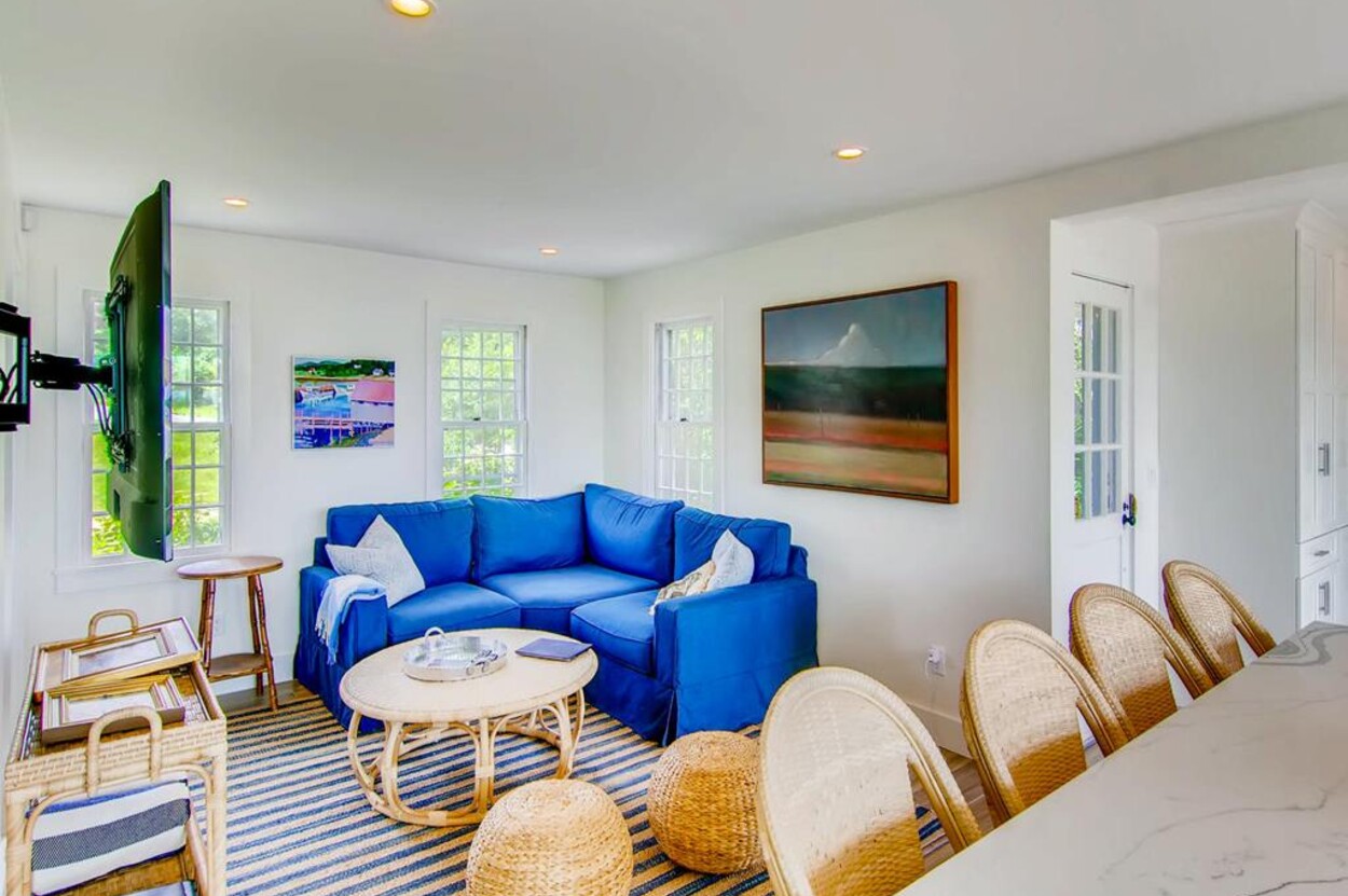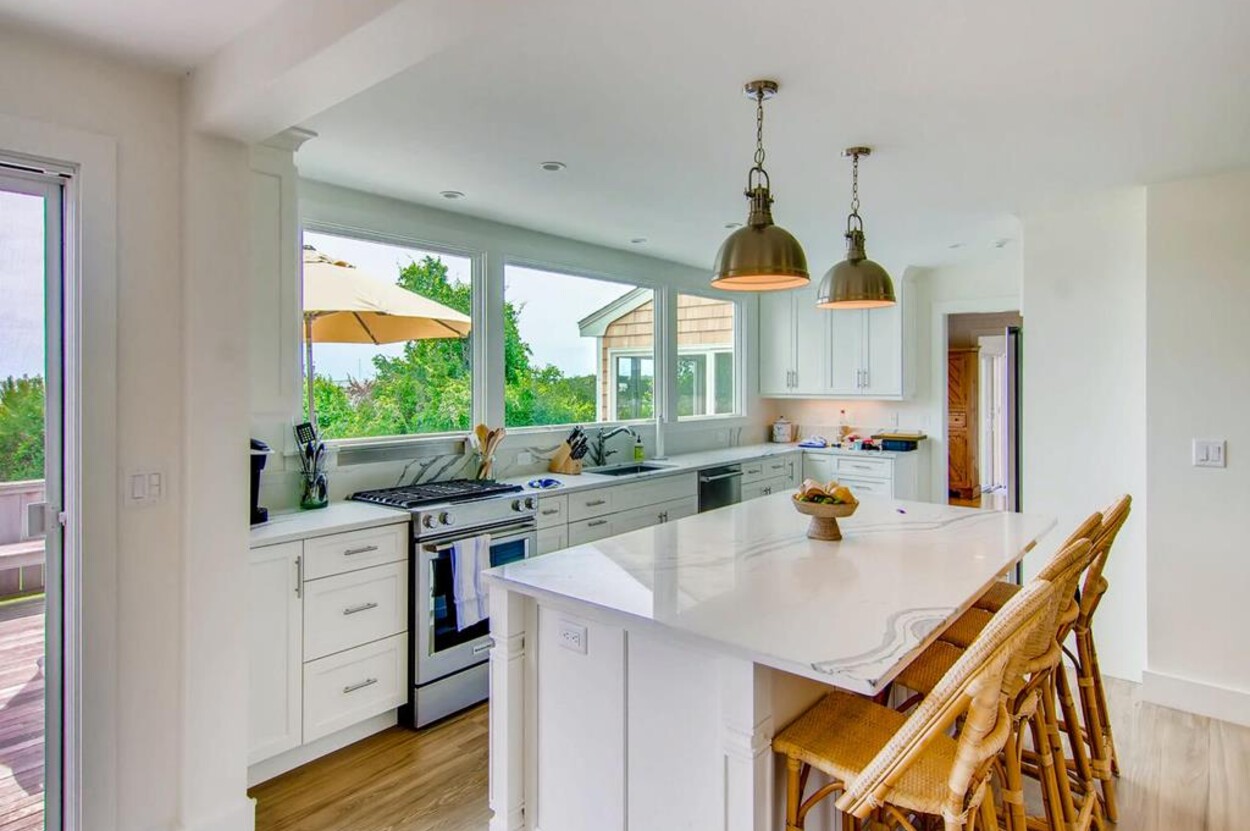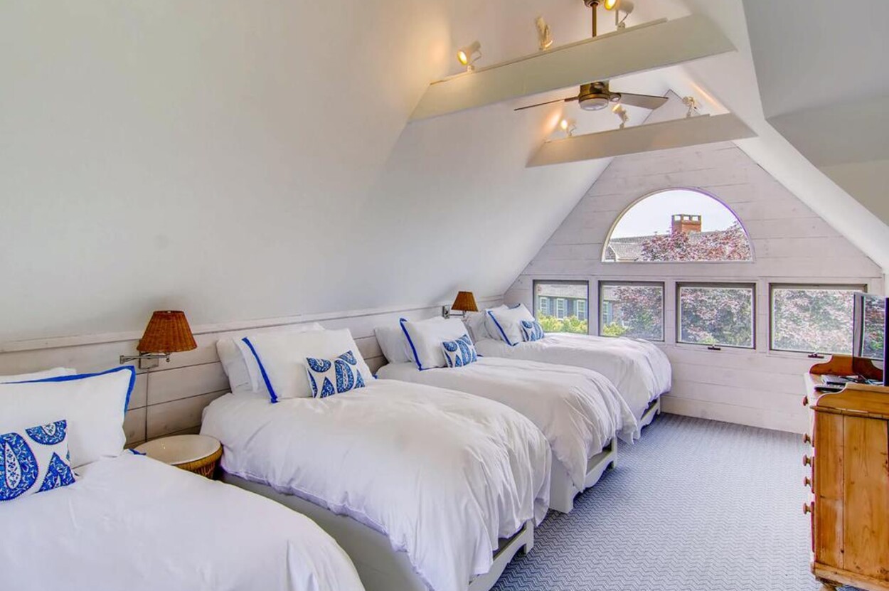 Sweet, newly renovated four-bedroom home plus detached bunk room and bathroom above the garage. Large open kitchen with water views. All bedrooms have en suite bathrooms. New (2022) lower level King Bedroom Suite. Views of Edgartown Harbor from every room and large deck. Shared walking path to a beach on harbor and dock. Lovely neighborhood equidistant to downtown Edgartown and South Beach. This is a classic summer retreat. Please note that the house does not provide bikes or kayaks. These can be rented and delivered to the house.