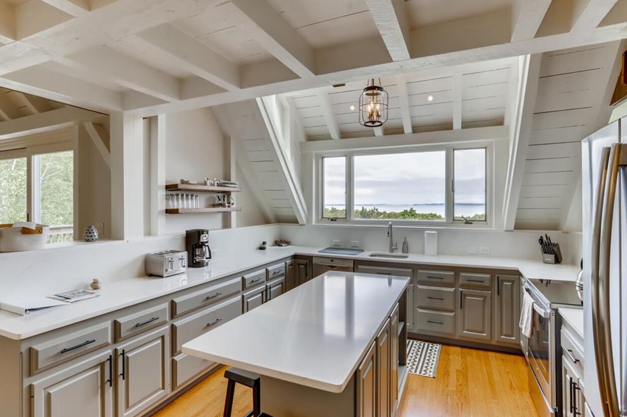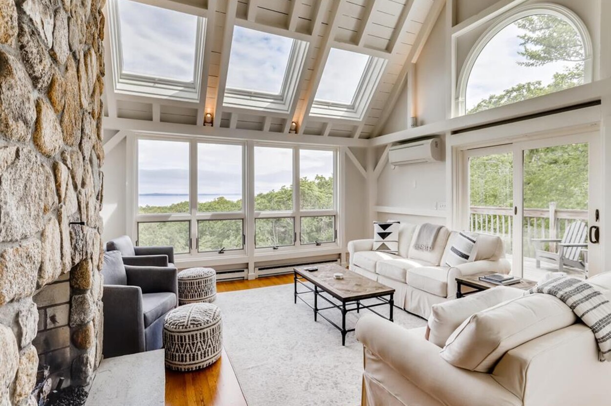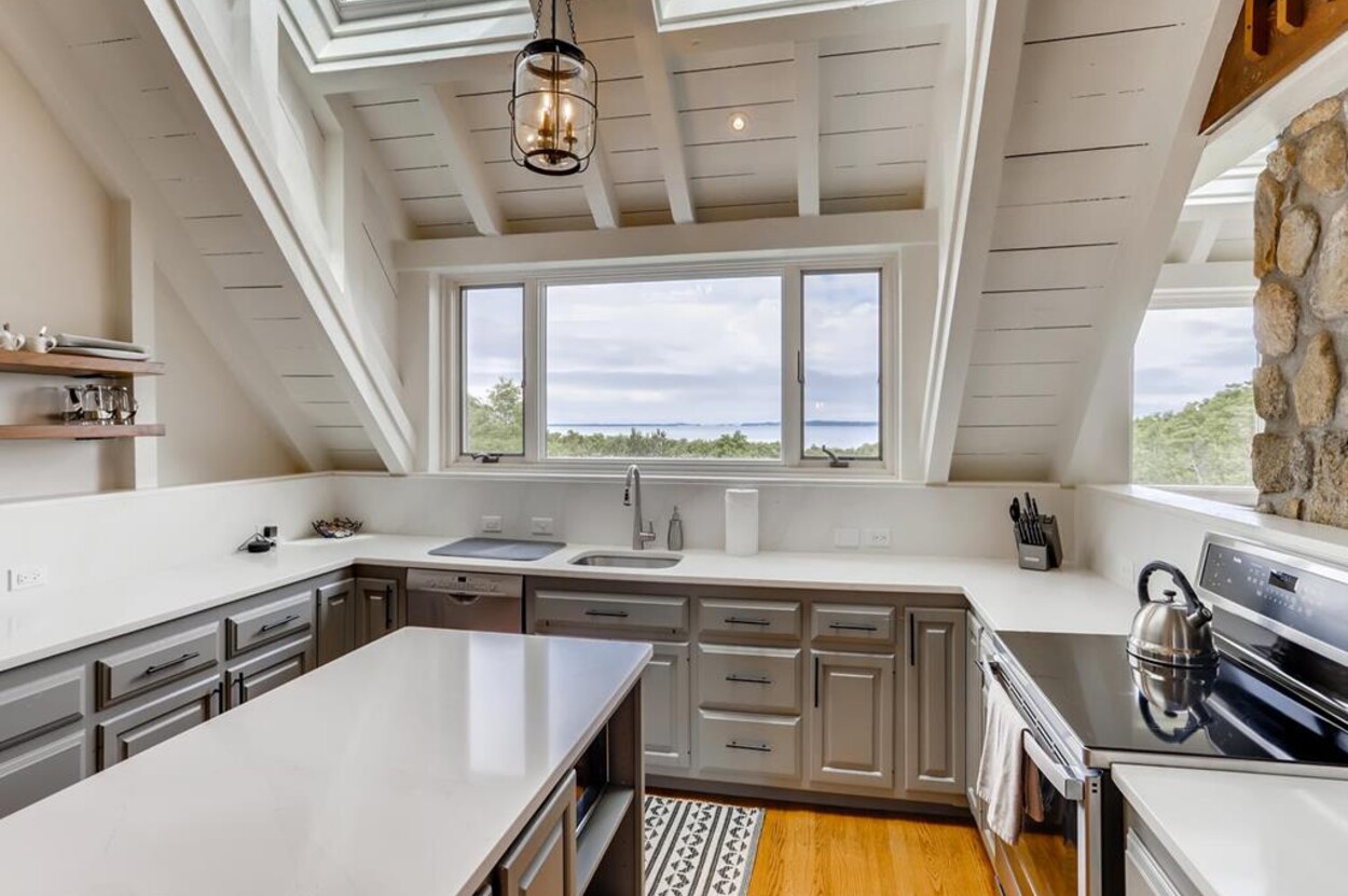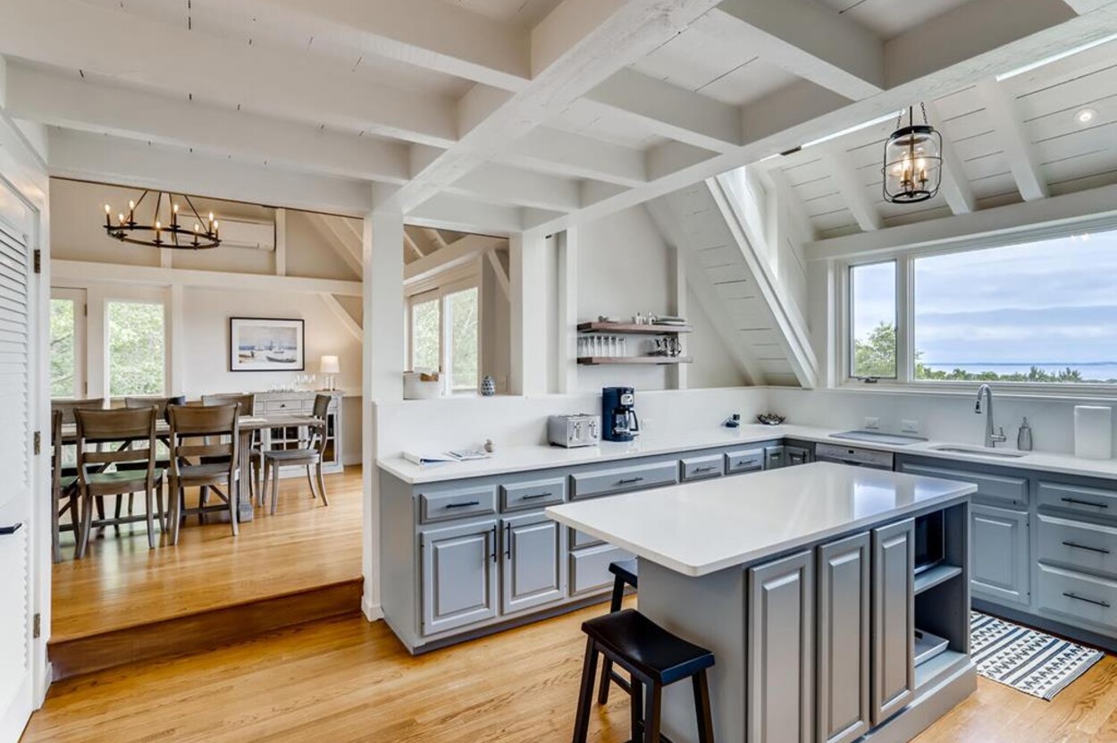 Enjoy stunning water views from almost every room of this charming four bedroom Vineyard Haven home. Tucked away off lower Lambert s Cove Road, this post and beam styled house is nestled on over three acres in Lower Makonikey and boasts substantial views of Vineyard Sound from the first and second level. There are many sweet interior details including three fireplaces, a loft space, and a fully finished walk out basement which provides additional living & entertaining space. This home also offers access to the Lower Makonikey Association private beach. The house has been thoughtfully renovated it is bright, light, beachy and air-conditioned.The property offers ample outdoor spaces with deck and patio overlooking gently wooded land, open lawn space, as well as lovely plantings .