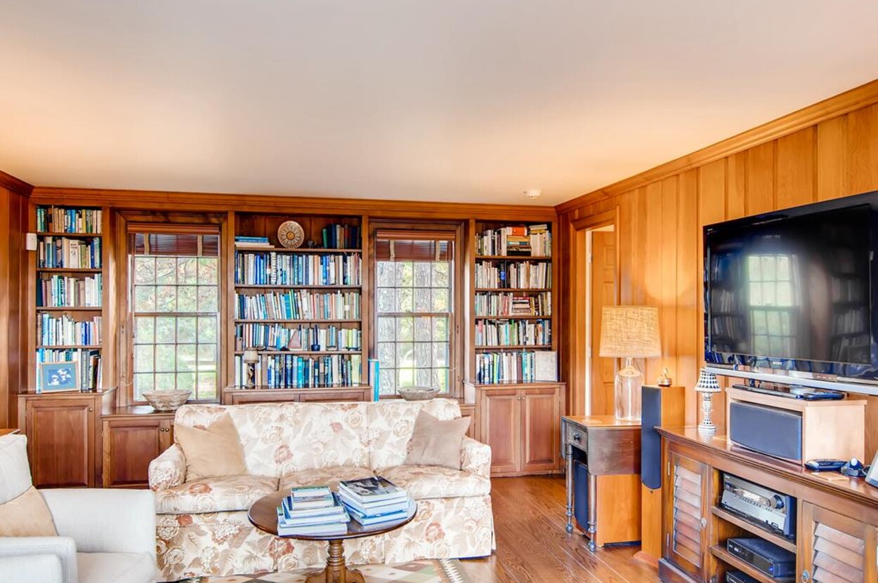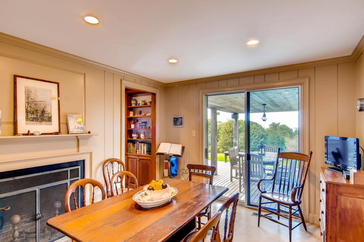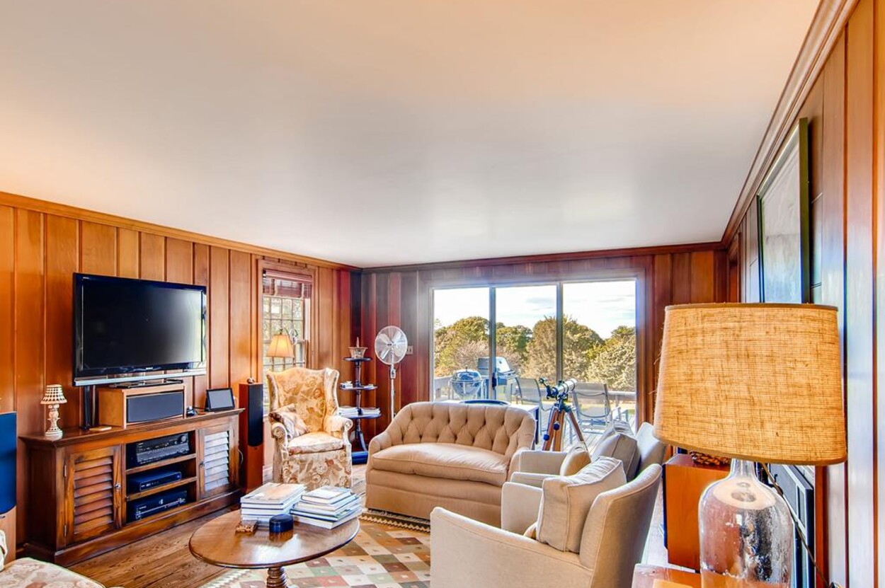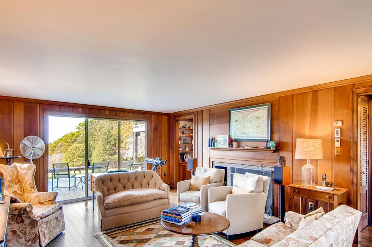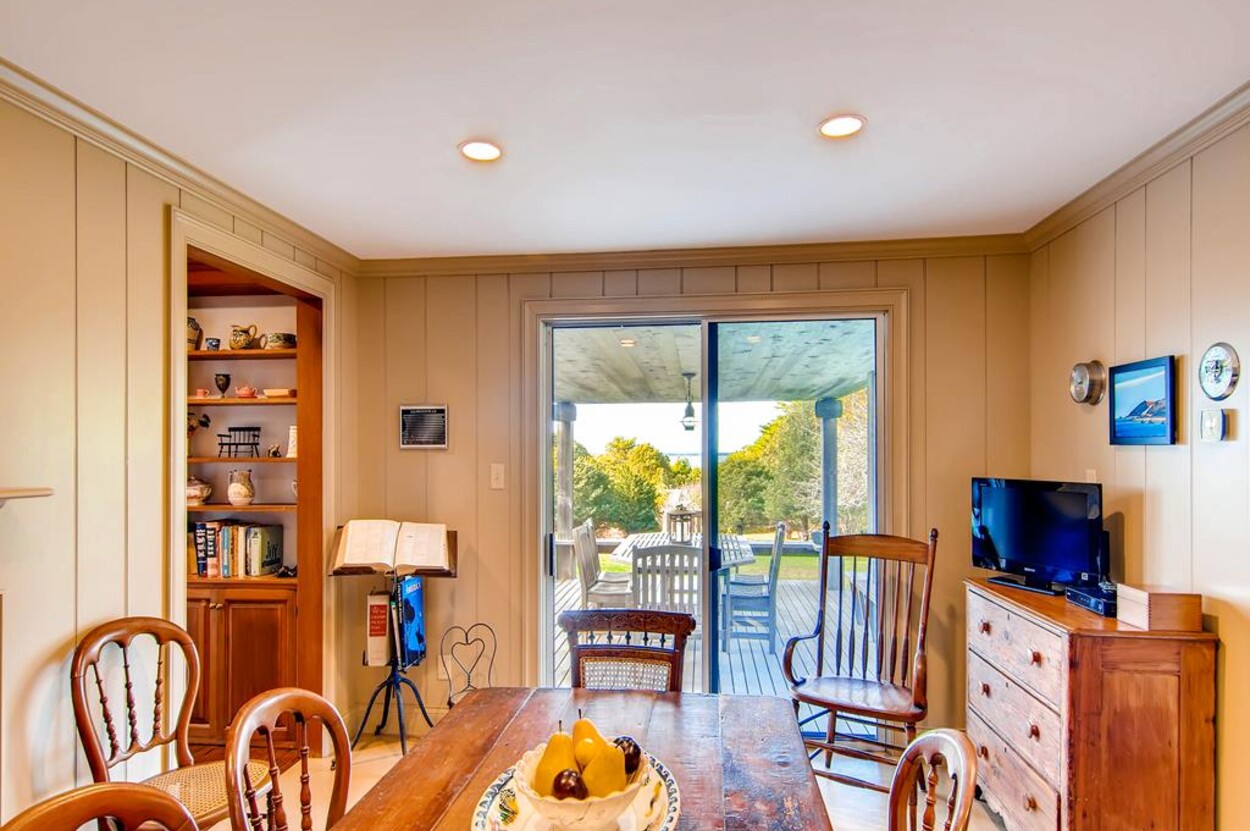 Architect designed cape style year-round home on five private acres with water views of Vineyard Sound and the Elizabeth Islands. Three bedrooms with a bonus "loft", three & 1/2 baths, upper and lower outdoor decks furnished with teak furniture for outdoor dining and sun bathing. Private association Upper Makonikey beach within easy walking distance. Perfect for a family or group of friends who want a true Vineyard experience with comfort and charm. Flexible on turnover day.